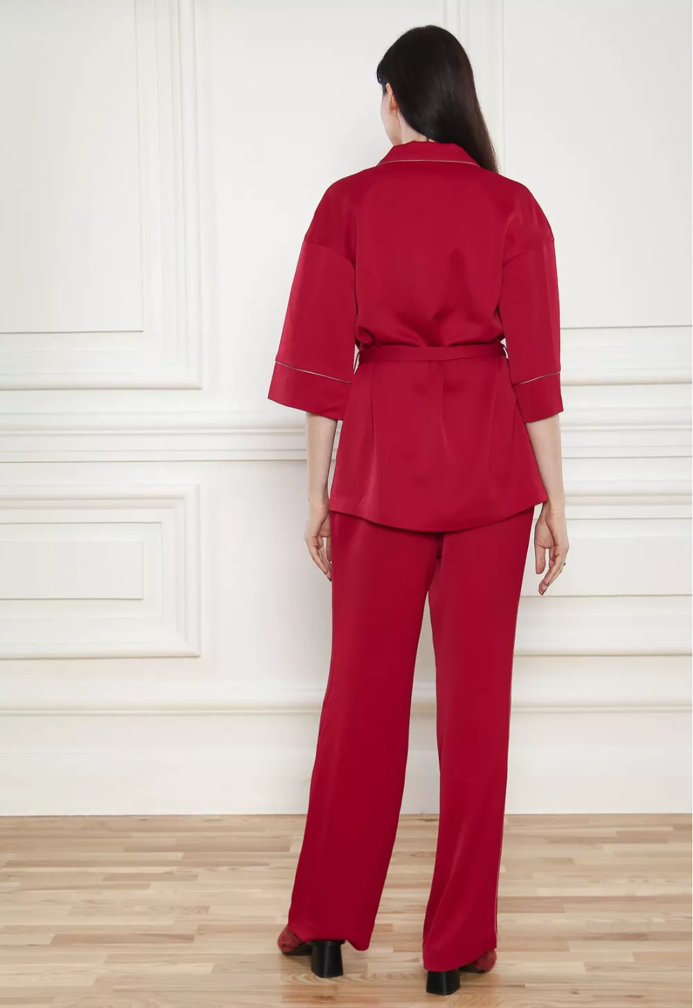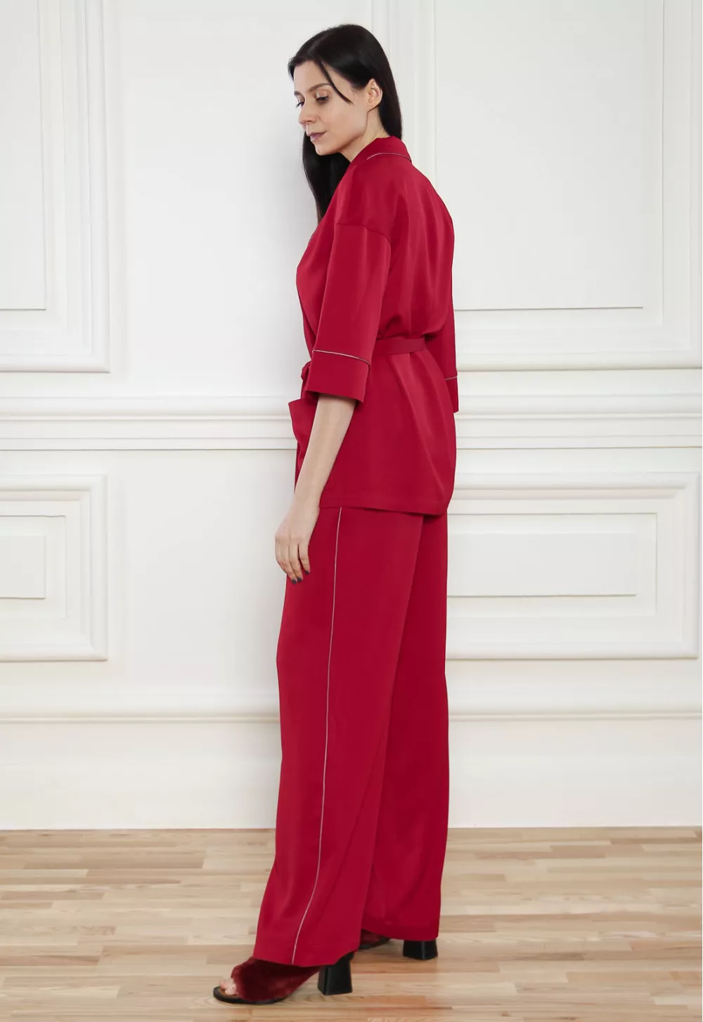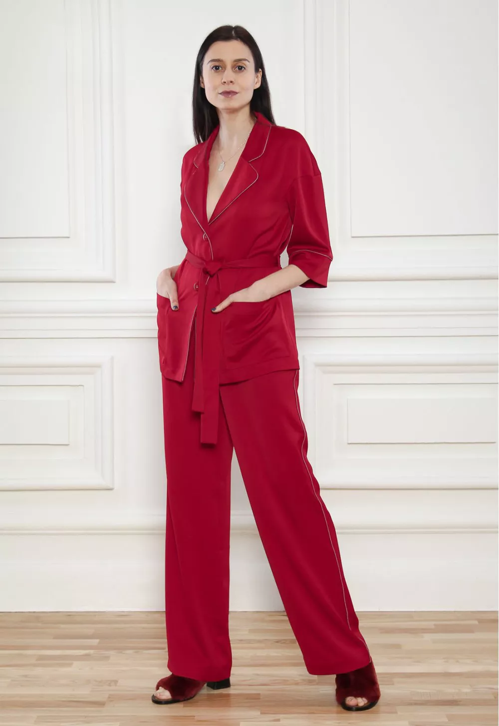Піжамна блуза виконана з благородного креп атласу із застібкою на гудзики і атласним кантом по коміру та по лінії борту. Блузу також можна носити з улюбленими джинсами або класичними брюками