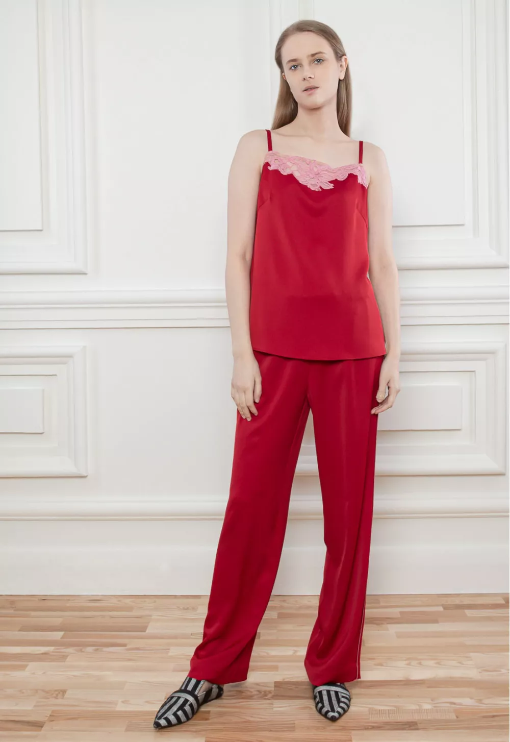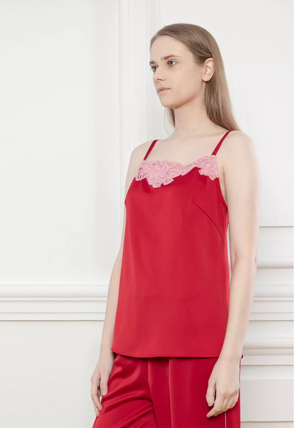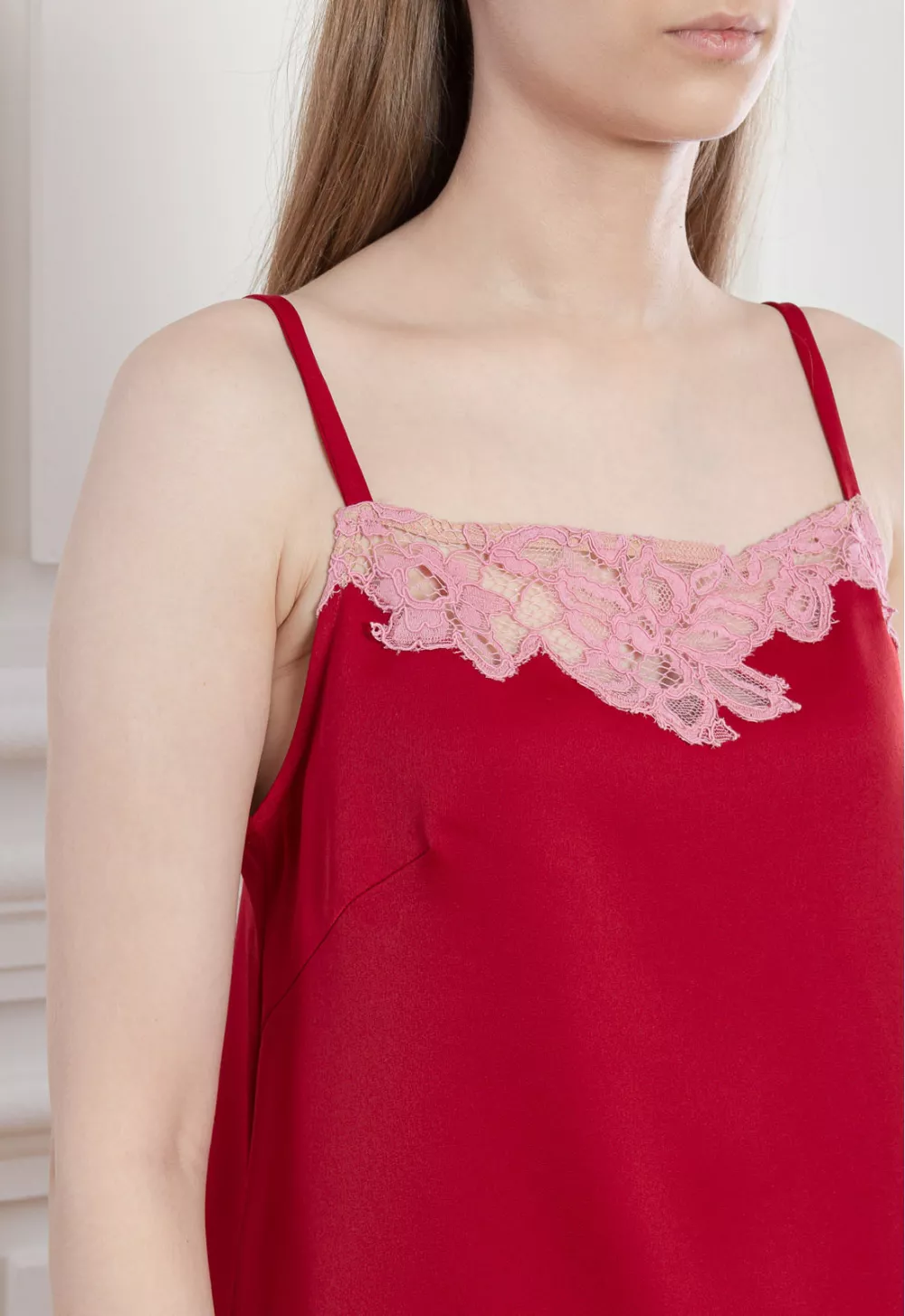 Топ на тоненьких бретельках з благородного креп атласу, озбоблена французьким мереживом. Топ можна носити як в складі піжами так і з улюбленою бавовняною футболкою, жакетом oversize або трендовим