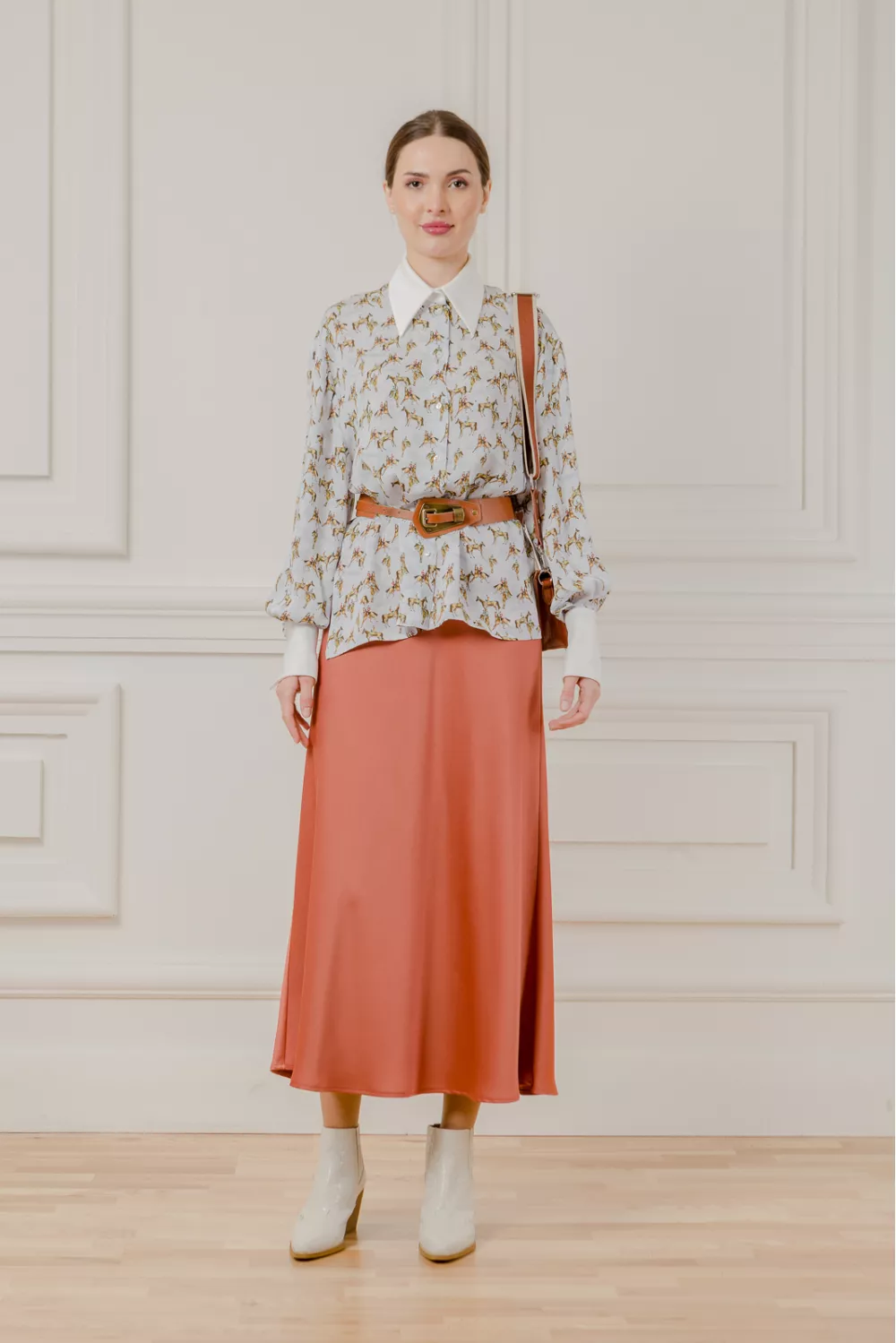 Витончена віскозна блуза з коміром та широкими білосніжними манжетами. Можна поєднувати як з брюками так і спідницями,додаючи аксесуари