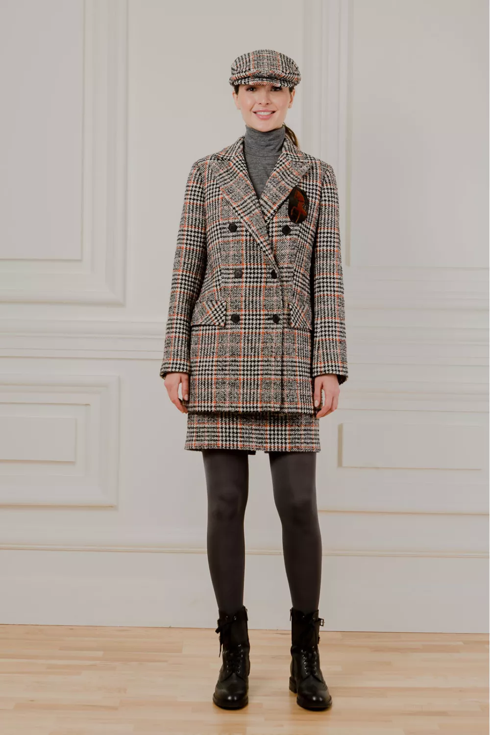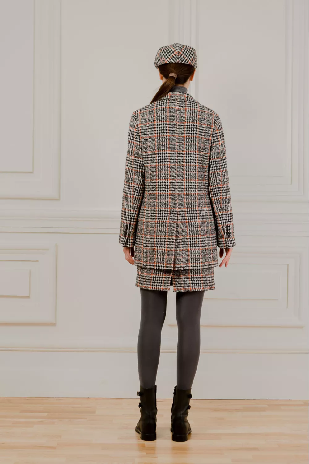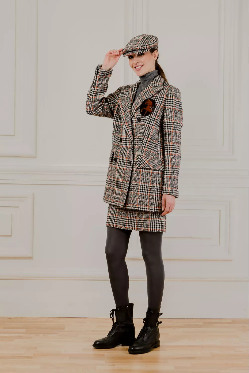 Твідовий оверсайз жакет в теракотову клітинку з кишенями та емблемою. Формат пальто цієї моделі може повноцінно замінити вам верхній одяг