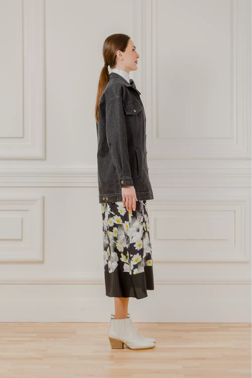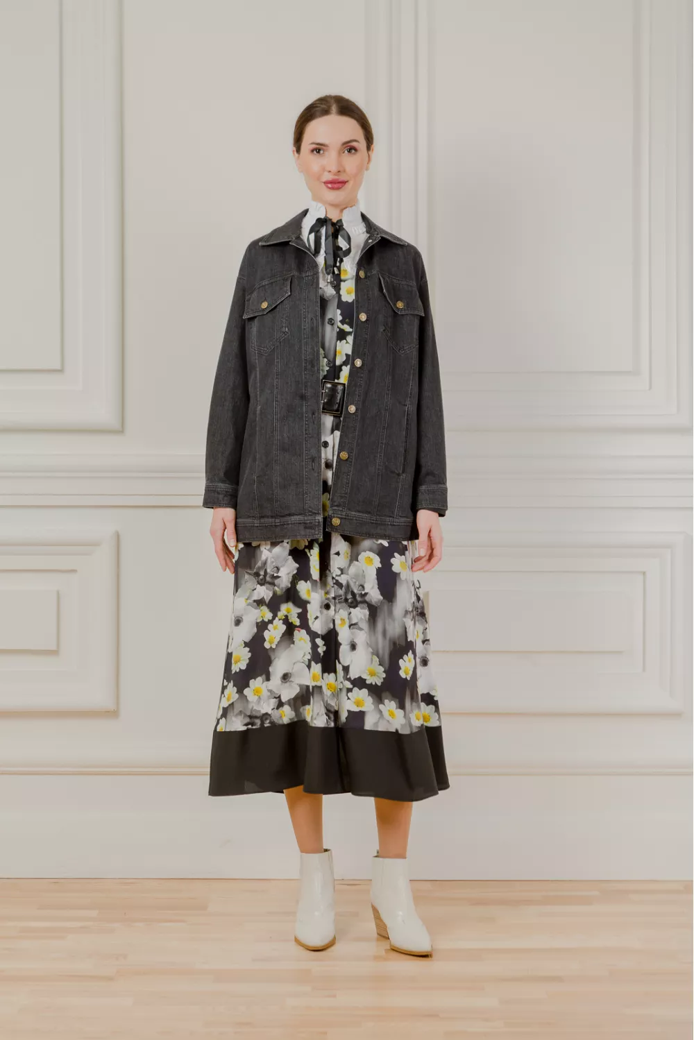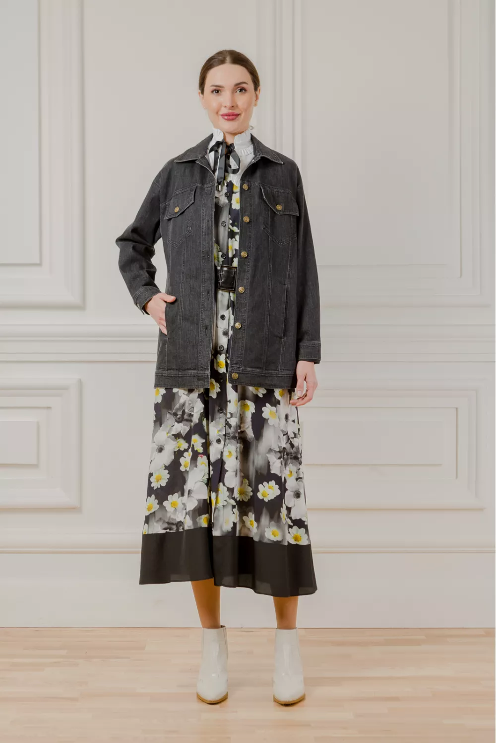 Оверсайз джинсівка темно-сірого кольору є незамінною річчю в прохолодний осінній сезон. За рахунок своєї довжини та широкого покрою,нею можна стилізувати абсолютно різні образи
