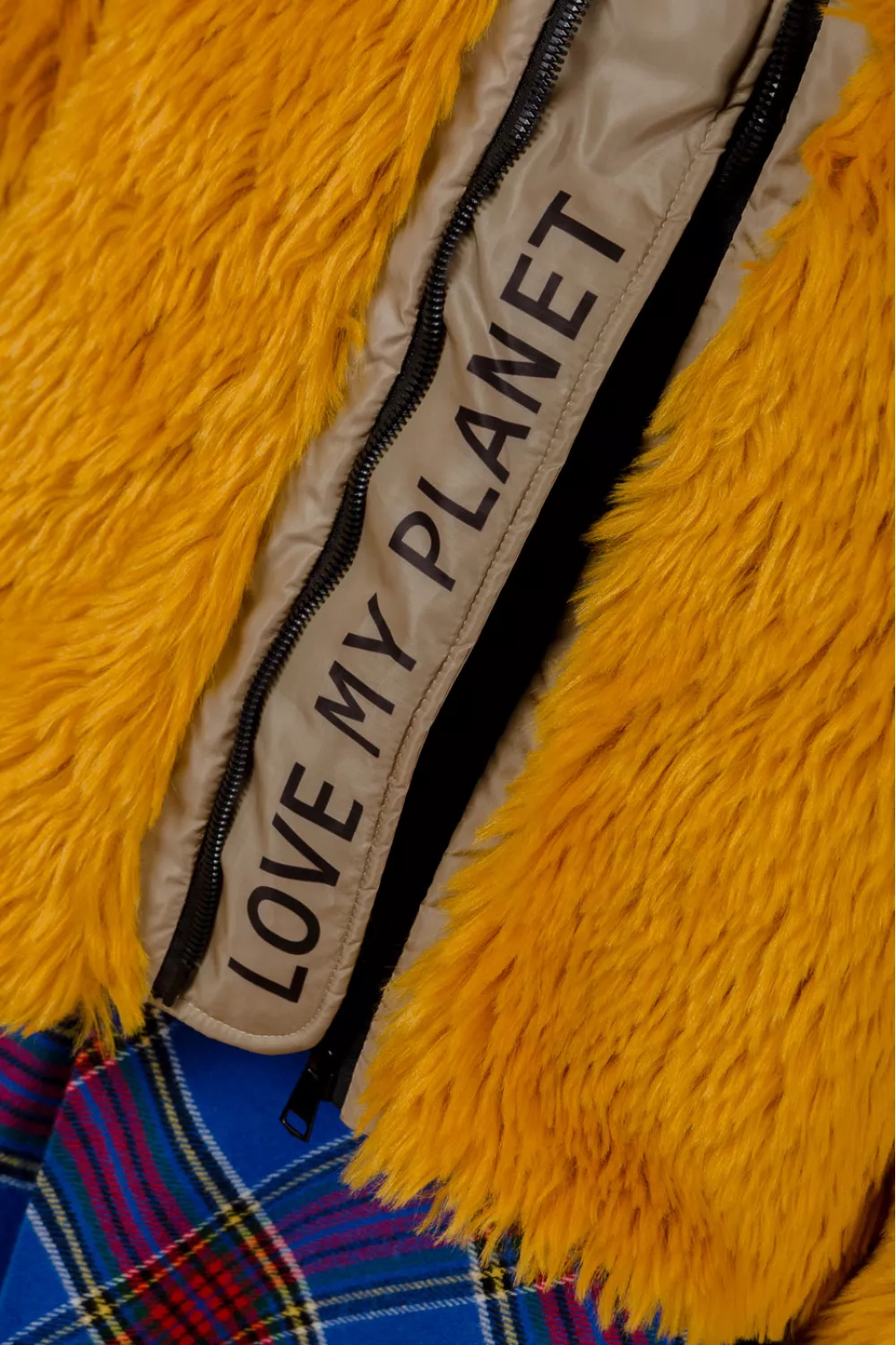 Тепла коротка шубка в яскравому кольорі осяє ваш будь-який холодний та тьмяний день. Всередині має прихований напис Love my planet