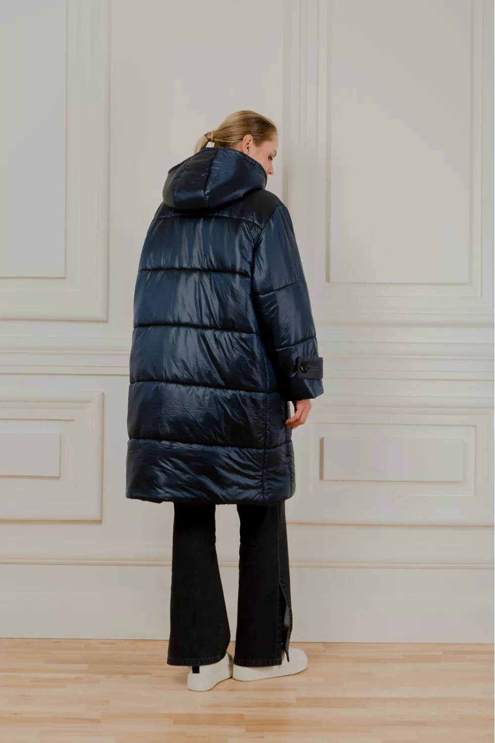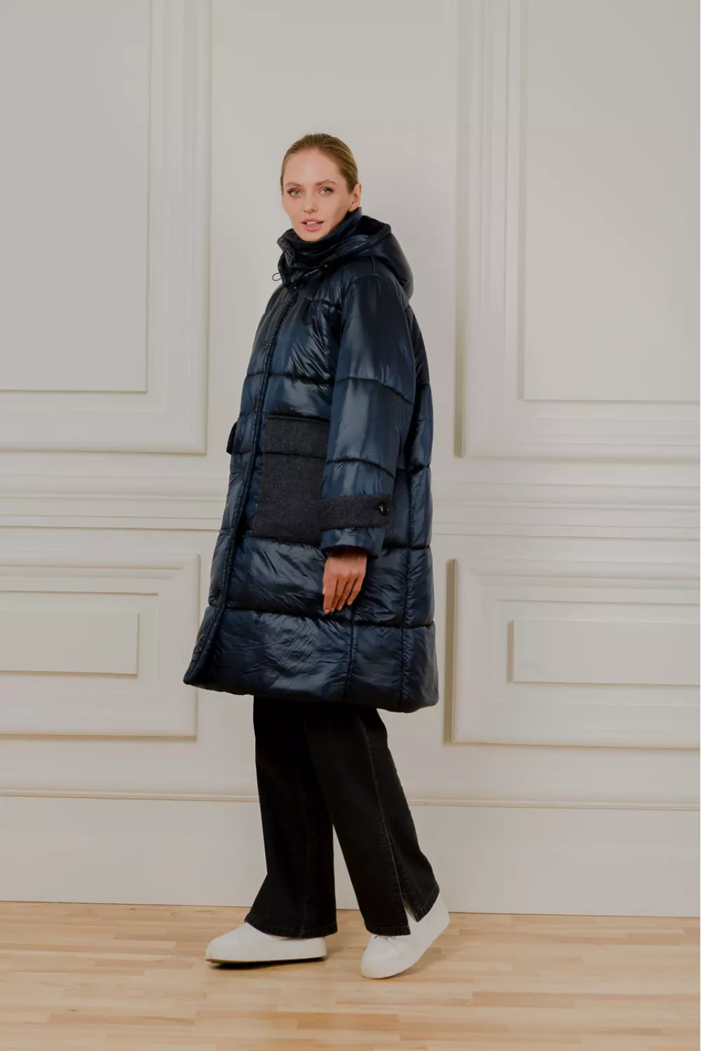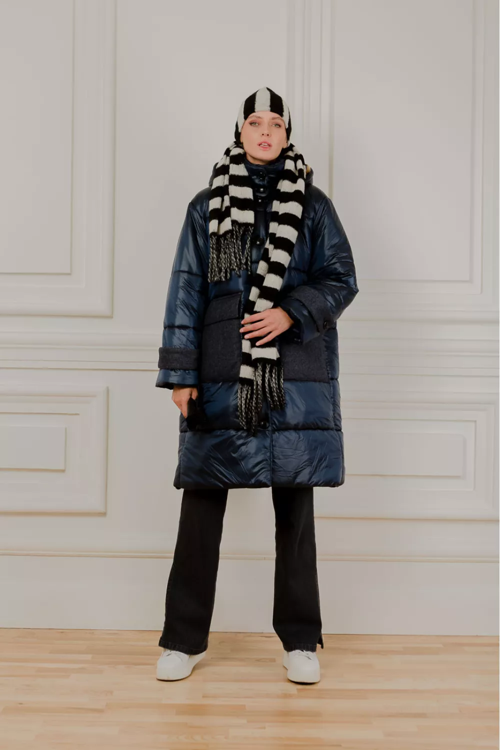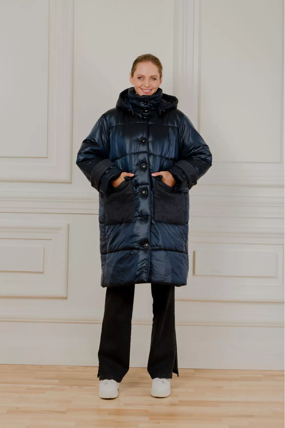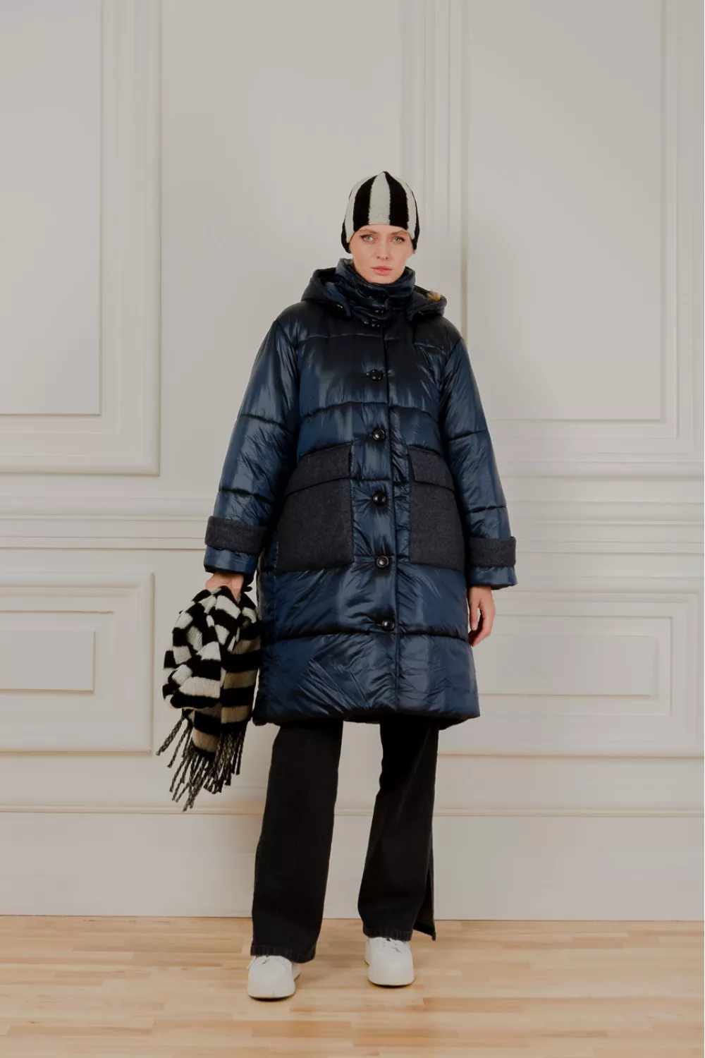 Тепла куртка міді на гудзиках повсій довжині. Ця модель має характерну деталь - кишені з щільної тканини на яких вишито фірмові ініціали бренду. Також у Бредфорда наявний високий воріт та повноцінний капюшон,що дає змогу захистите себе від вітру та морозів, при цьому навіть не використовуючи в образі шарфи