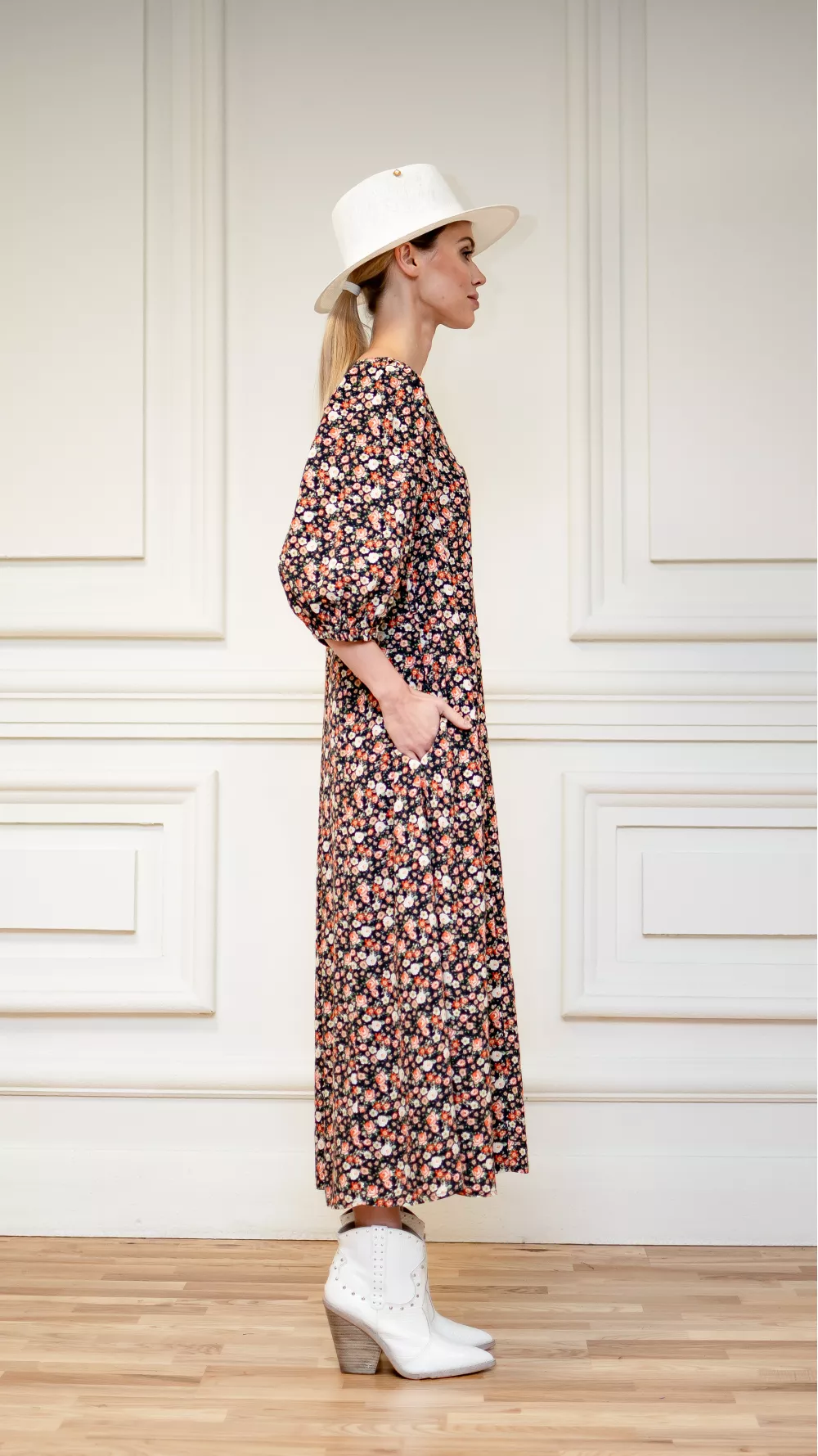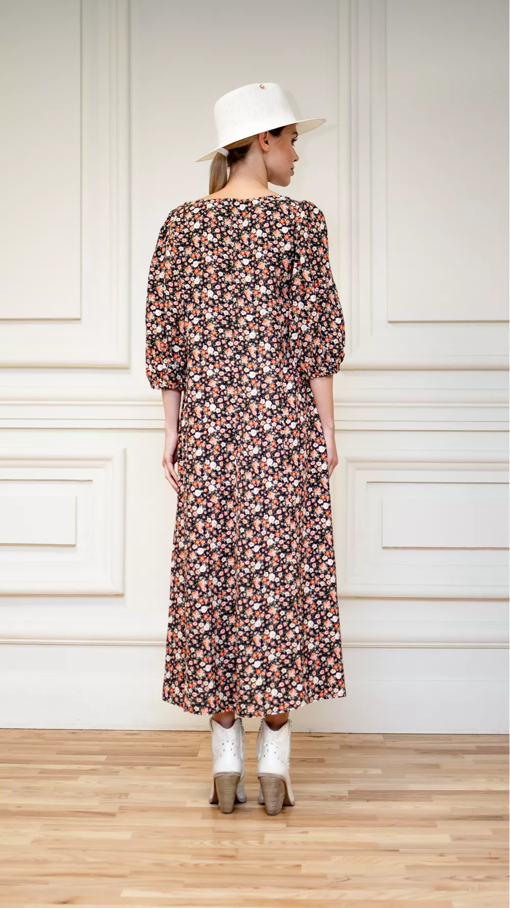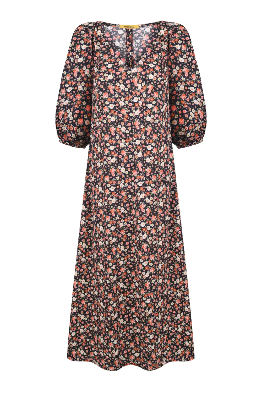 Легка принтована сукня з глибоким вирізом та коротким рукавом на резинці. Прямий покрій та приховані бокові кишені, що додають повсякденної нотки, дають можливість поєднувати сукню з денімом та плащівкою