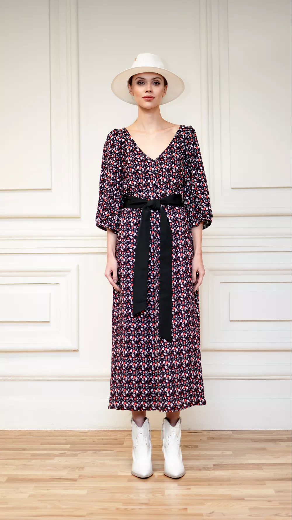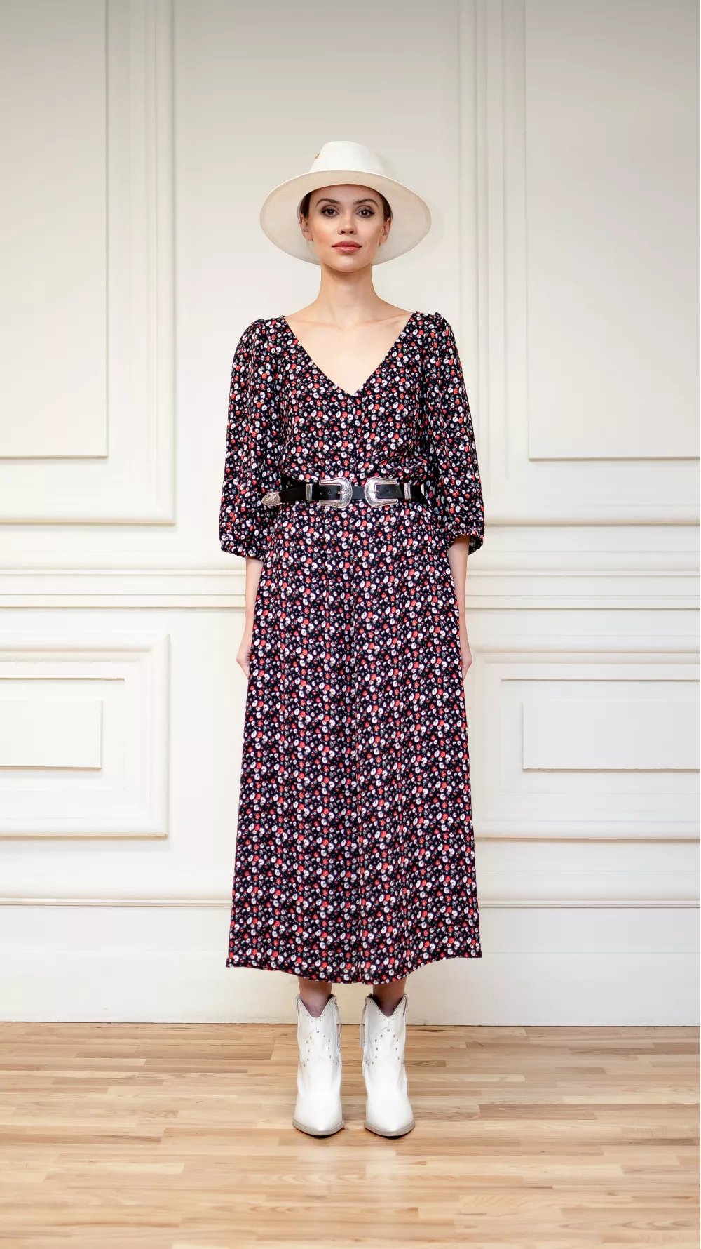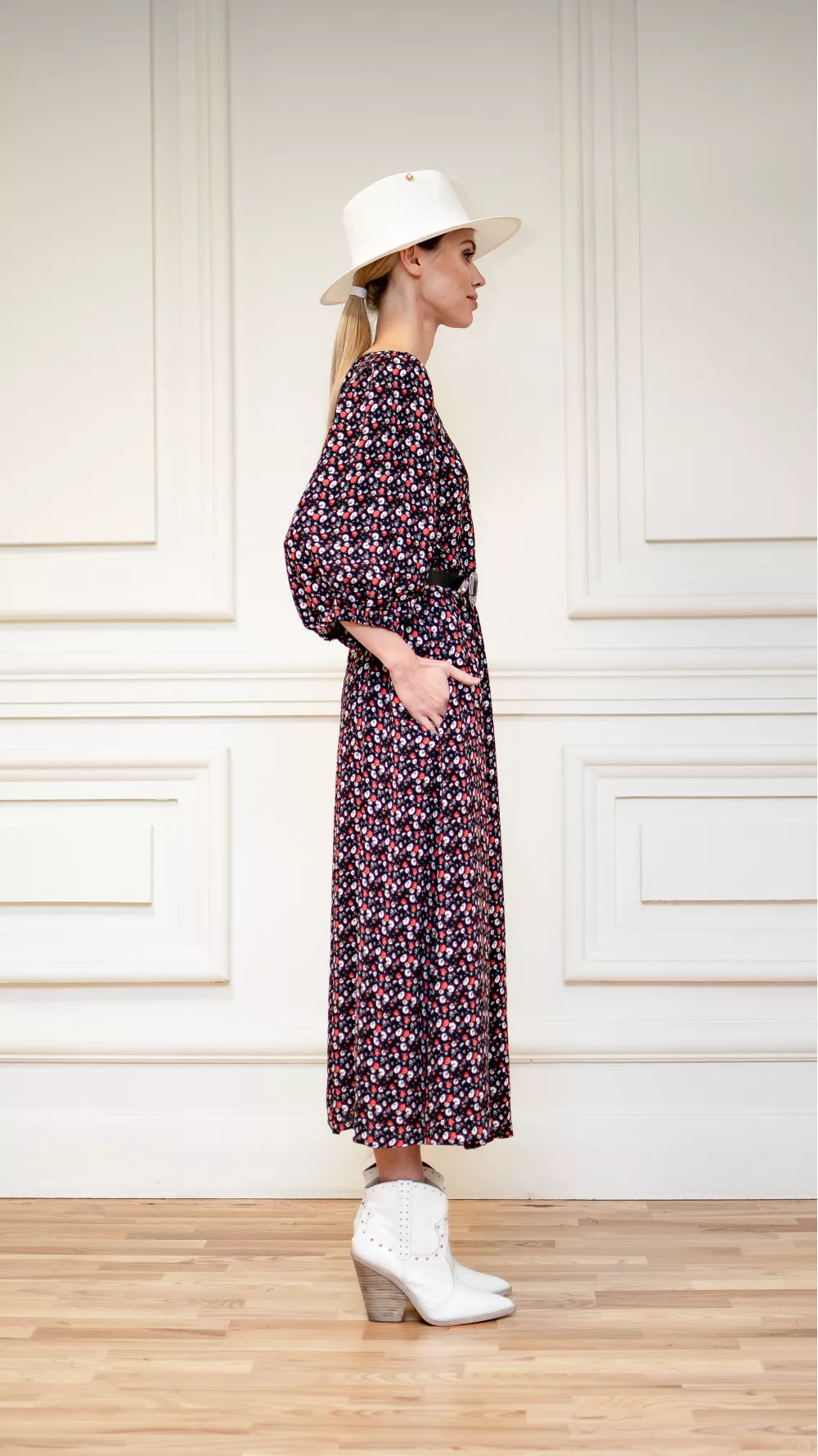 Легка принтована сукня з глибоким вирізом та коротким рукавом на резинці. Прямий покрій та приховані бокові кишені, що додають повсякденної нотки, дають можливість поєднувати сукню з денімом та плащівкою