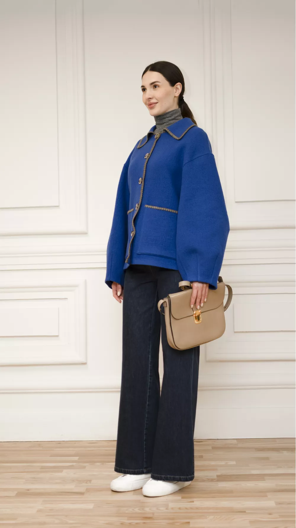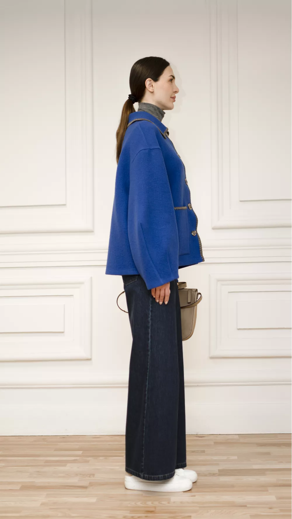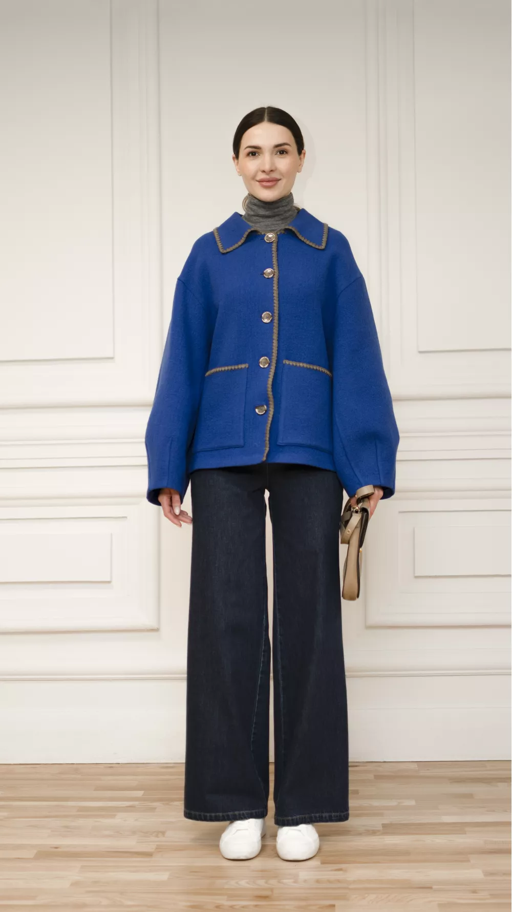 Укорочене пальто Евора кольору електрик
