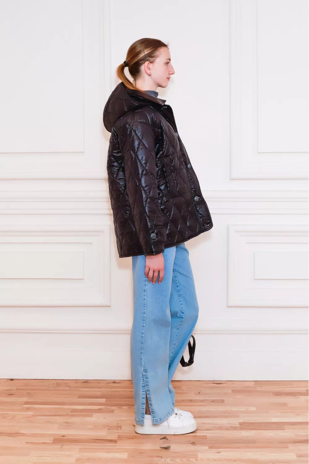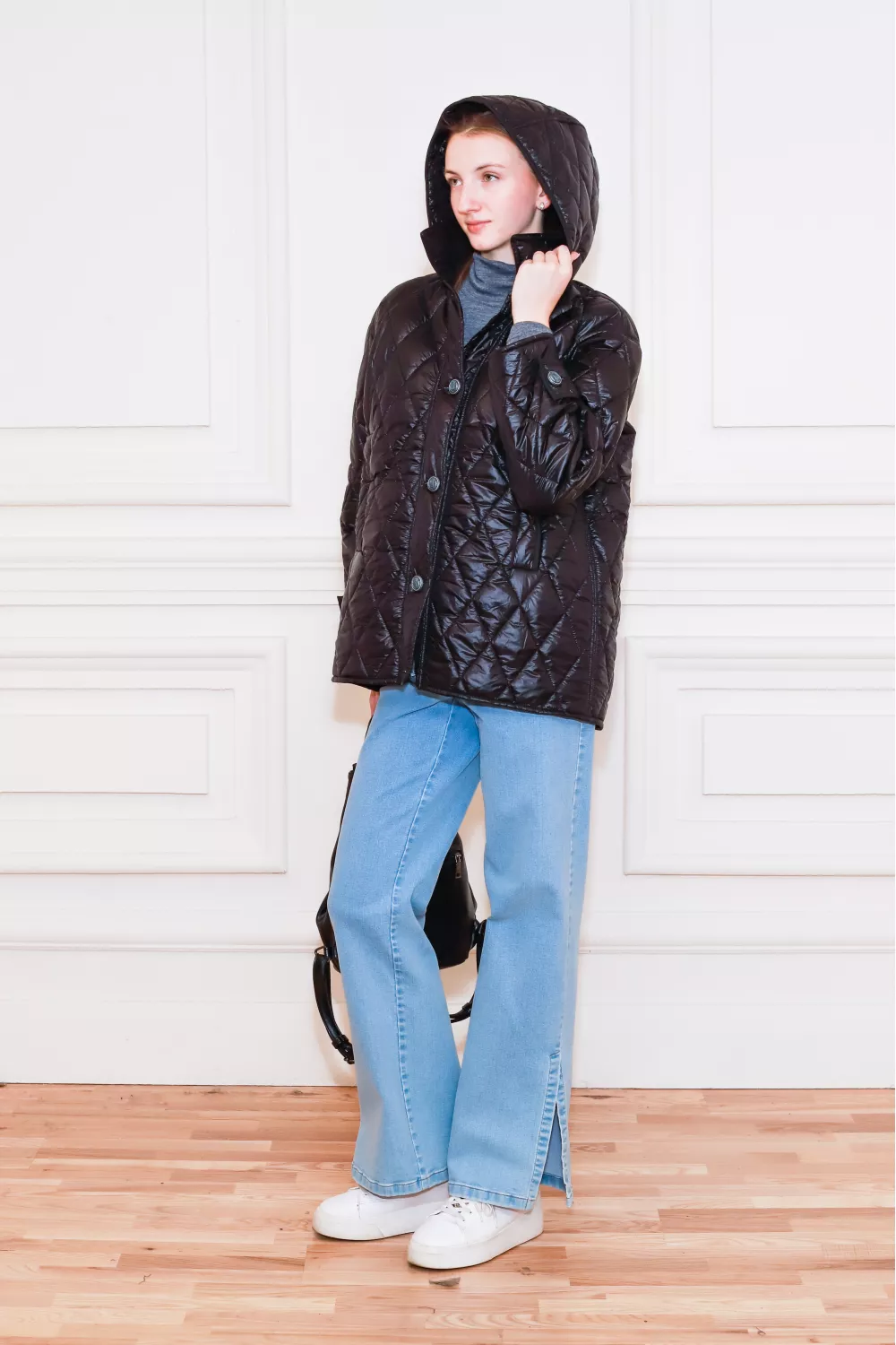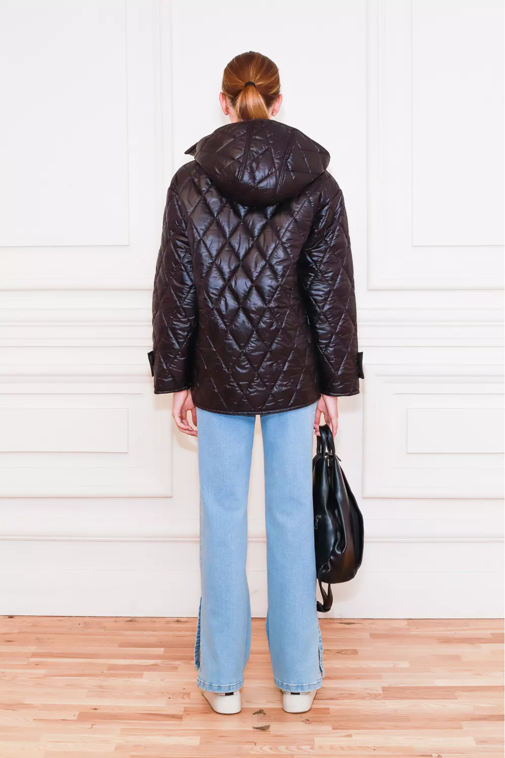 Стьобана чорна куртка з капюшоном Мерло