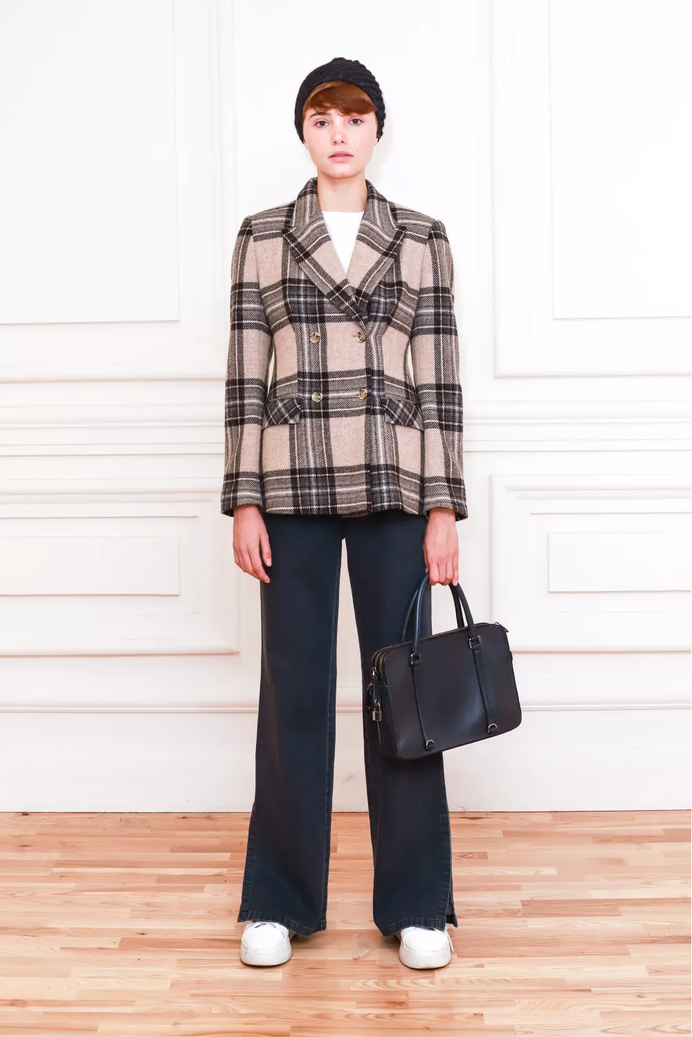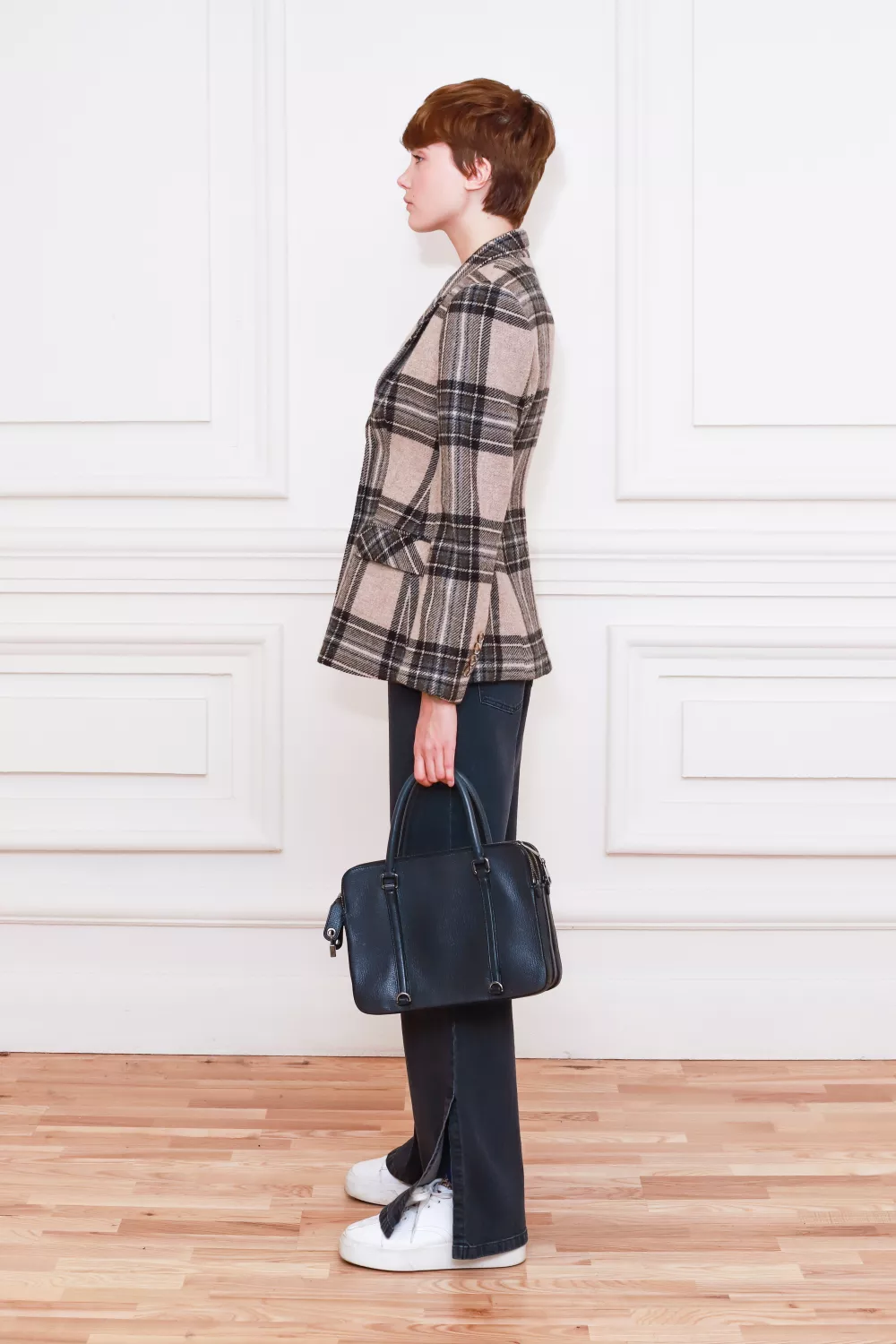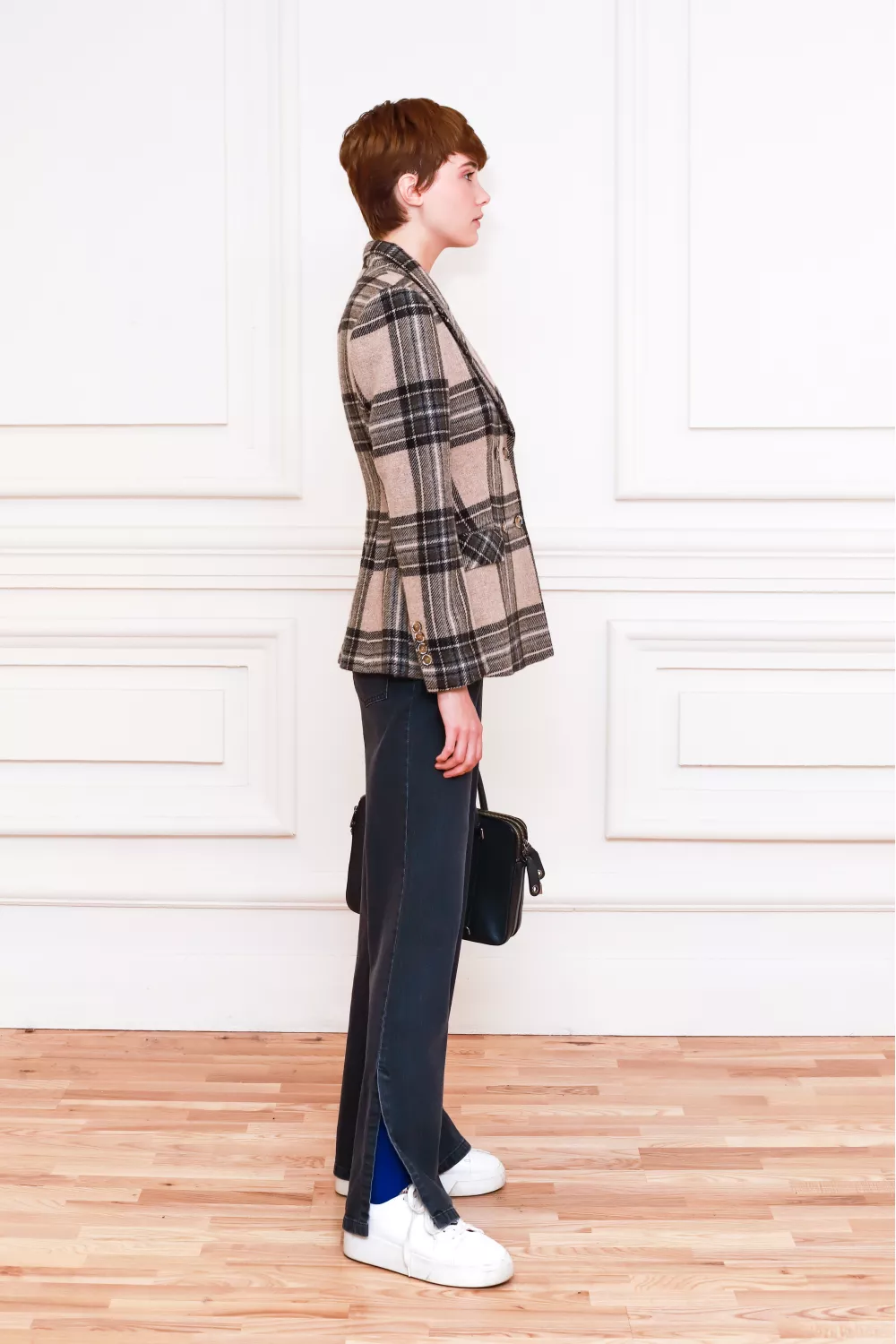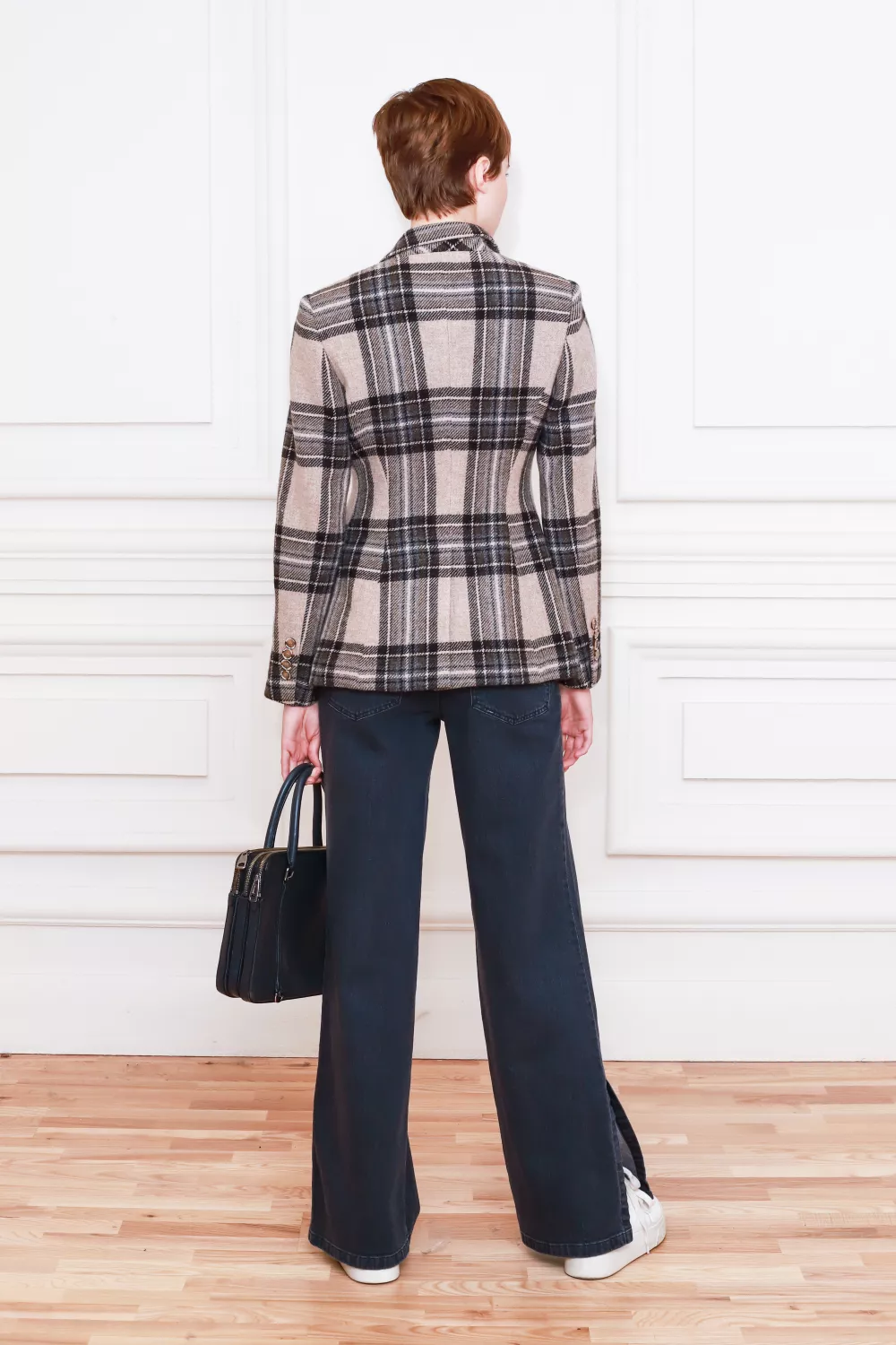 Вовняний приталений жакет в клітинку Говея