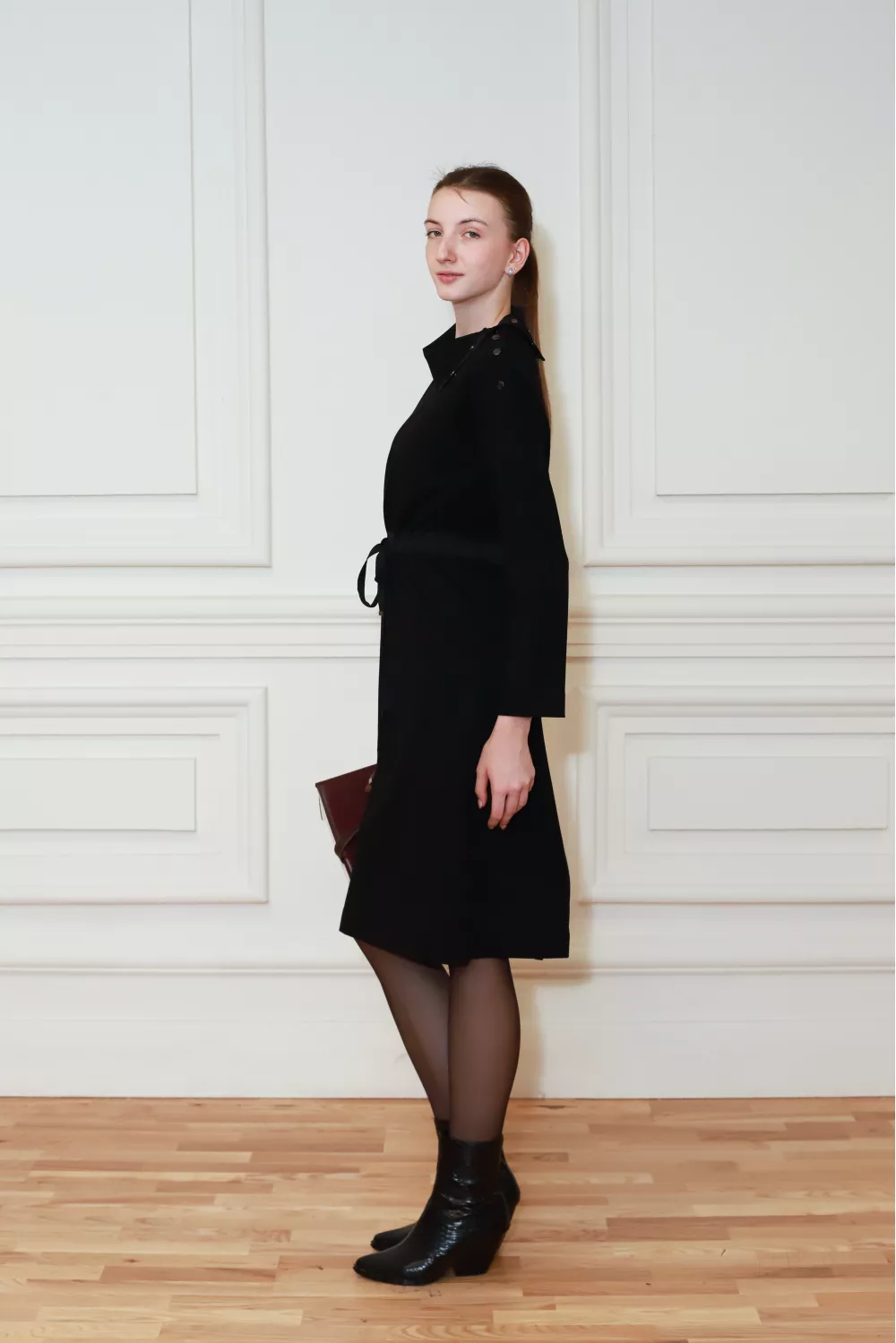 Модель має воріт на кнопках та стягується шнурівкою на талії,що ідеально формує силует