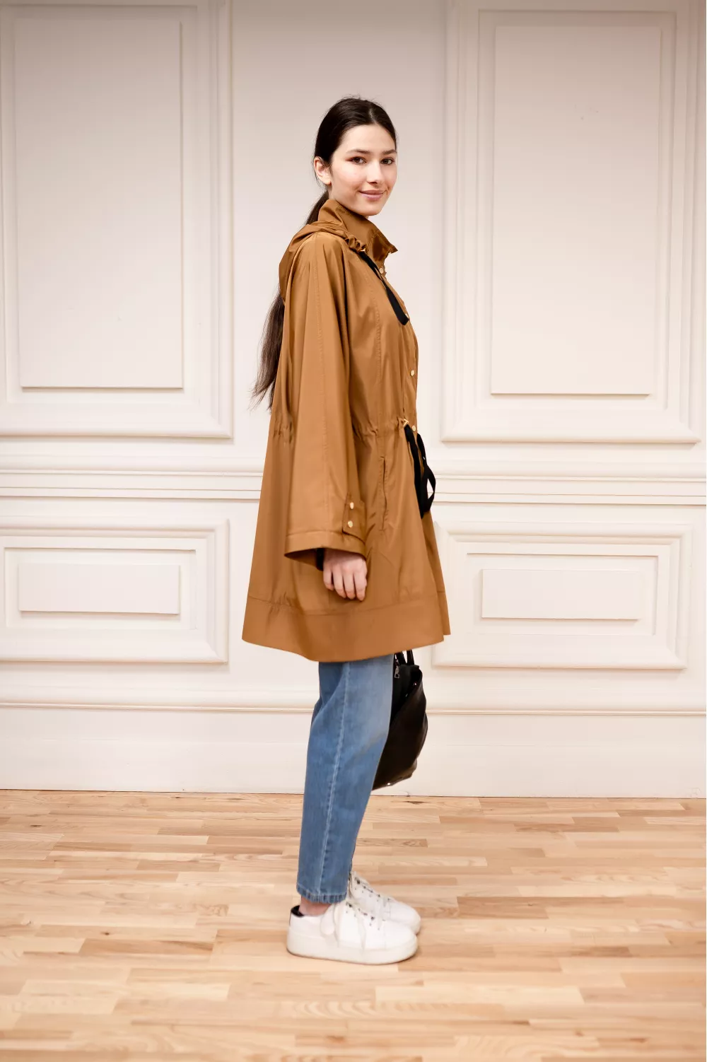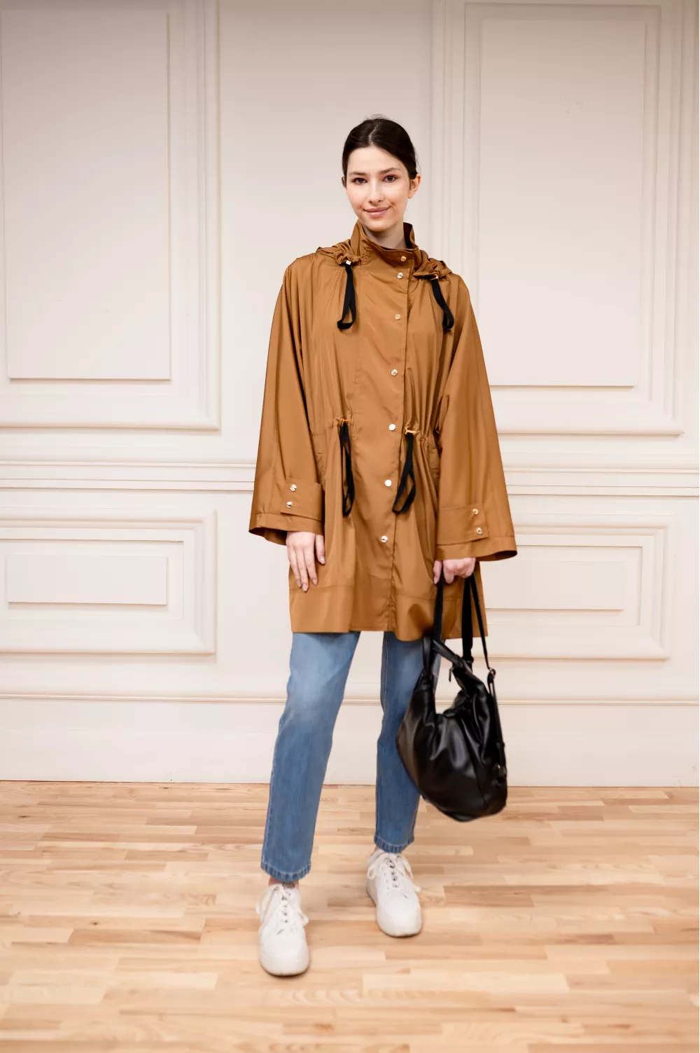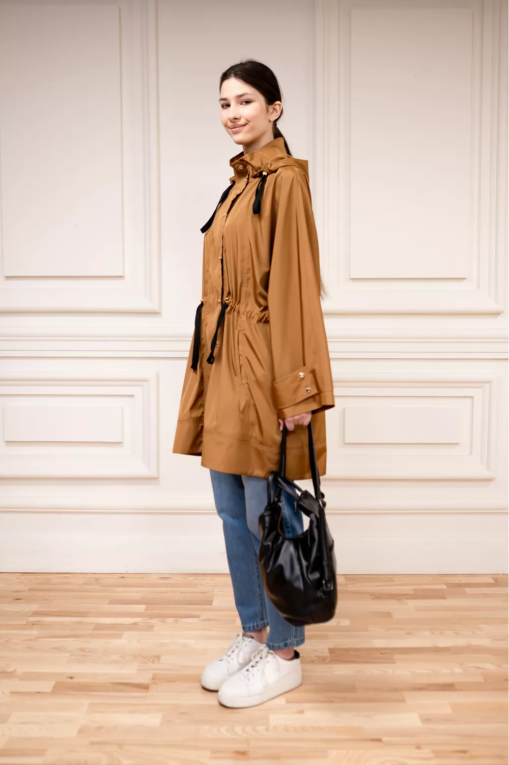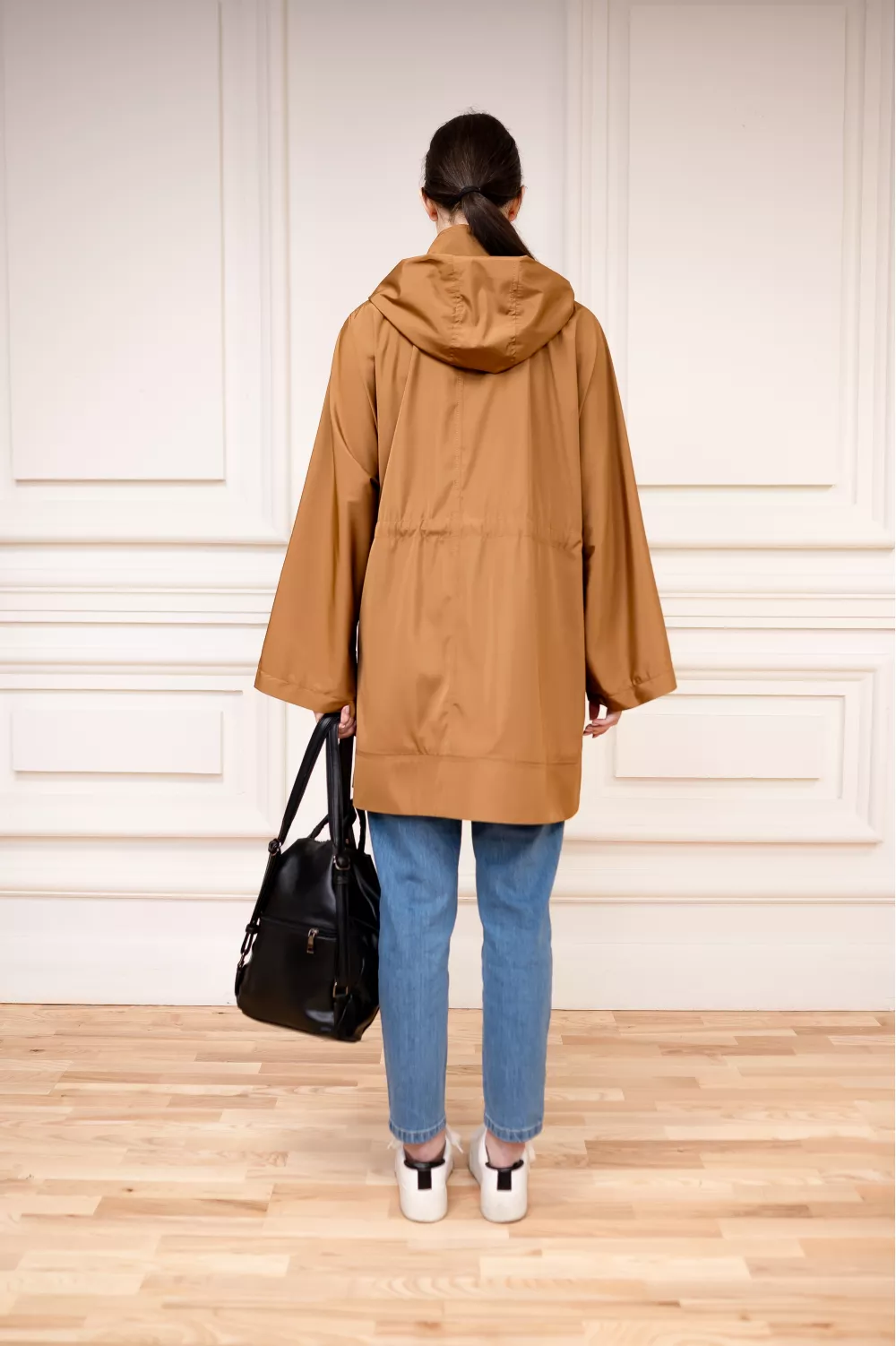 Базова вітровка в однотоні стане ідеальним елементом вашого весняного гардеробу та зможе захистити від непогоди. Шнурівка на поясі регулює силуетність по фігурі