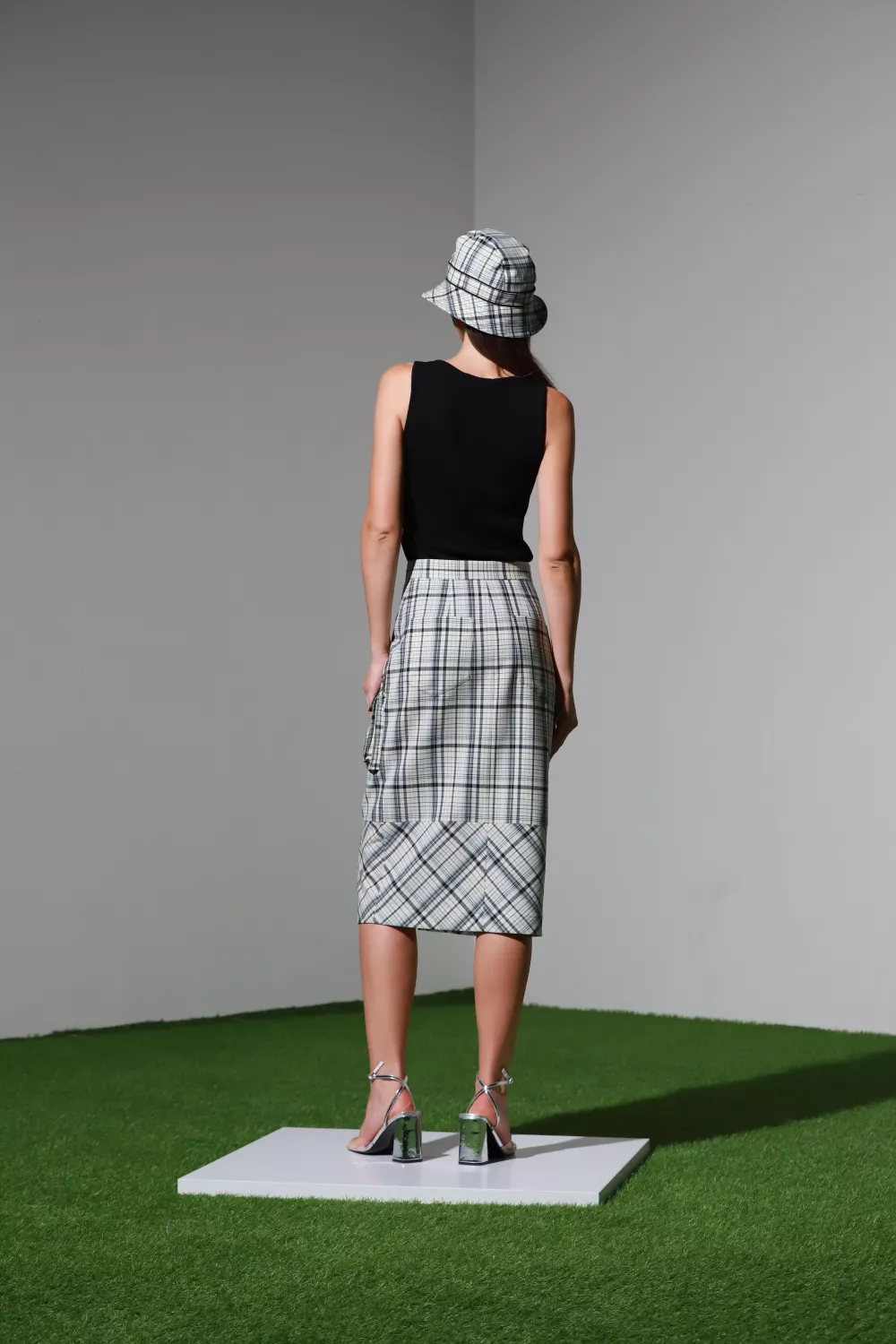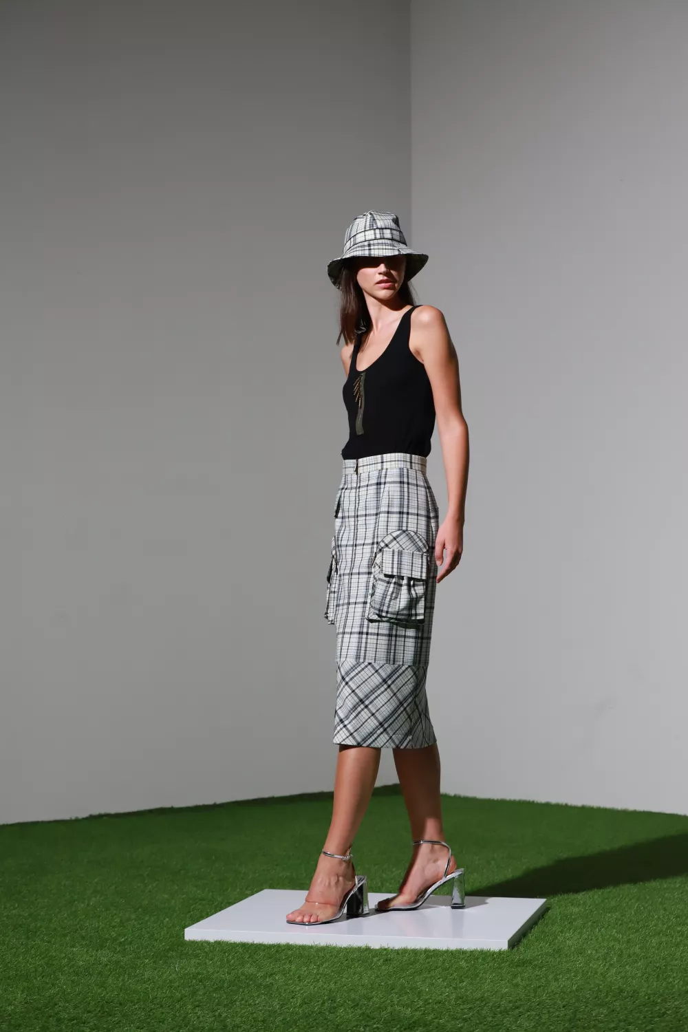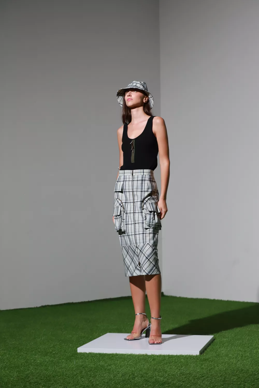 The Steffi mid-rise cargo skirt features multiple roomy flap pockets for a utilitarian feel. It's made from baby lambswool and features zippers for adjustment to play with your shape. Wear it with a tank top and flat sandals.