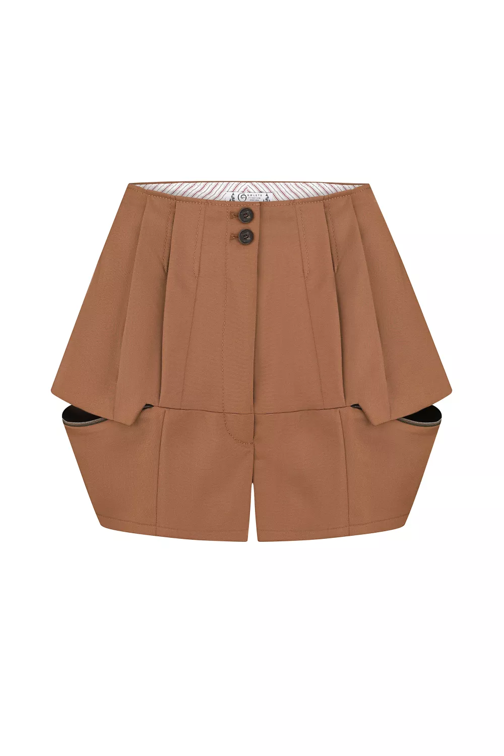 The bright hue of the Kelow shorts adds a playful touch to an otherwise subdued outfit. They're made from wool with a high-waisted waistband that accentuates their classic cut. And hidden zippers on the sides give the shorts a fashionable look