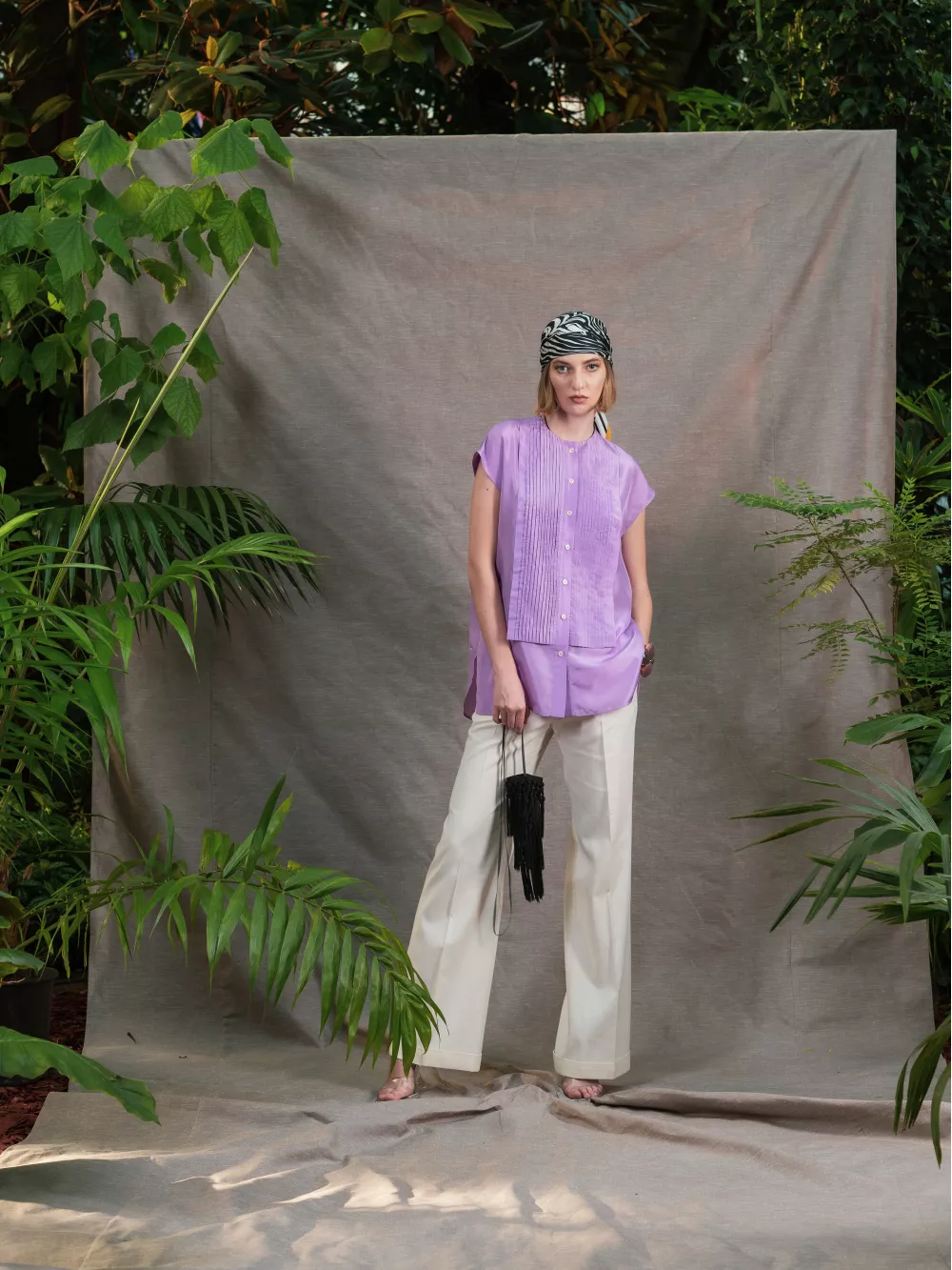 The Lisbeth shirt is reminiscent of classic tuxedo styles with its neatly tucked bib. Made from lightweight silk, it has a straight cut. Perfect with trousers from our collection