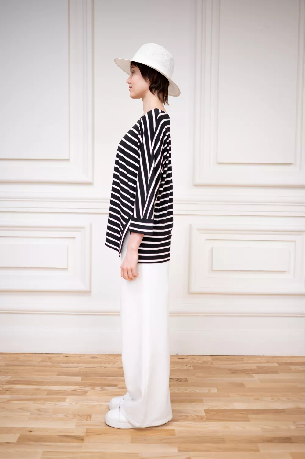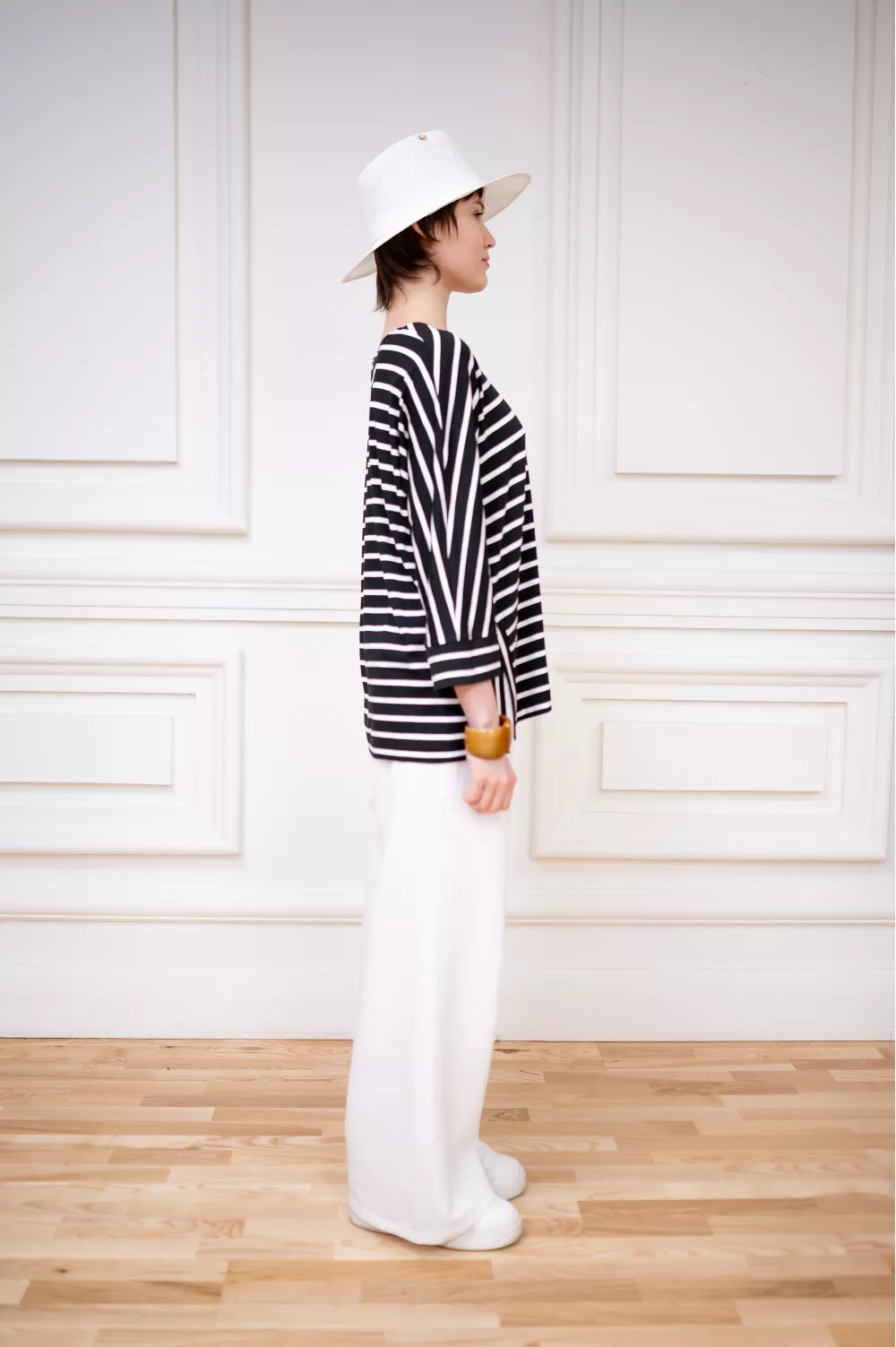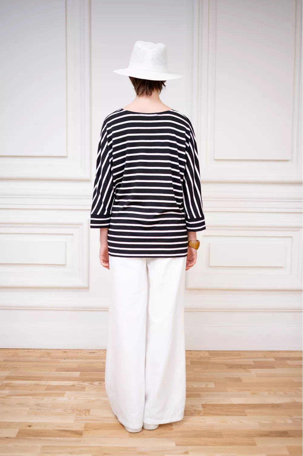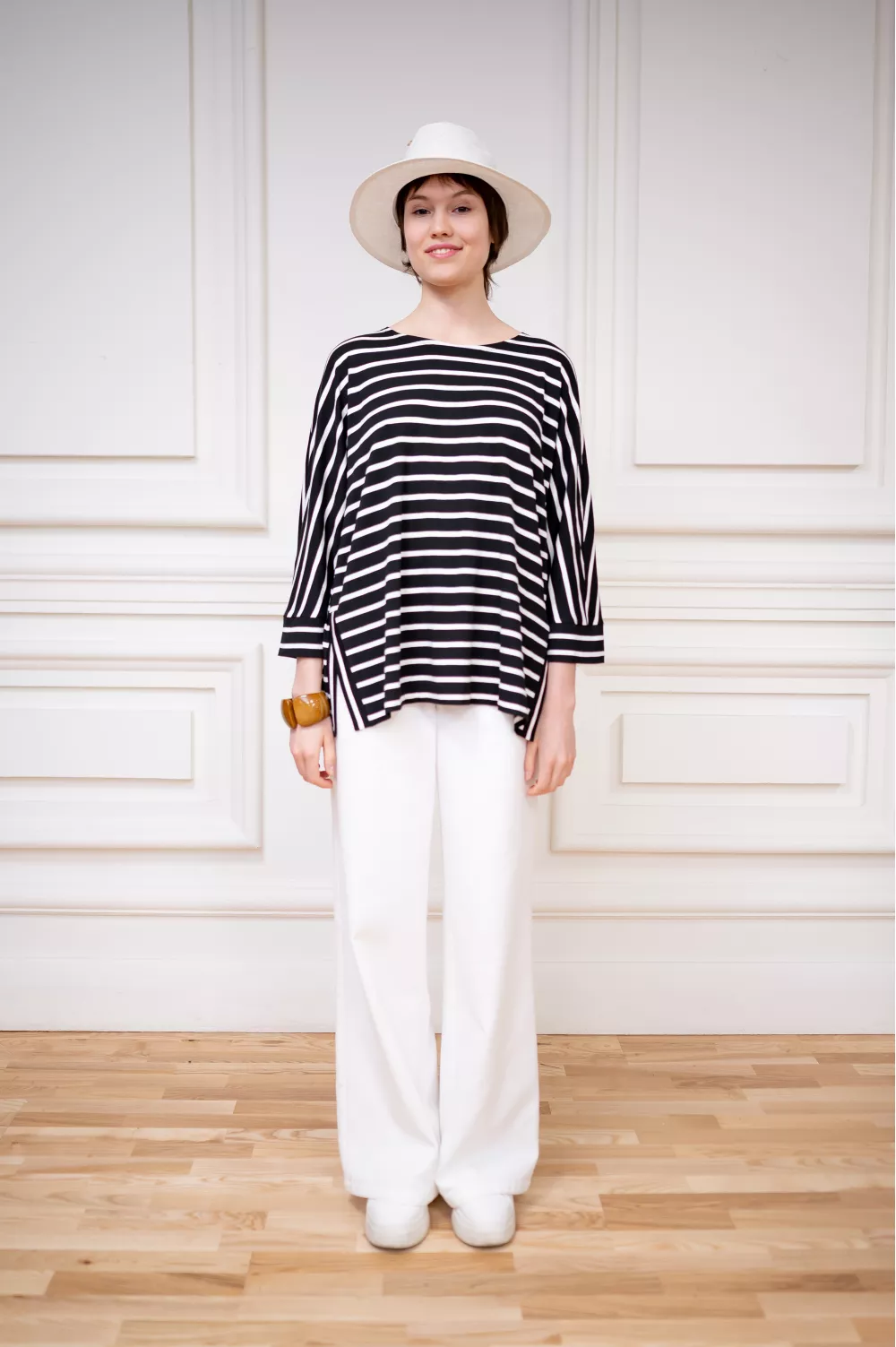 Легка кофта в морському стилі з віскози, має розрізи по бокам та укорочений рукав, що додають образу невимушеності та комфорту