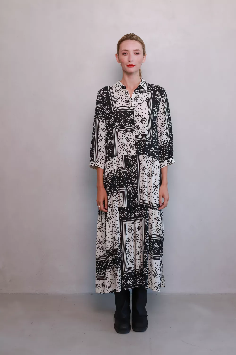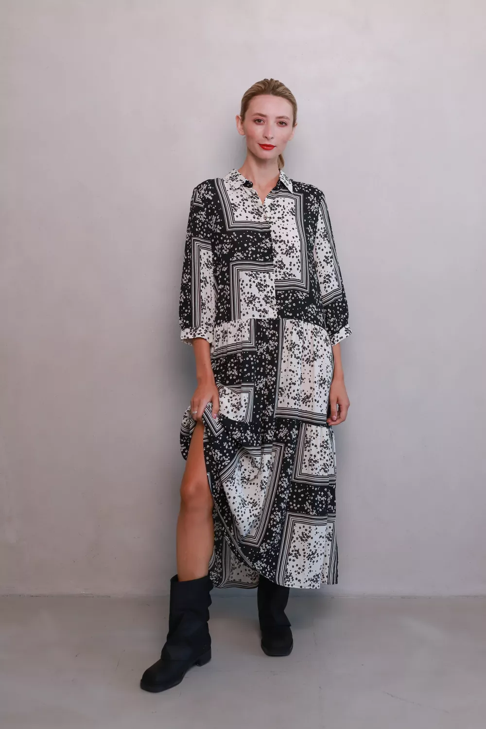 Легка та стильна сукня з 100% віскози — ідеальний вибір для тих, хто цінує комфорт і сучасний дизайн. Чорно-білий геометричний принт з абстрактними елементами створює ефектний контраст і додає образу характеру.