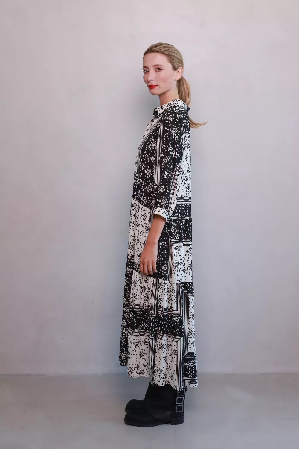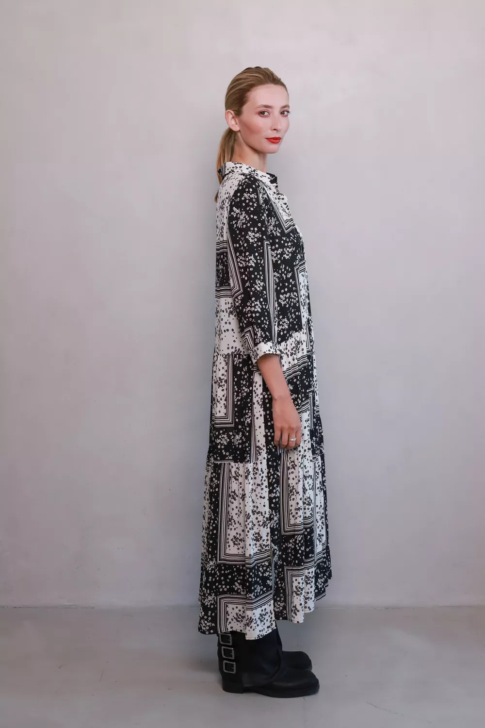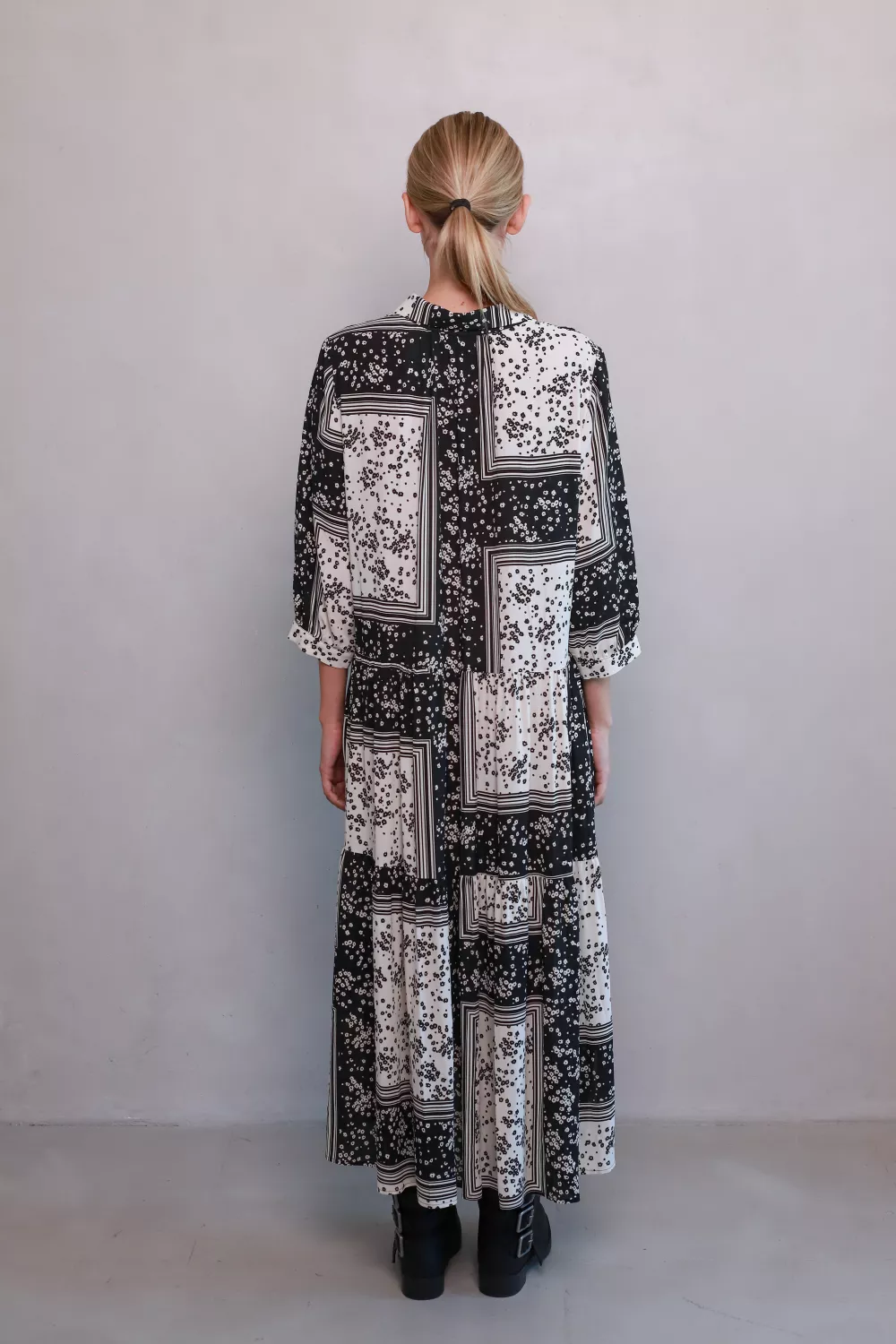 Віскозна сукня максі довжини в молочно-чорний абстрактний принт Енті
