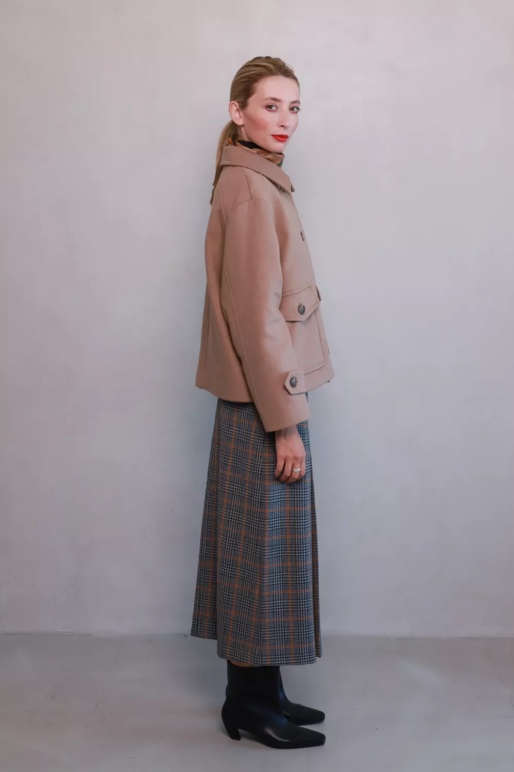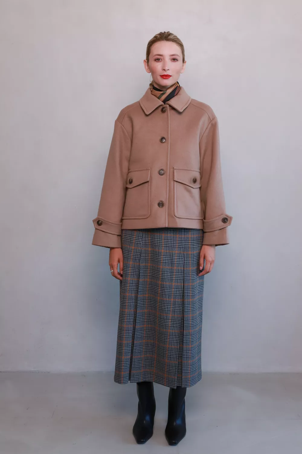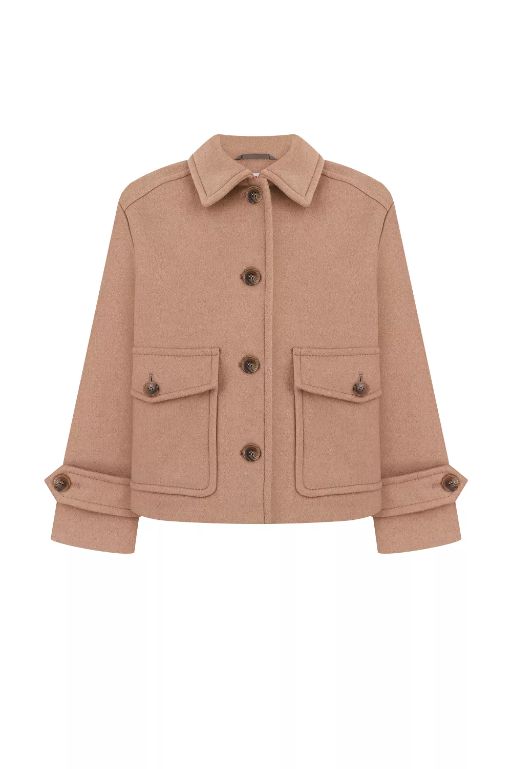 Стиль, який завжди в тренді. Це пальто з натуральної вовни поєднує комфорт, практичність і витончену естетику. Лаконічний крій з акцентом на великих накладних кишенях створює сучасний міський образ, а теплий бежевий відтінок робить його ідеальним для будь-яких поєднань.