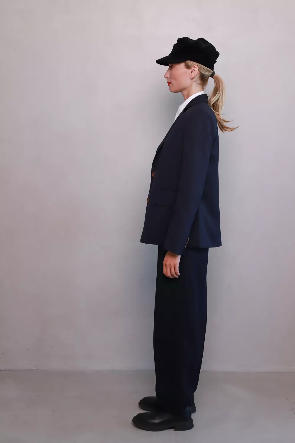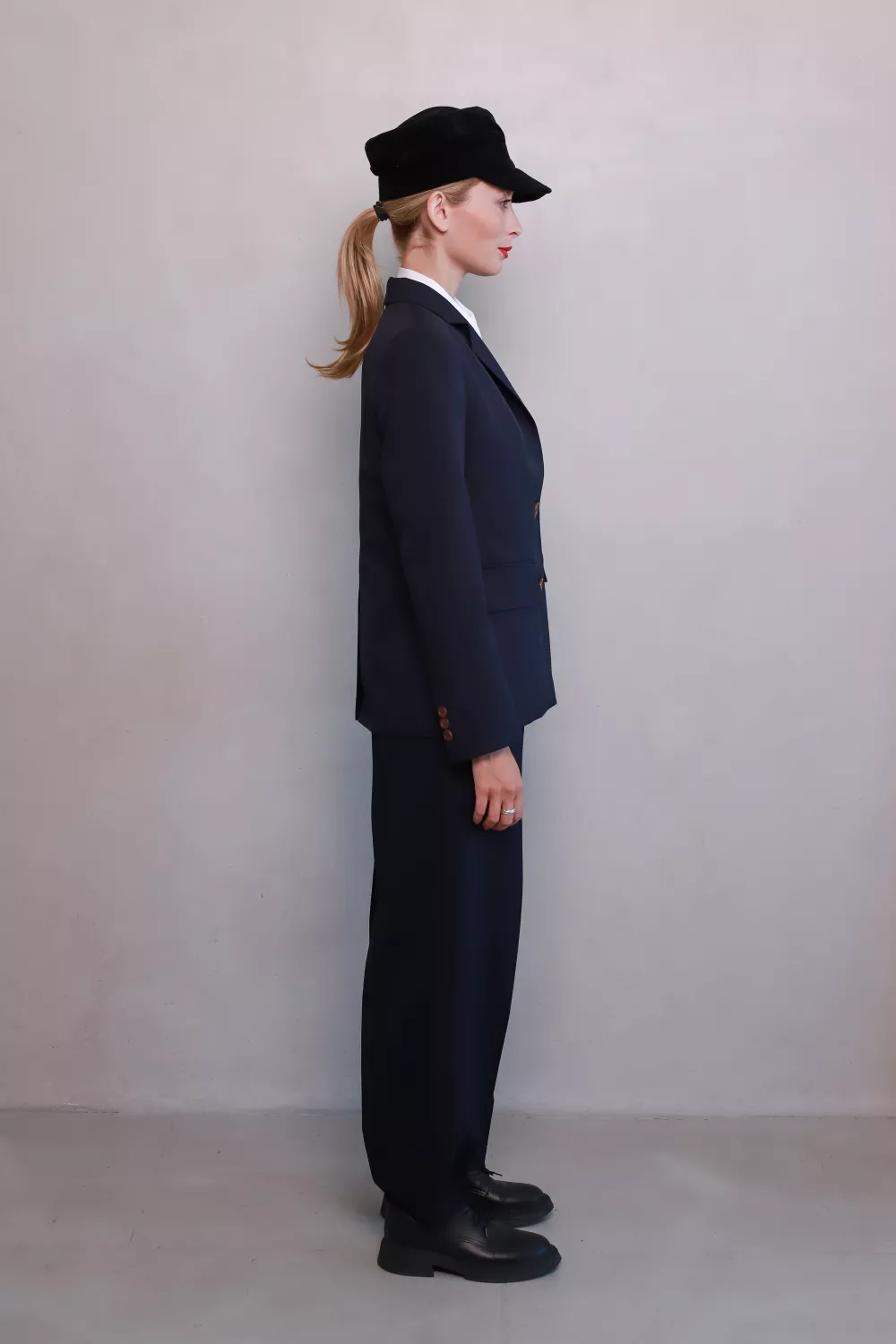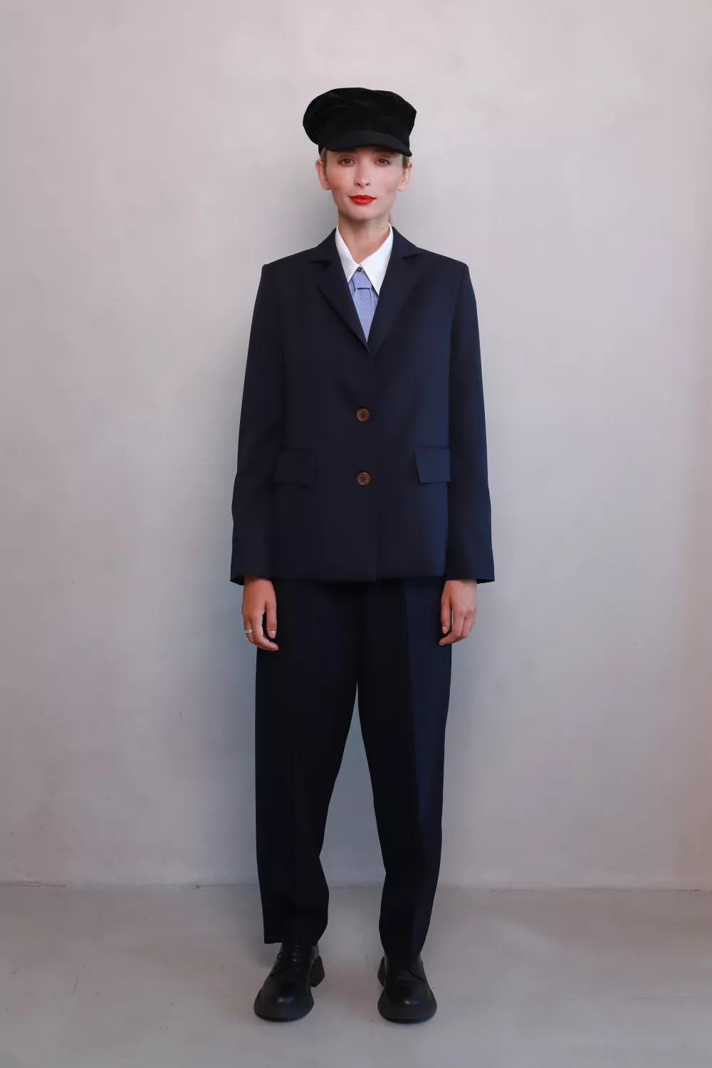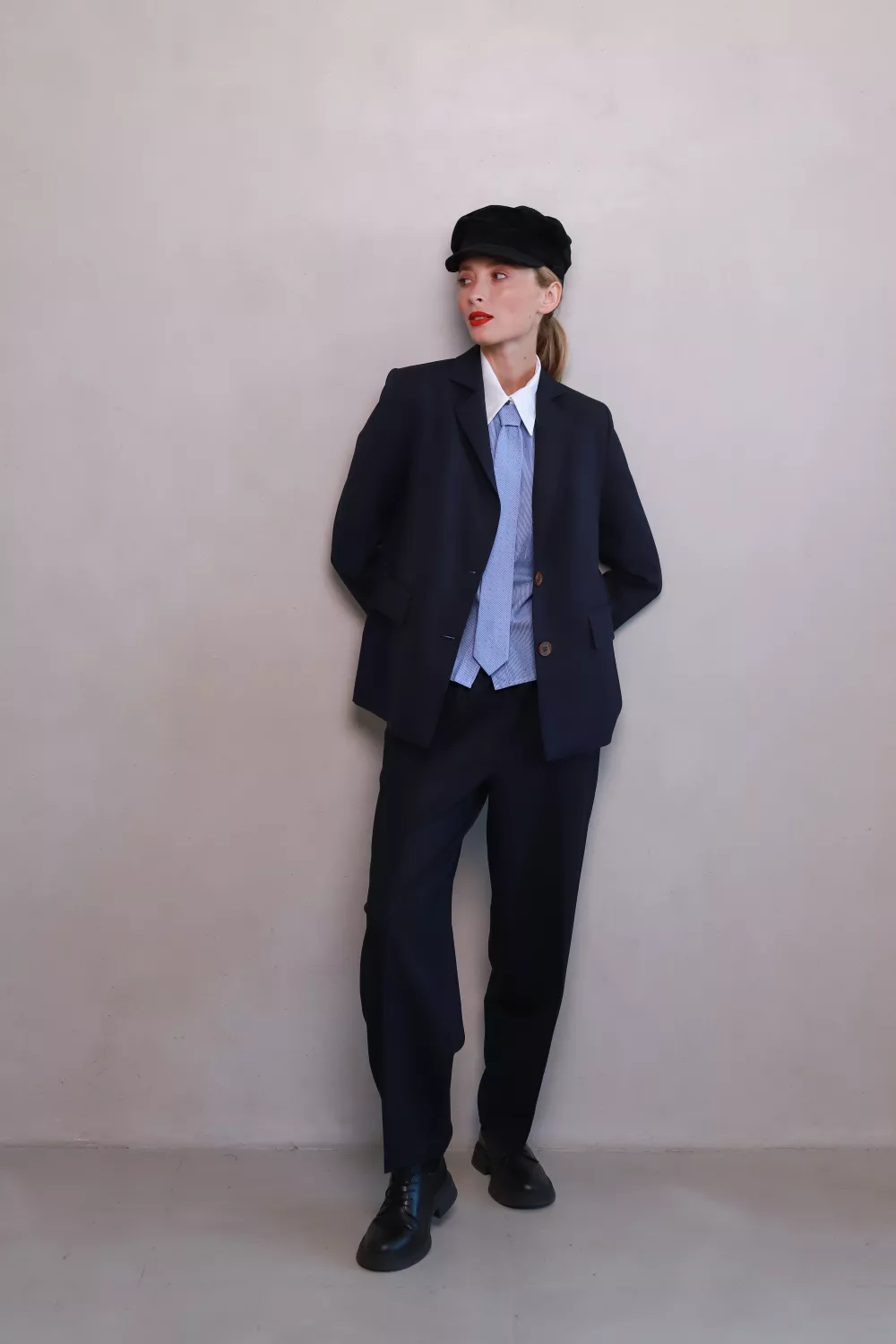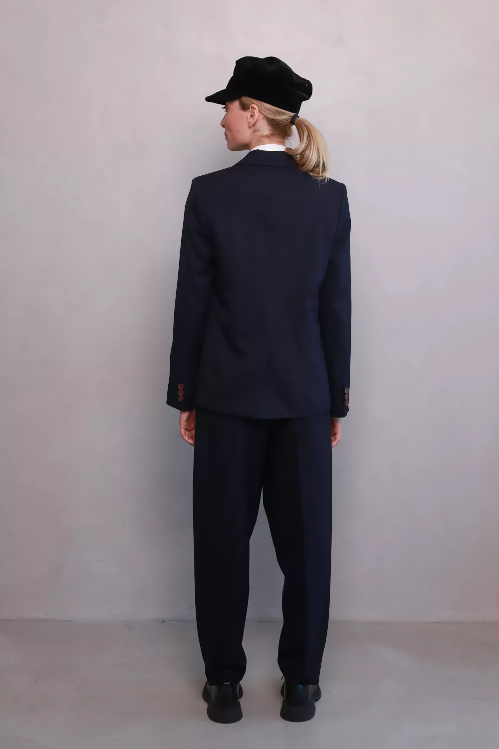 Сучасна класика, що підкорює з першого погляду. Цей жакет із натуральної вовни в модному темно-синьому кольорі додає образу яскравого акценту, зберігаючи лаконічність і елегантність. Ідеальний крій підкреслює силует, а натуральна тканина дарує комфорт у будь-який сезон.