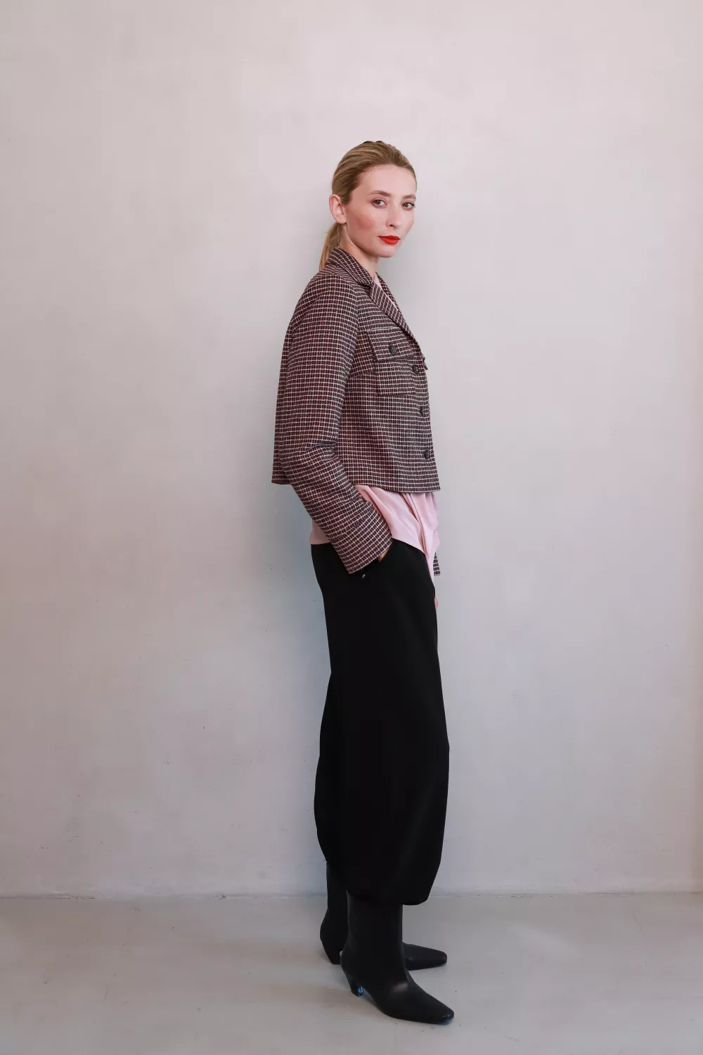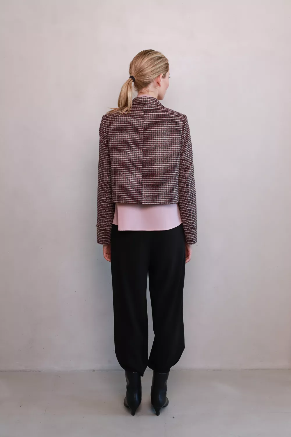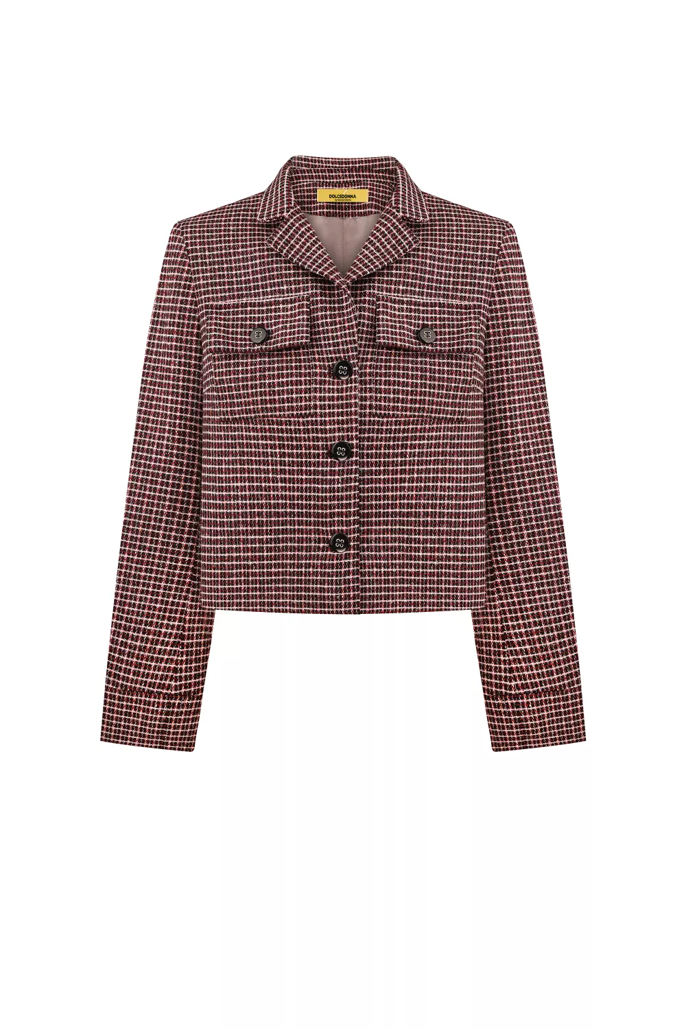 Укорочений класичний жакет з вовни в бордово-чорну клітинку Кейла