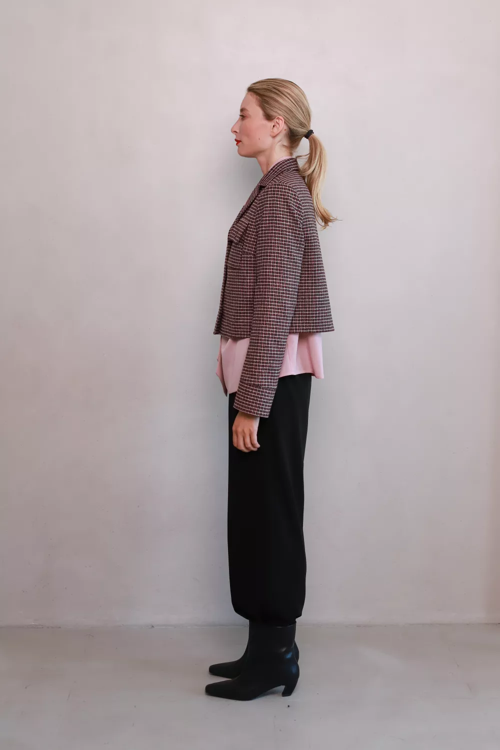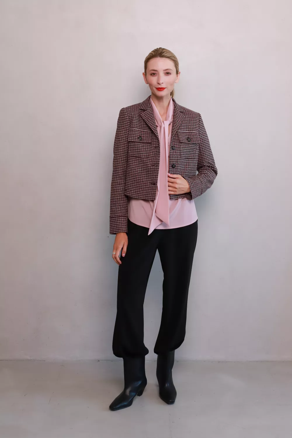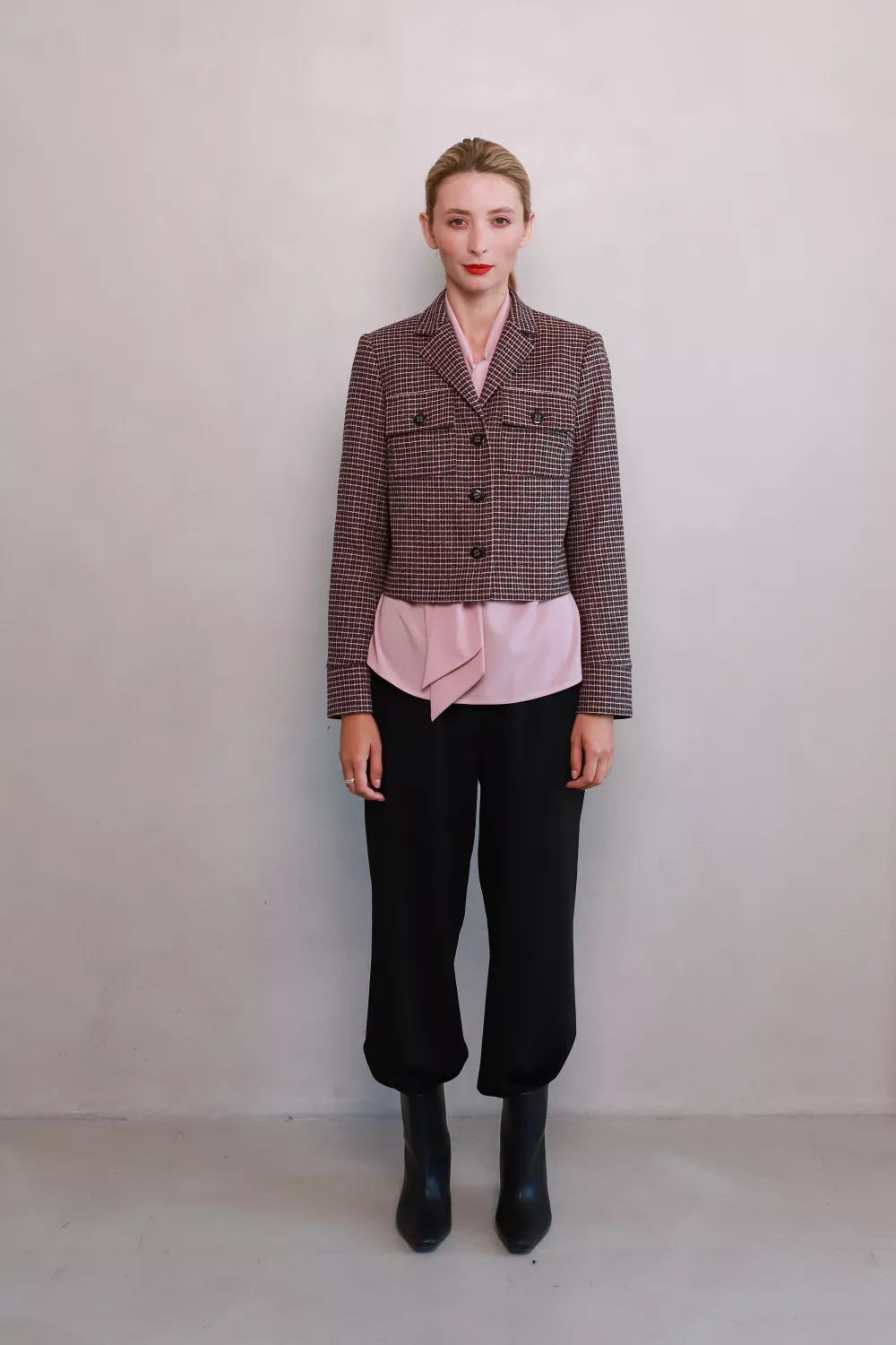 Укорочений класичний жакет з вовни в бордово-чорну клітинку Кейла