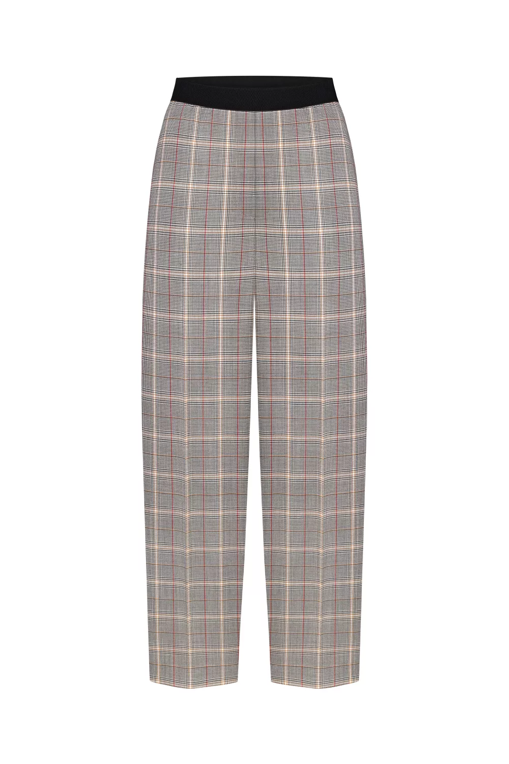 Вовняні укорочені брюки на резинці сірого кольору в молочно-чорну клітинку Кіото