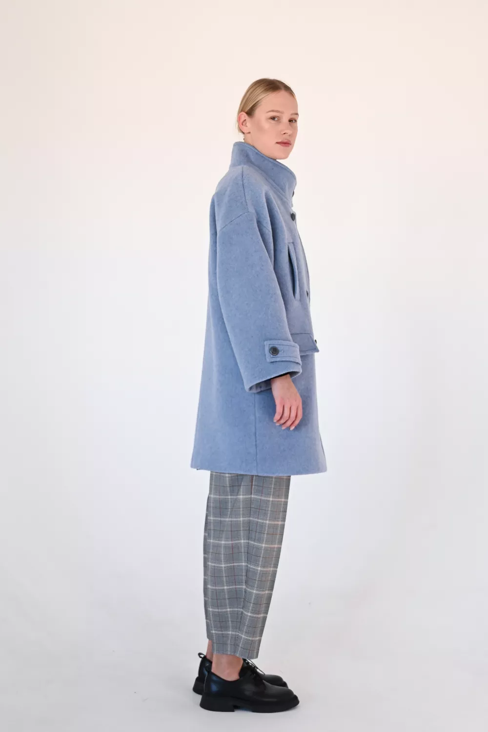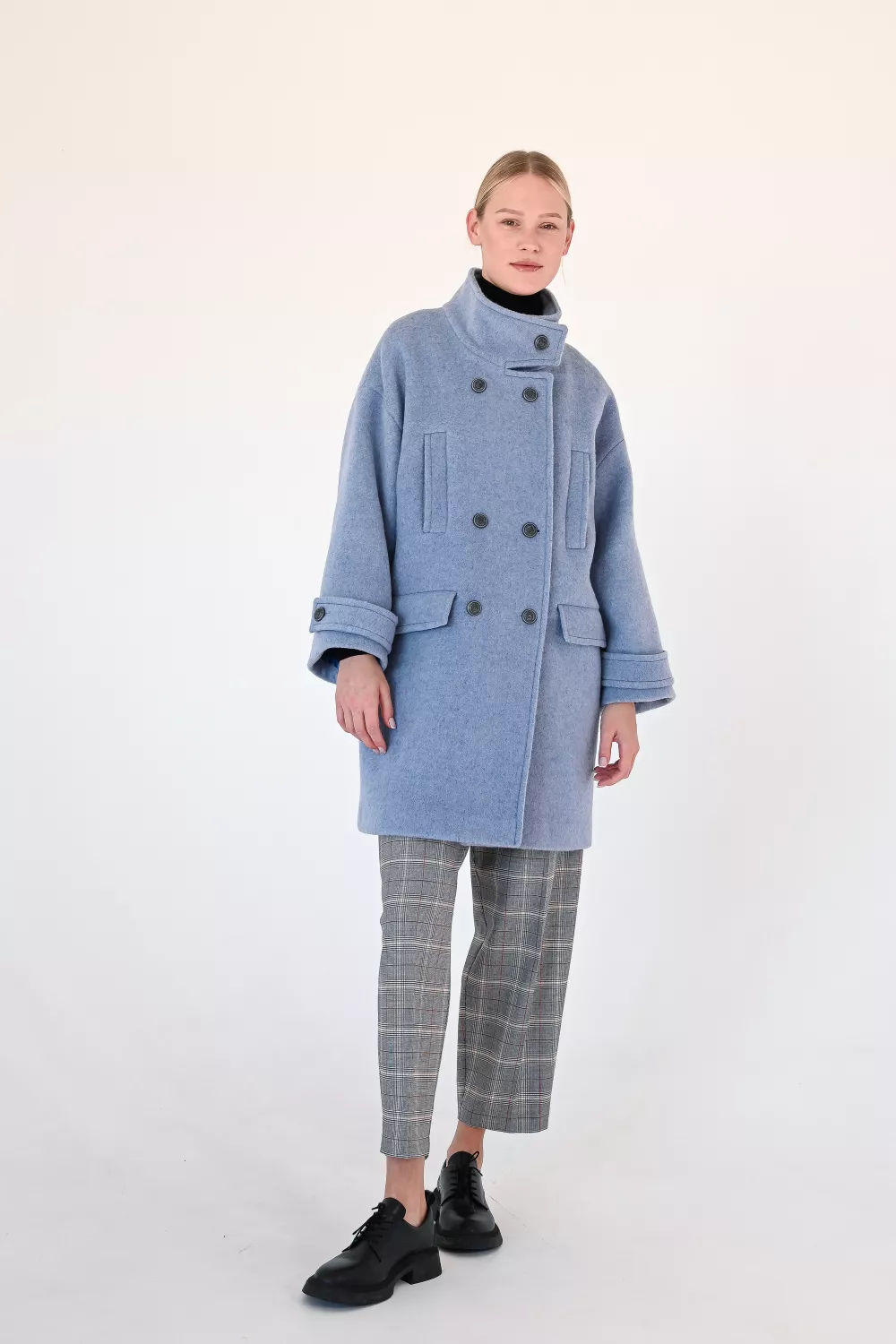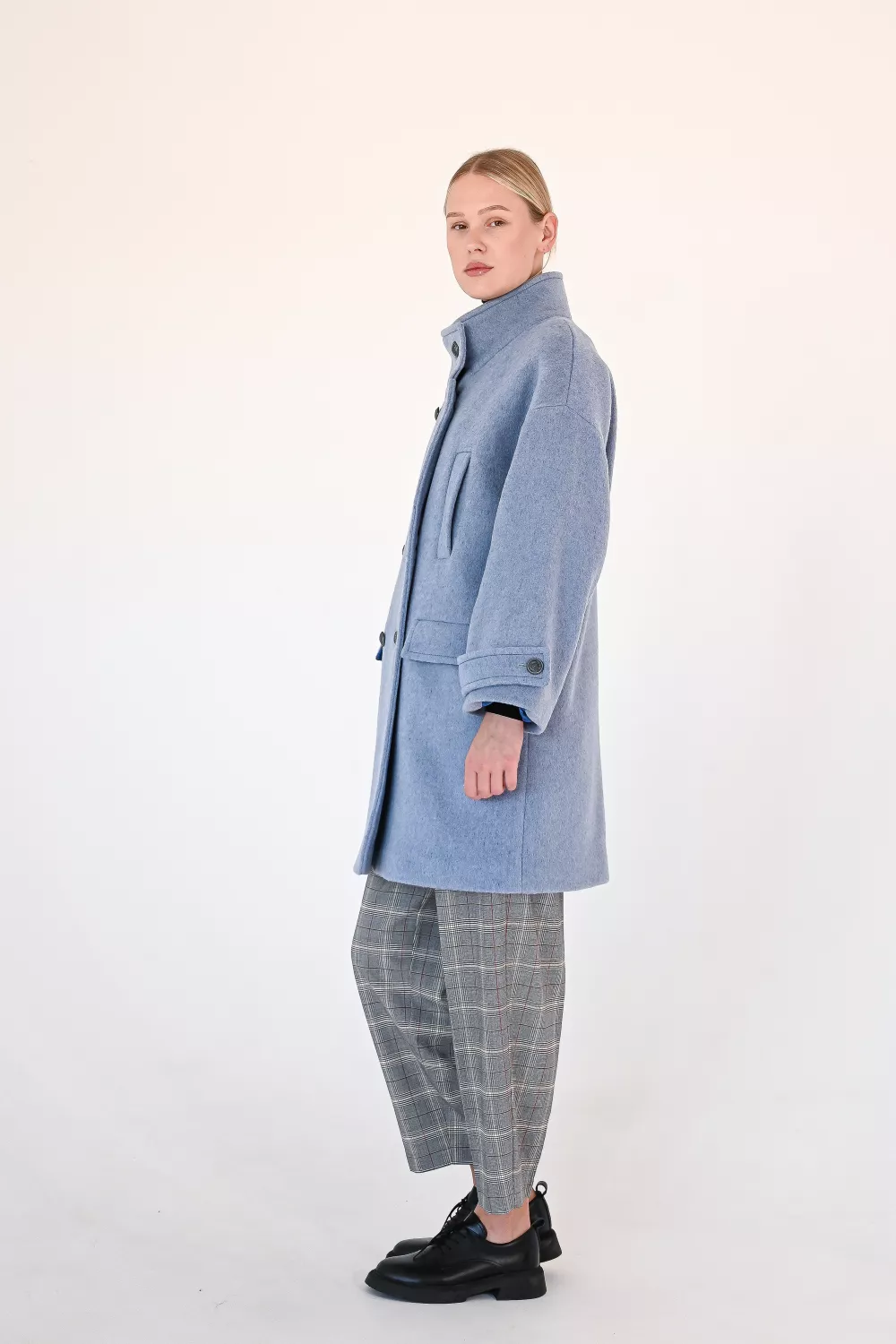 Пальто «Елройс» — це поєднання витонченого силуету, ніжного кольору і функціональності. У блакитному відтінку, з патами та фасоном міді, воно стає ідеальним акцентом у стилістиці осінньо-зимового гардеробу.