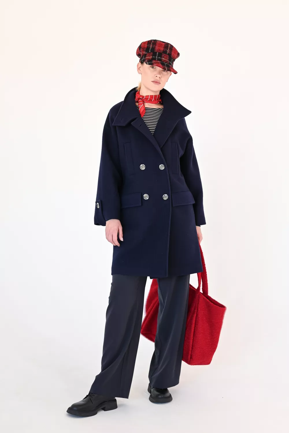 Пальто «Елройс» — це поєднання витонченого силуету, ніжного кольору і функціональності. У синьому відтінку, з патами та фасоном міді, воно стає ідеальним акцентом у стилістиці осінньо-зимового гардеробу.