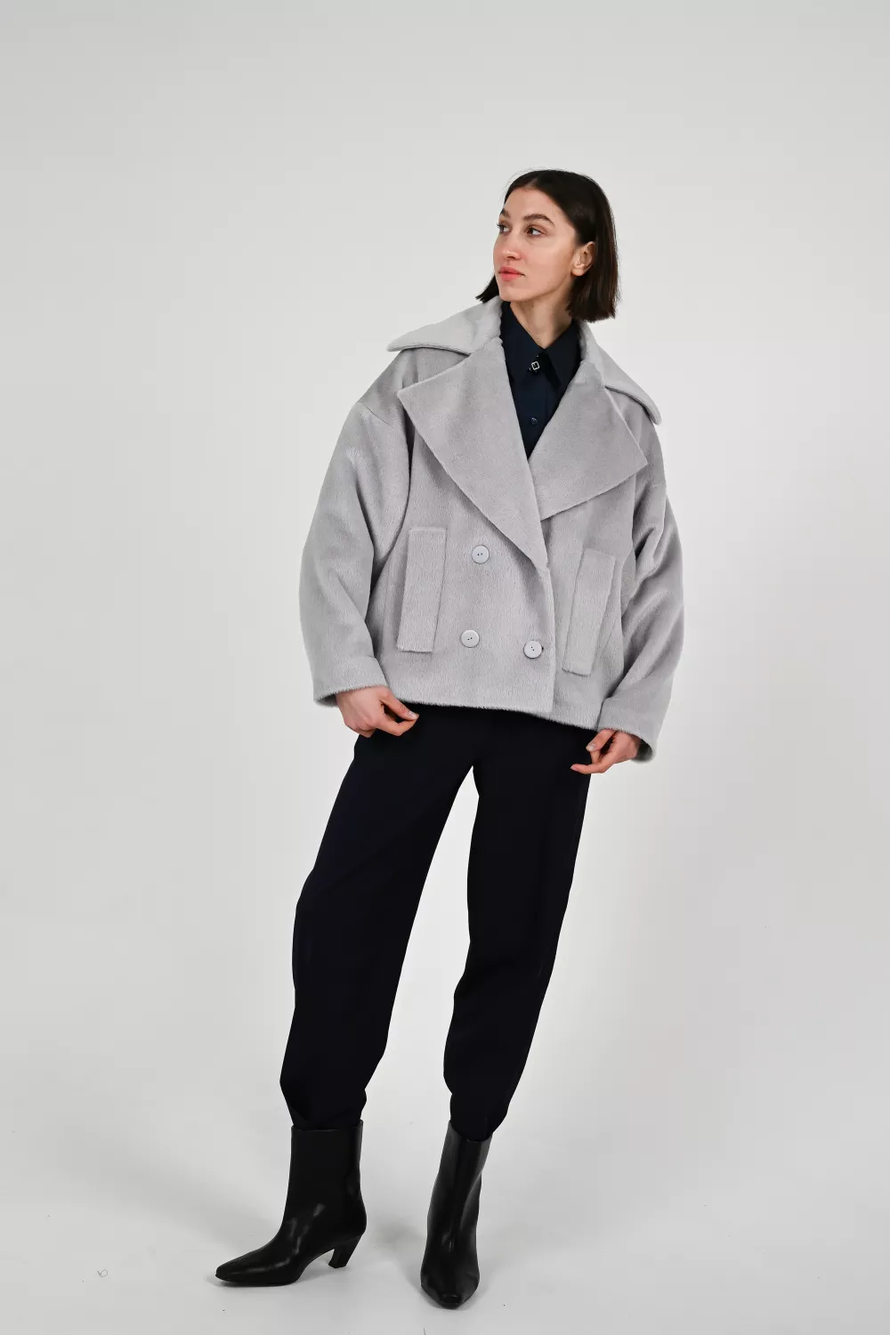 Коротке вовняне пальто в яскравому кольорі — must-have сезону, який поєднує класику та сучасність. Двобортна застібка з виразними ґудзиками та акцентний відкладний комір надають образу елегантності, а лаконічний крій робить річ універсальною для будь-якого стилю.