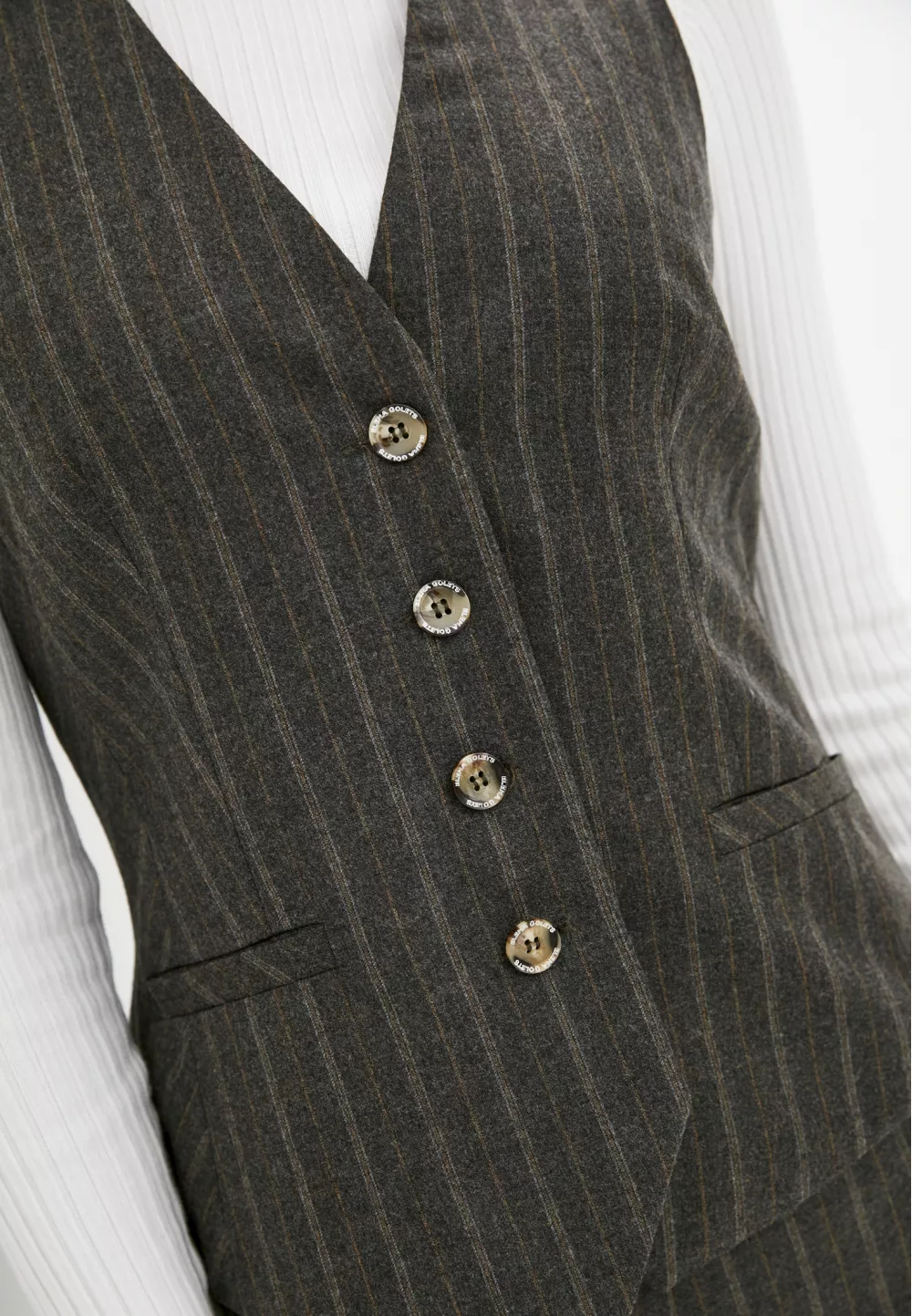 Vest lined with a plaid suit wool. Button fastening, welt pockets. There is a back buckle to adjust waist width