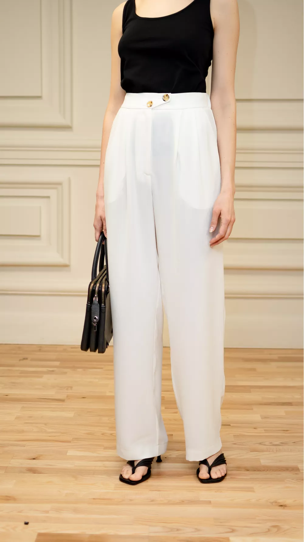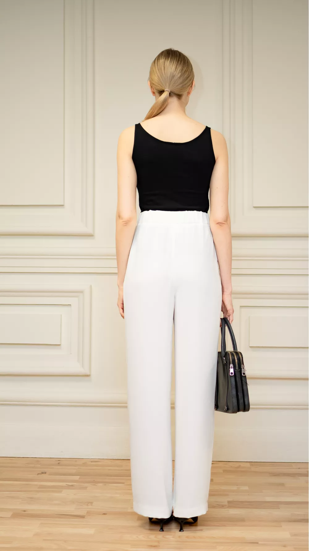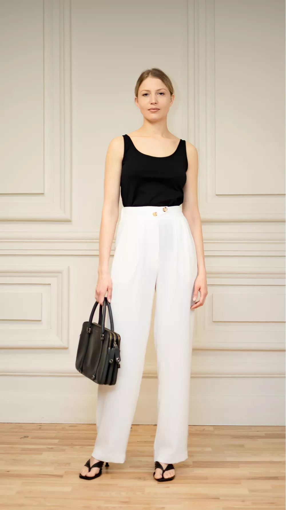 Long plain pants with a trendy cut will be a great base for your wardrobe