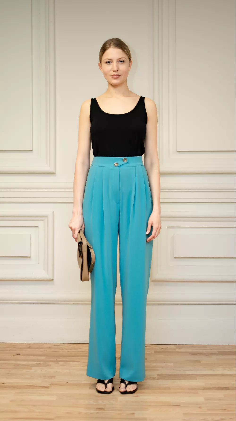 Long plain pants with a trendy cut will be a great base for your wardrobe