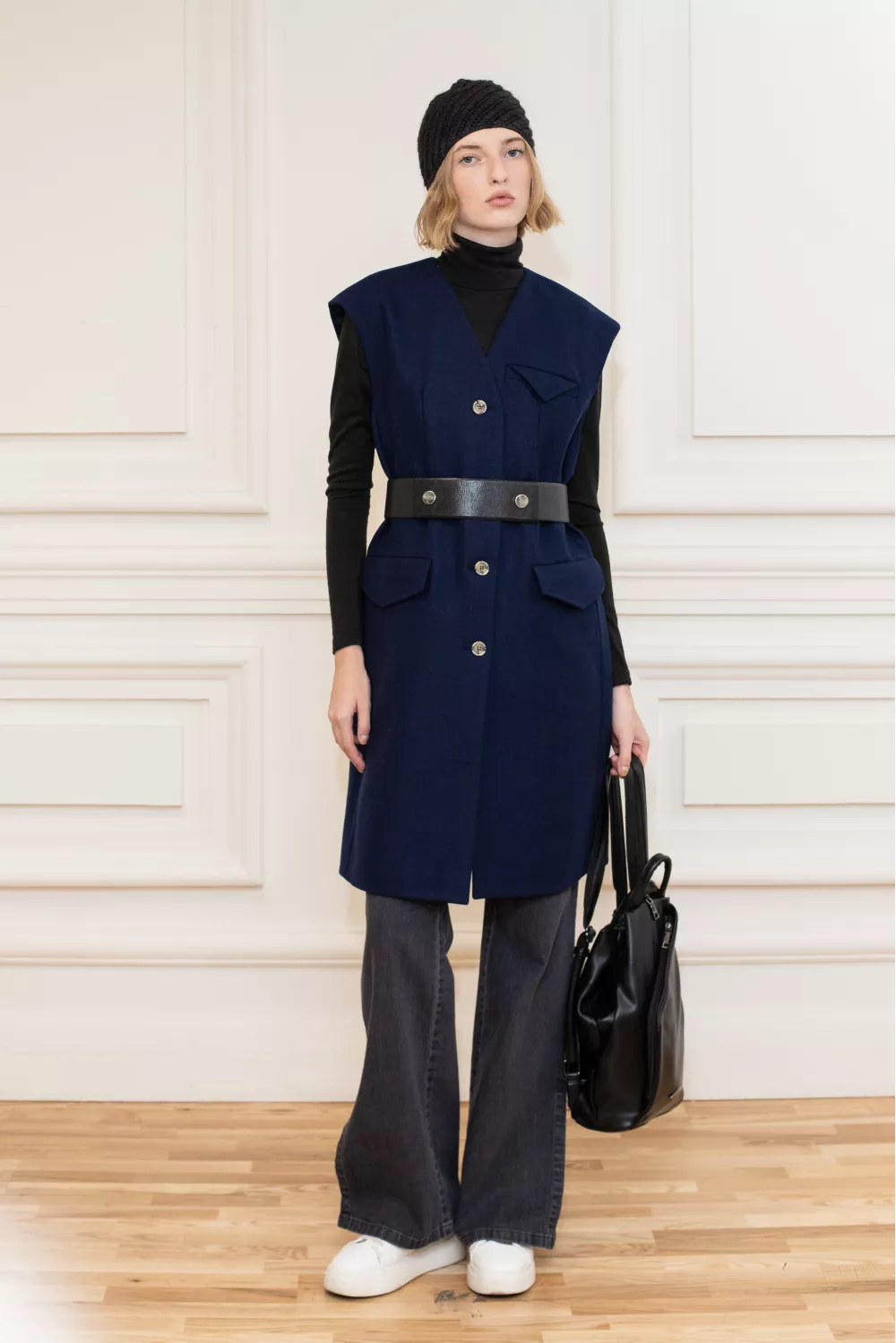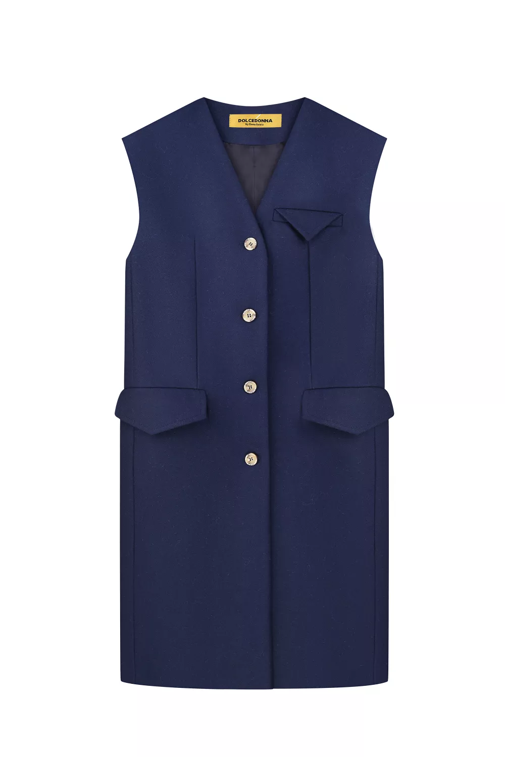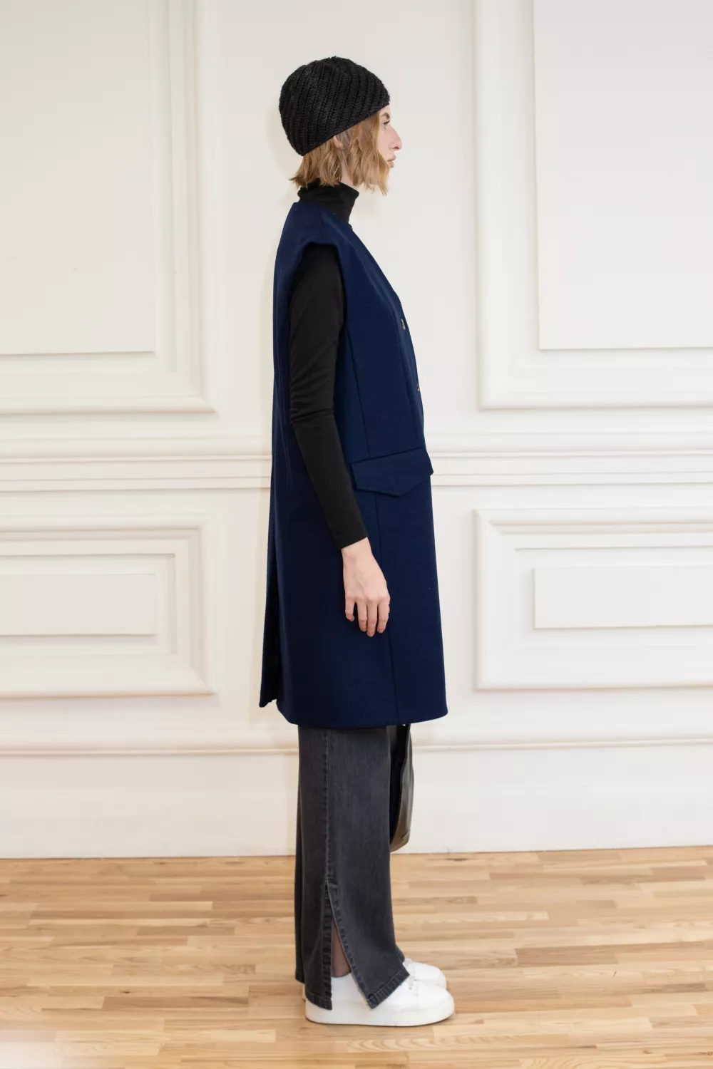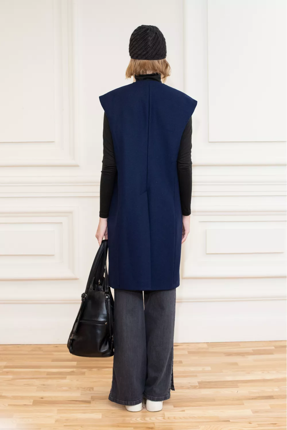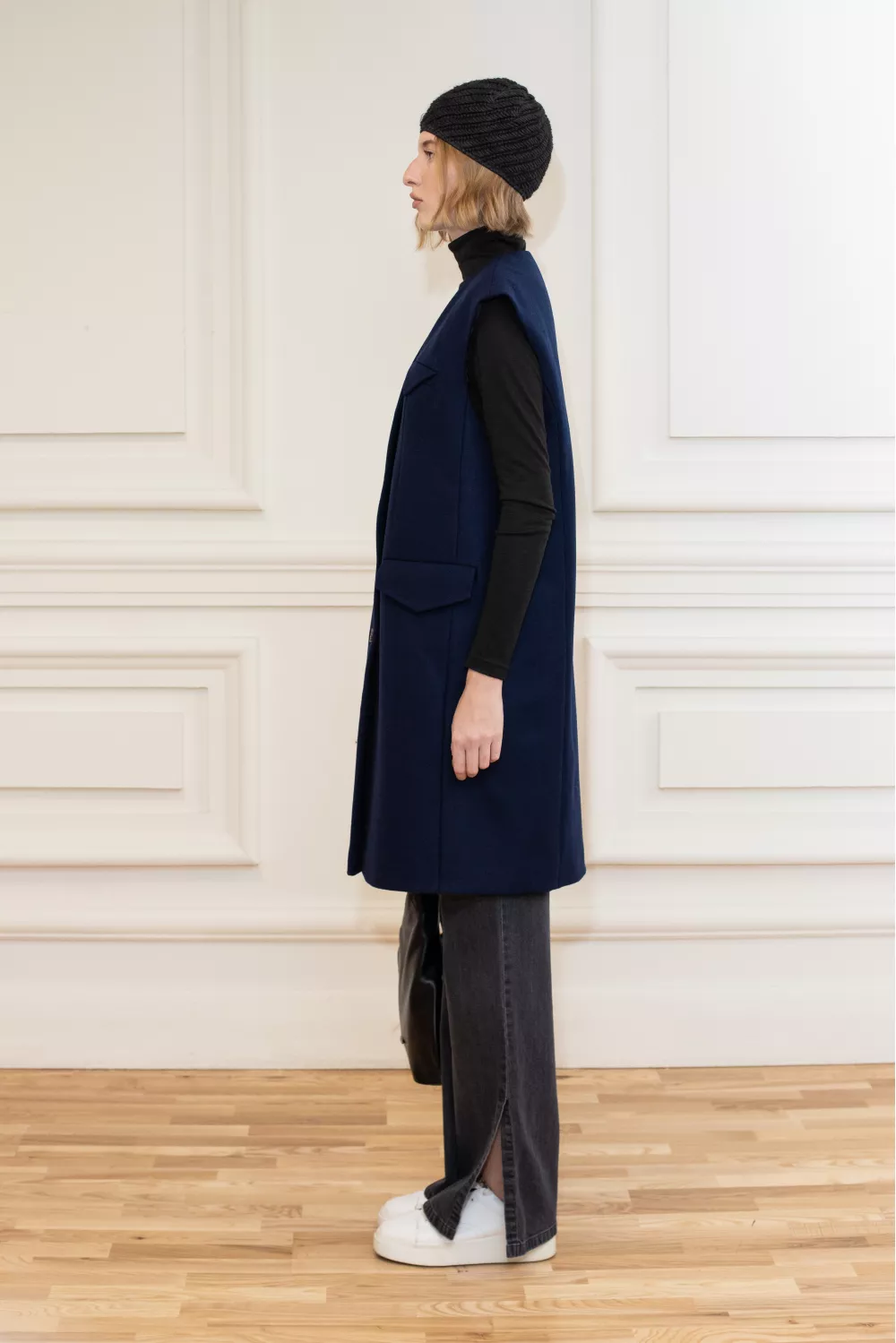 Composition: 80% wool, 20% polyester Classic design with the use of luxurious materials and a minimum of details. This vest is made from first shear lamb's wool. Wear it alone or over a loose-fitting t-shirt