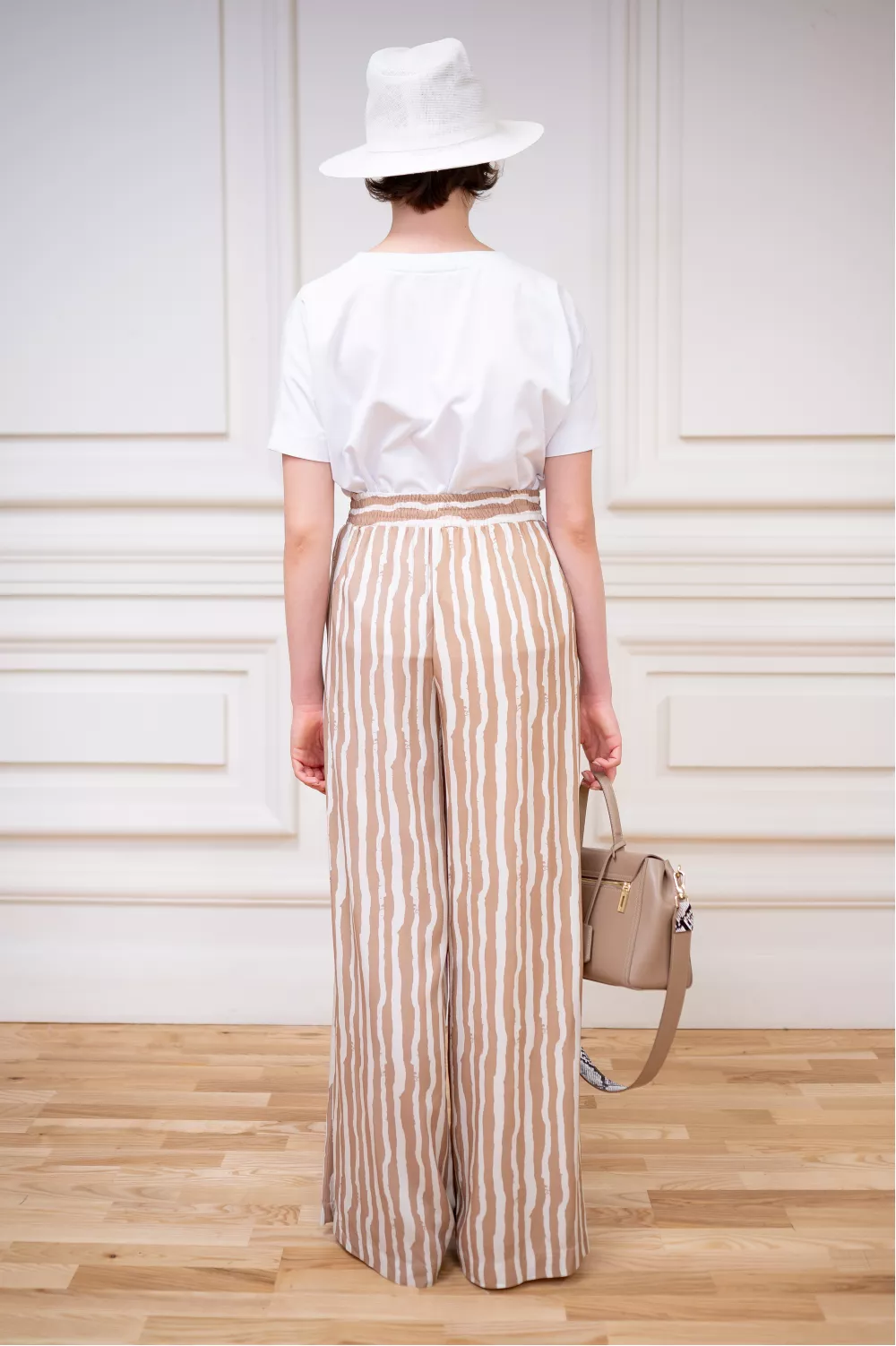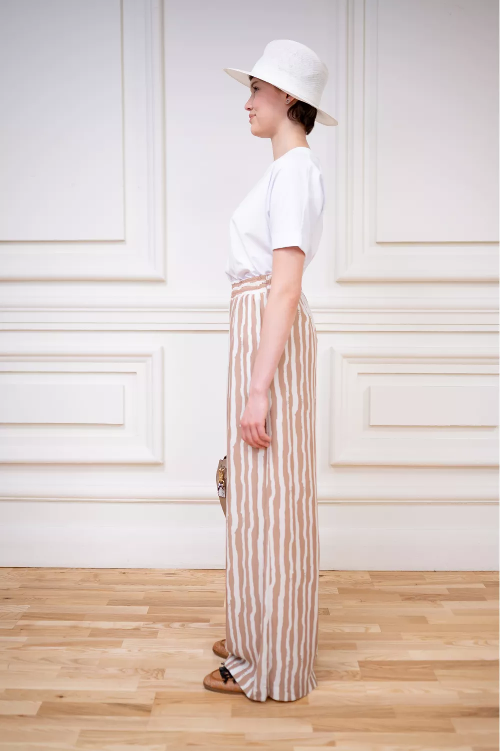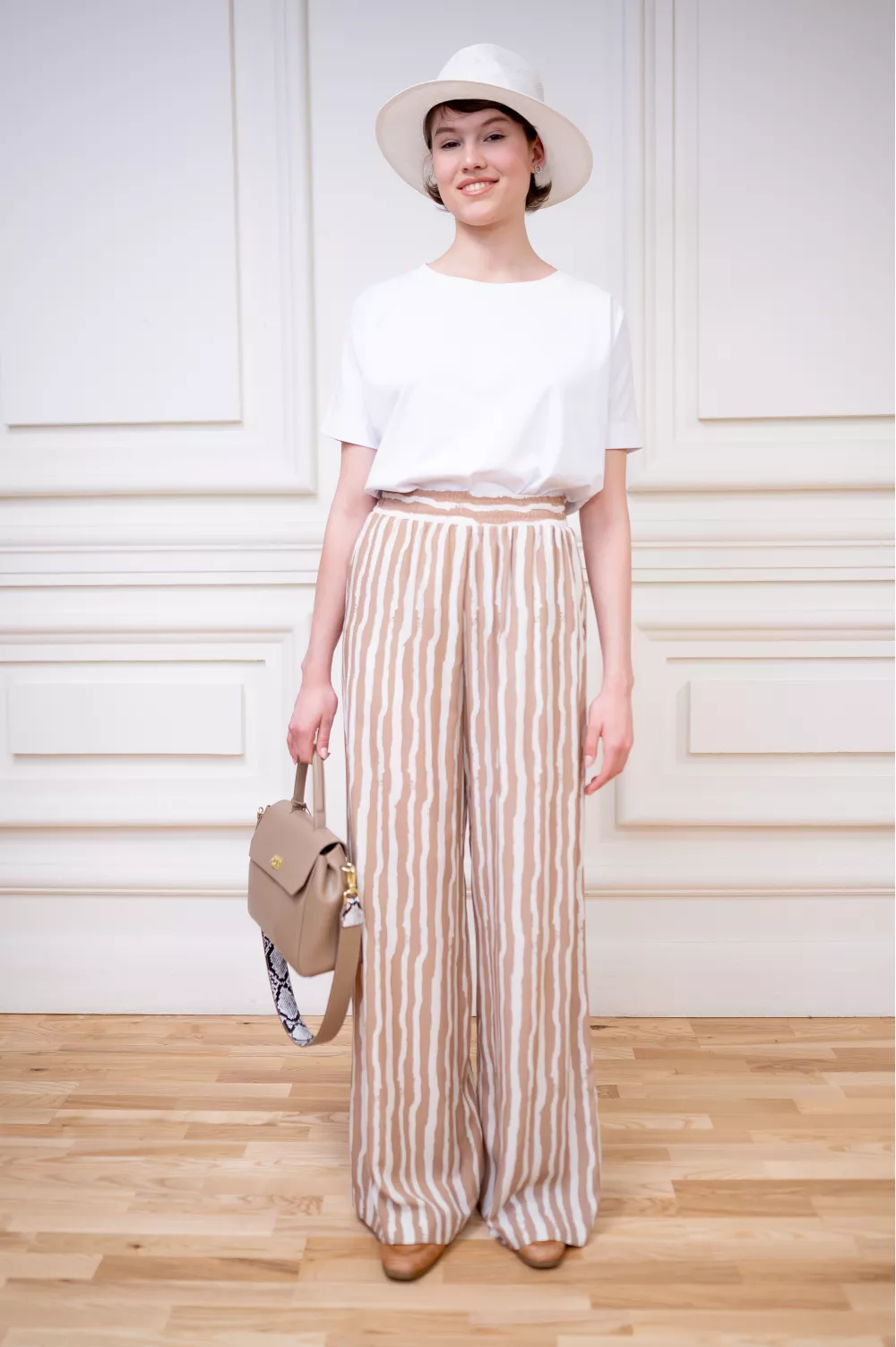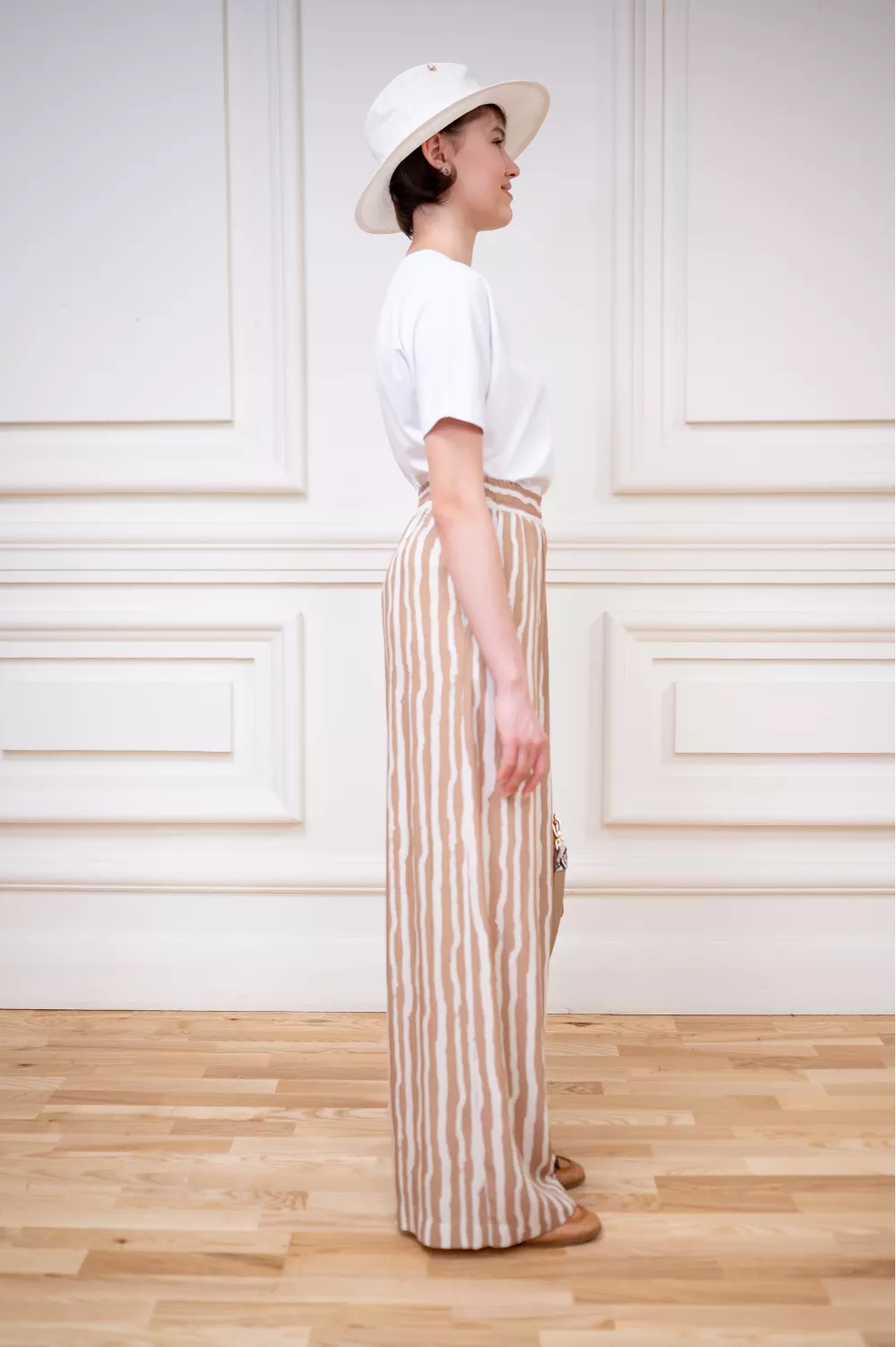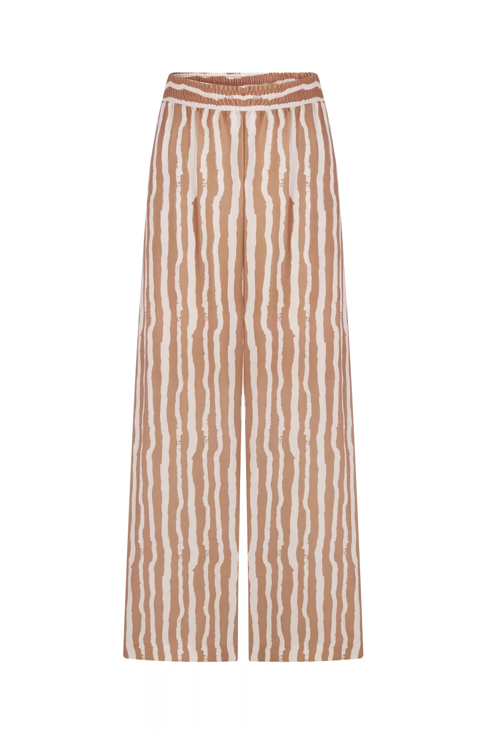 Wide trousers in brown and beige striped viscose in pajama style Cassandra