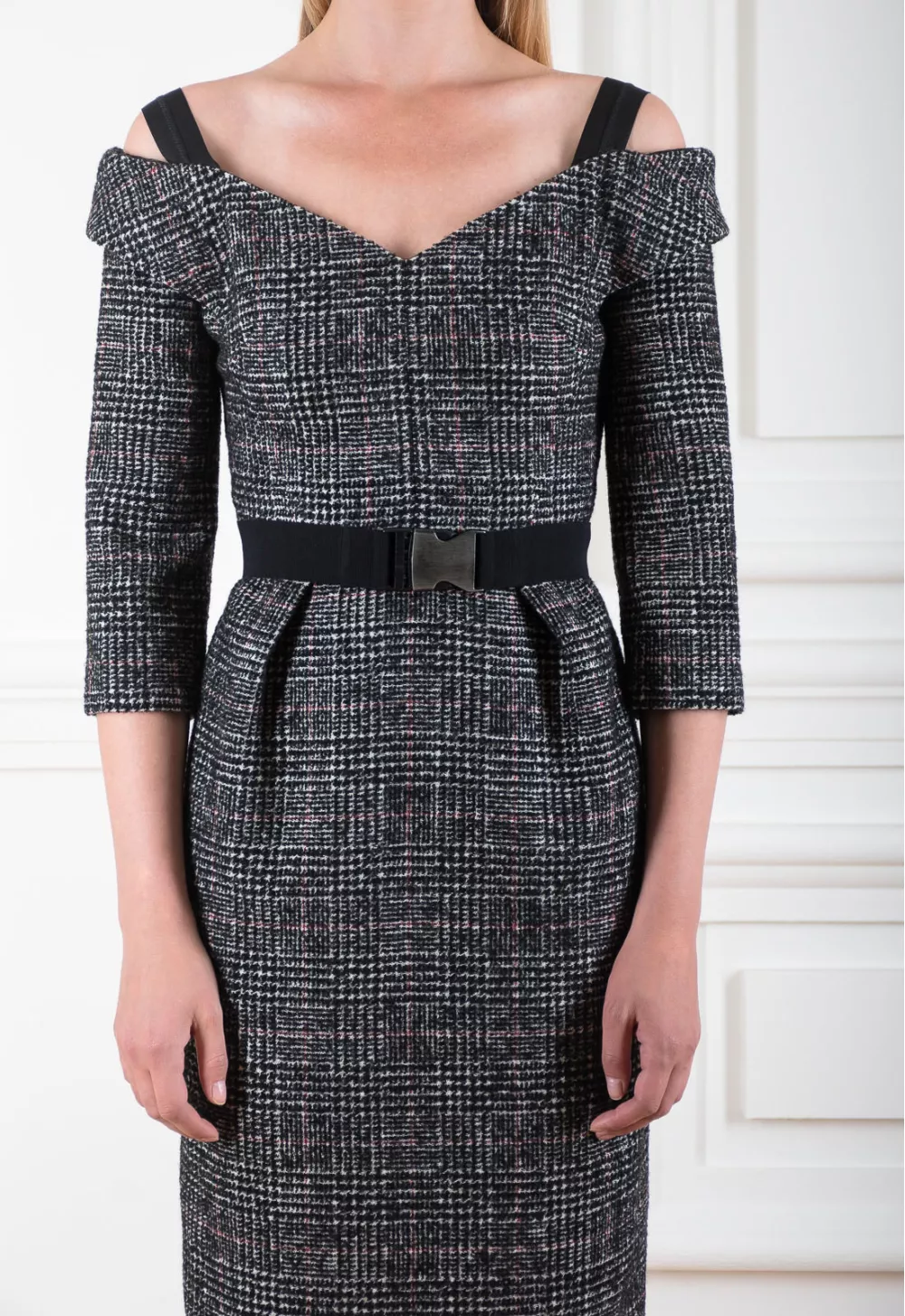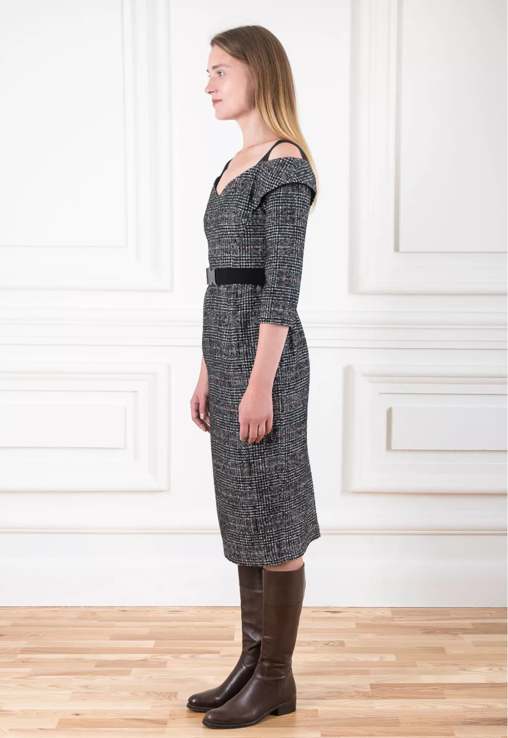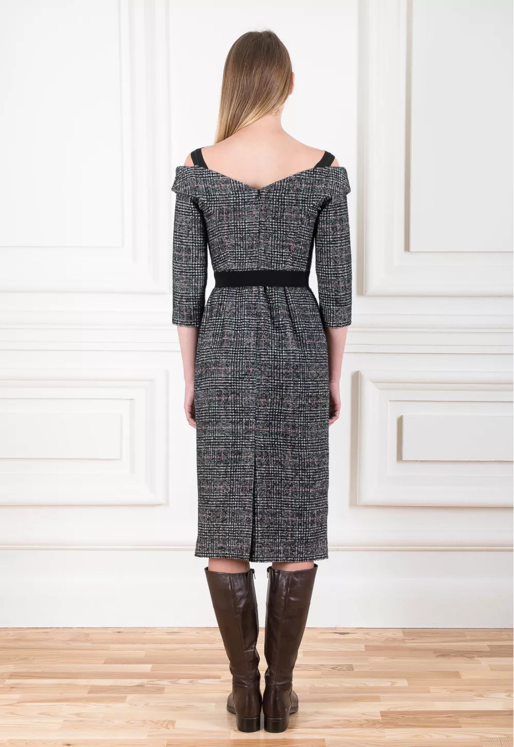 Стокгольм Платье. Платье в клетку из смесовой шерстяной ткани корсетного кроя, отрезное по линии талии, лиф - на репсовых шлейках