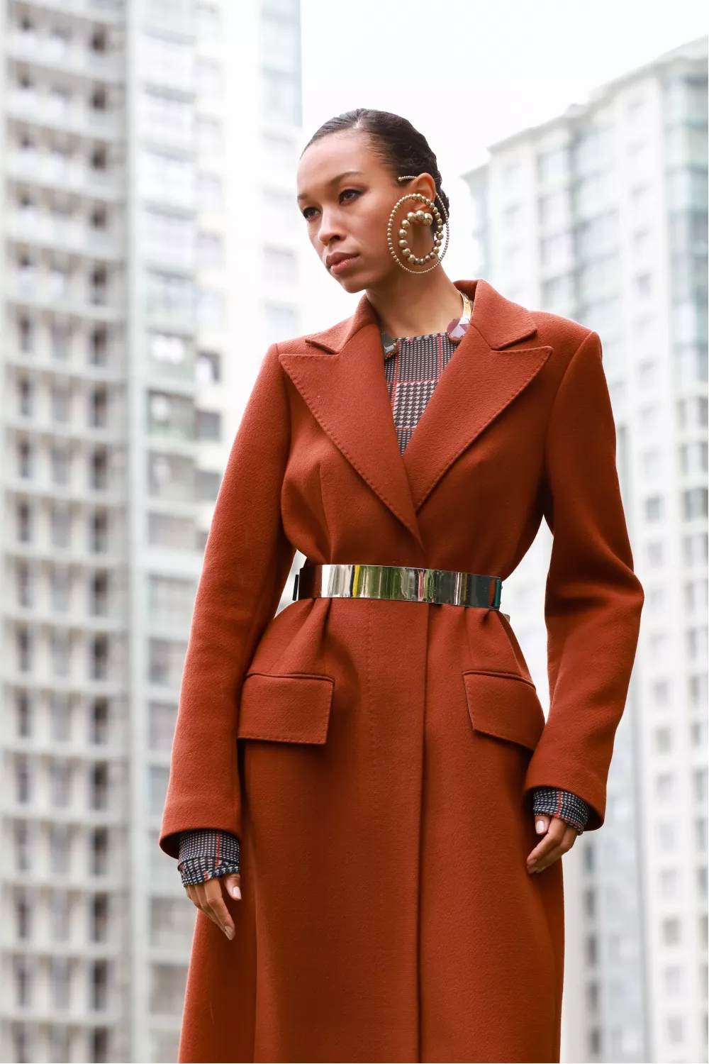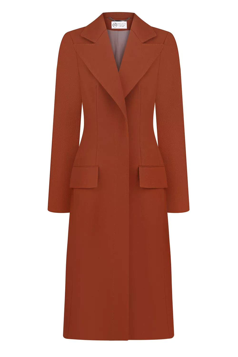 Classic single-breasted fitted coat with turn-up sleeves and English collar