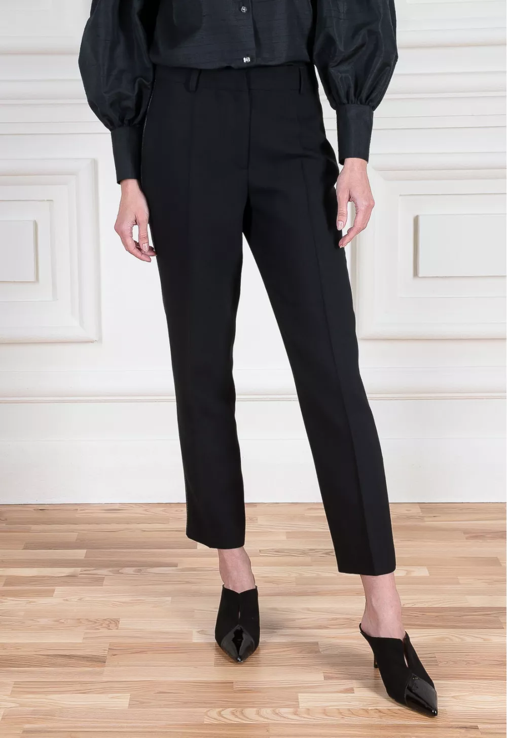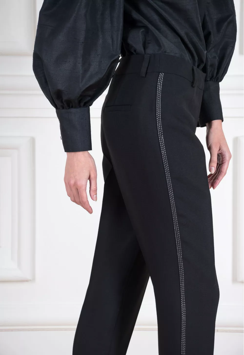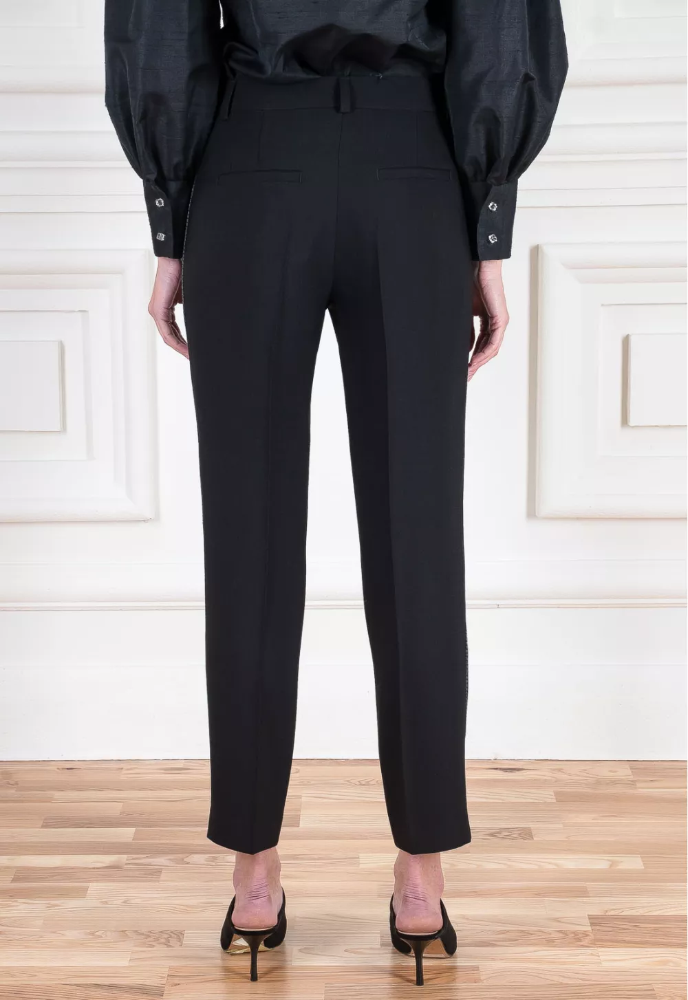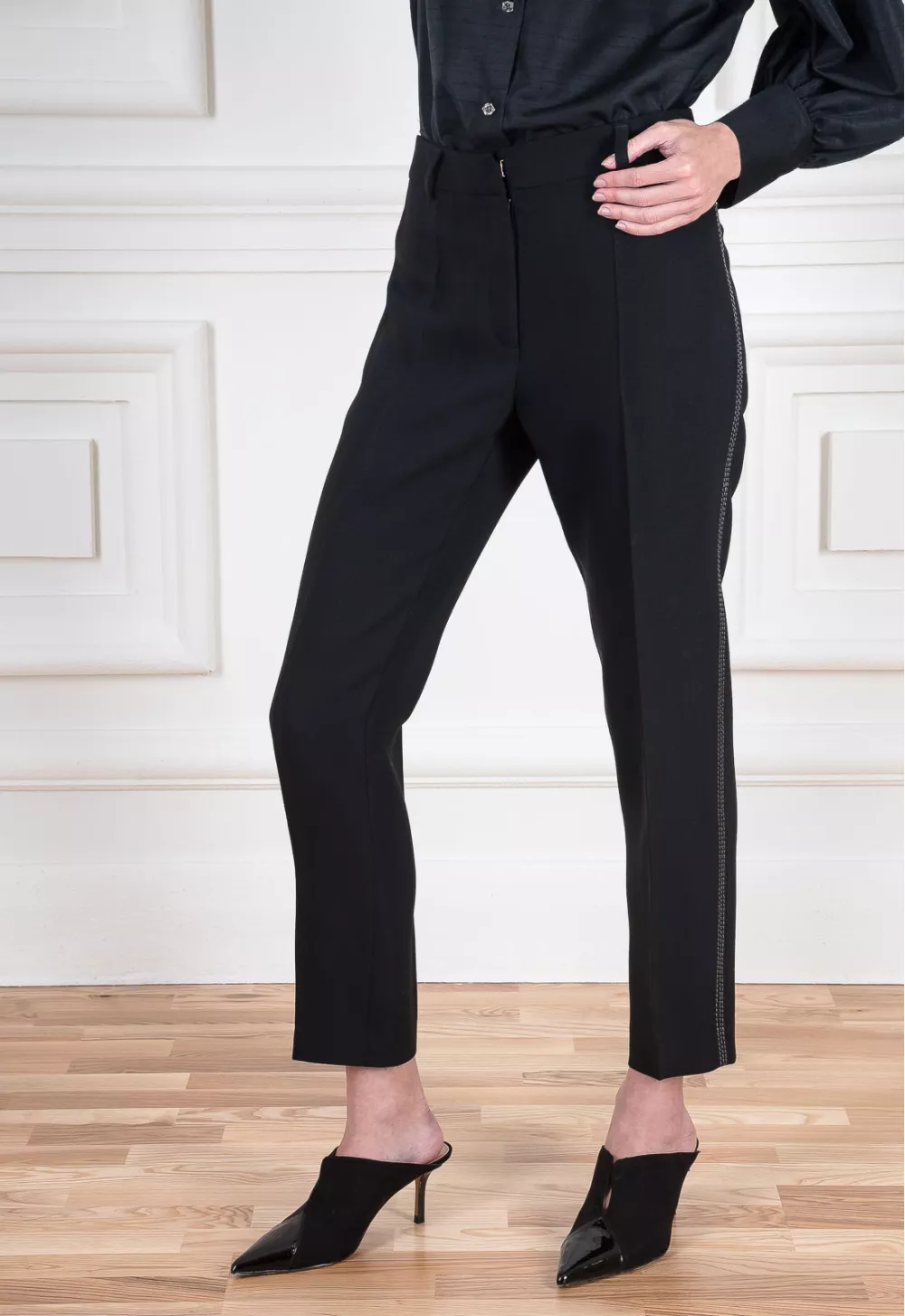 Short pants made of wool flannel, with a decorative chain on the side seam