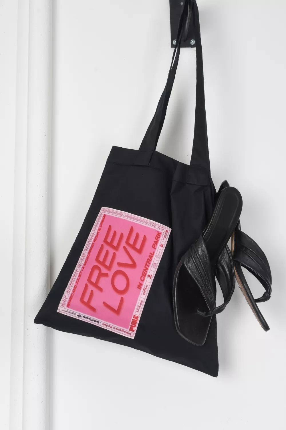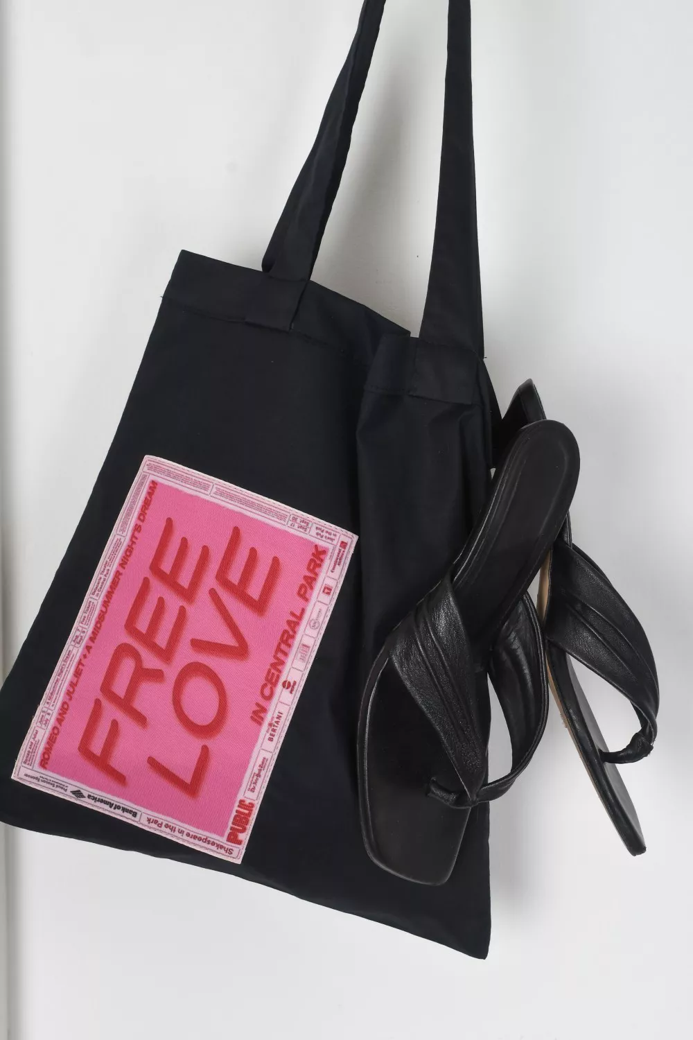 Сумка-шопер черного цвета с ярким принтом на каждый день без застежки.