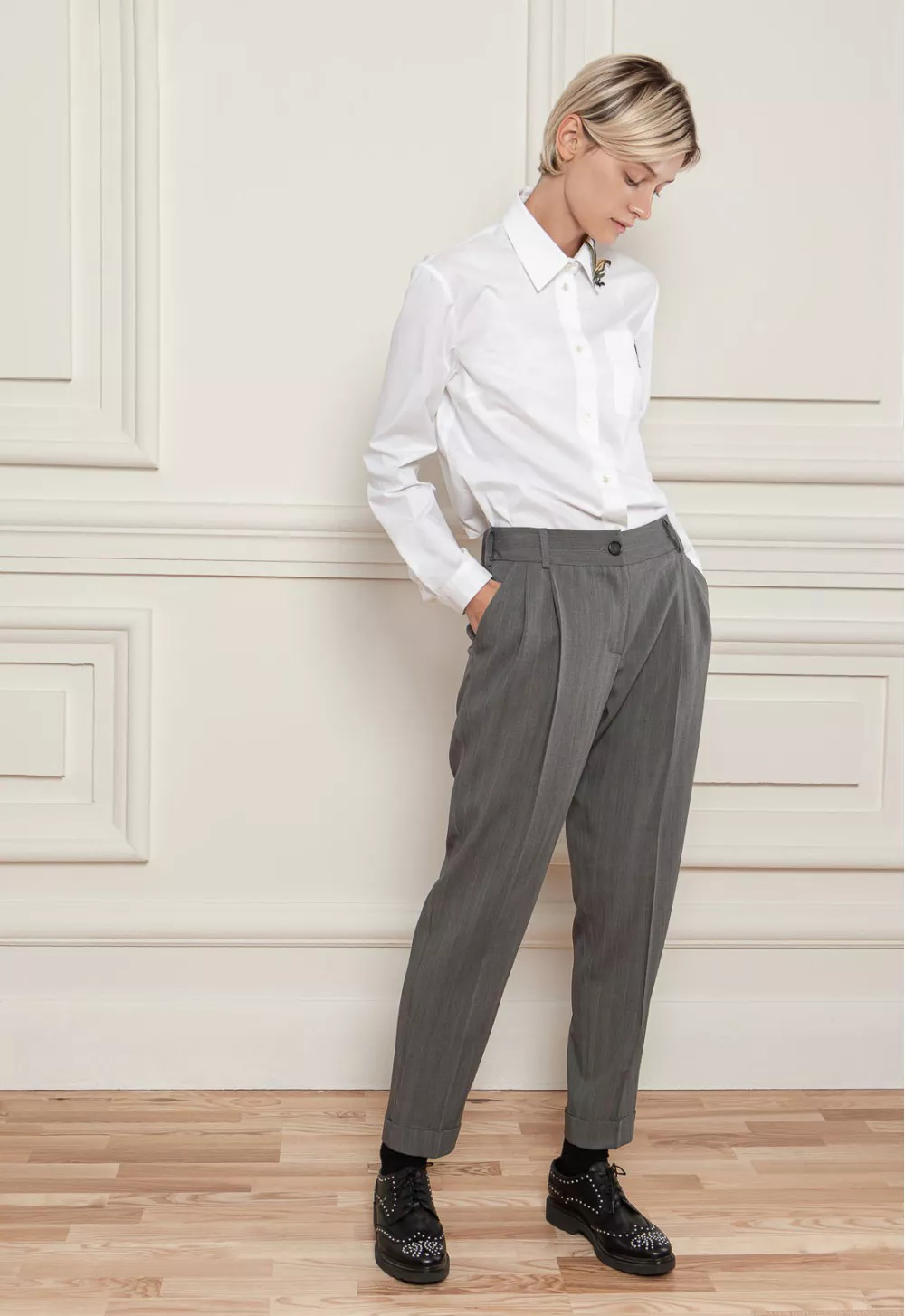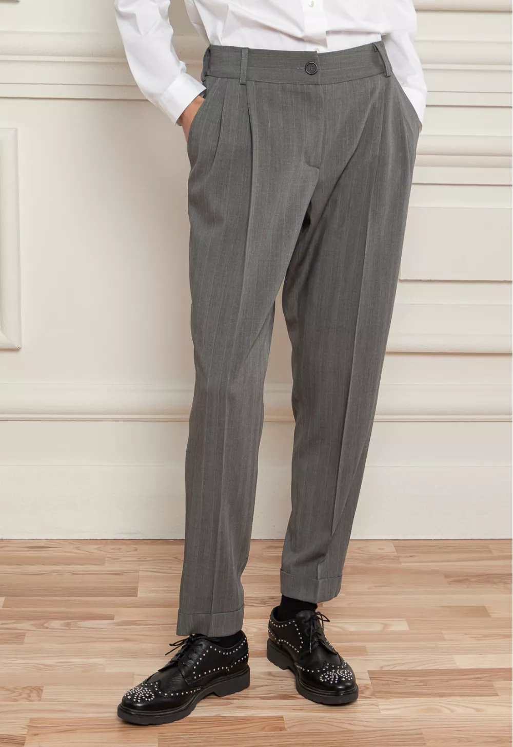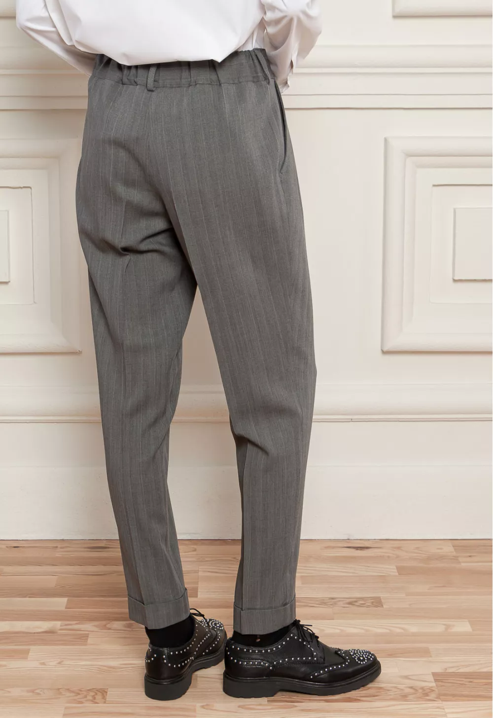 Брюки среднего объема, зауженные к низу, из высококачественной шерсти. Благодаря резинке на поясе обладают идеальной посадкой