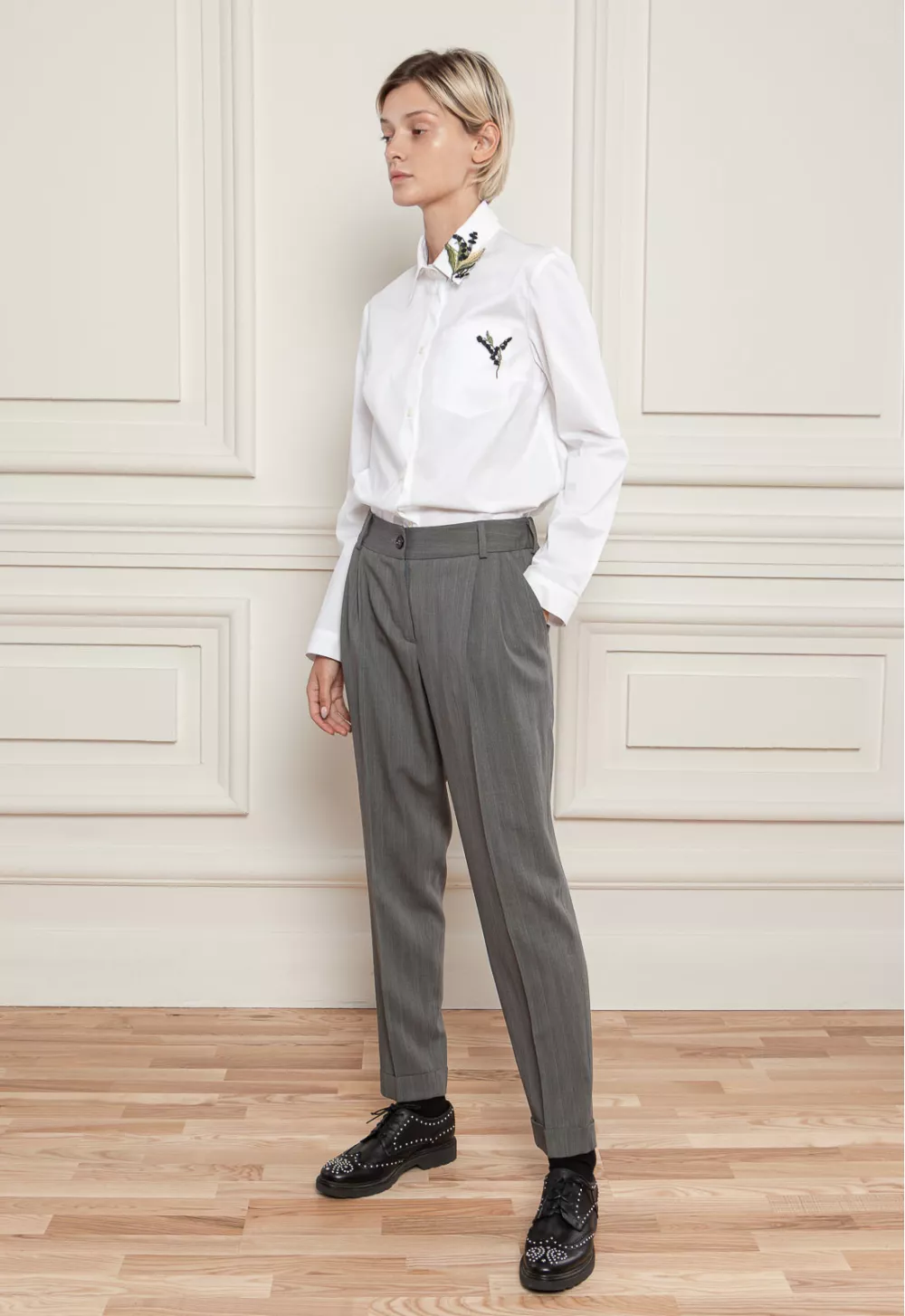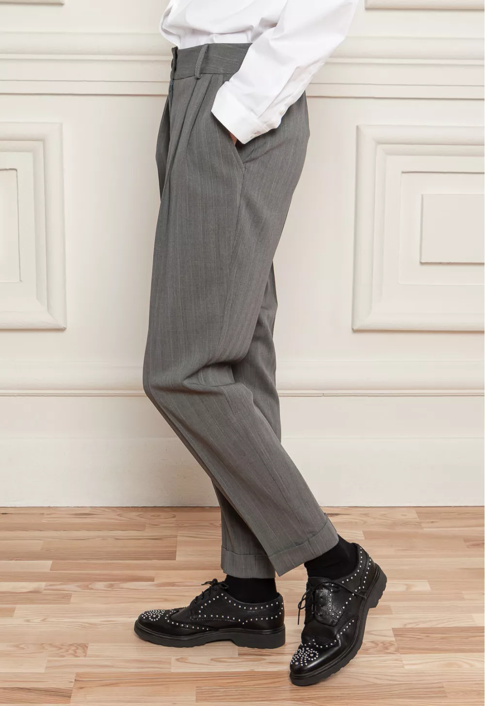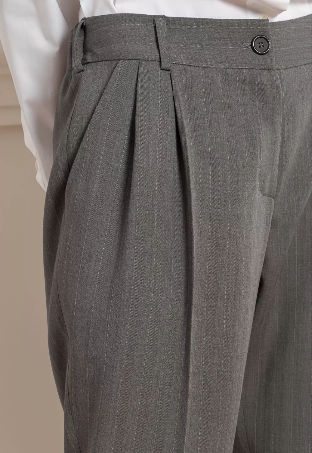 Брюки среднего объема, зауженные к низу, из высококачественной шерсти. Благодаря резинке на поясе обладают идеальной посадкой