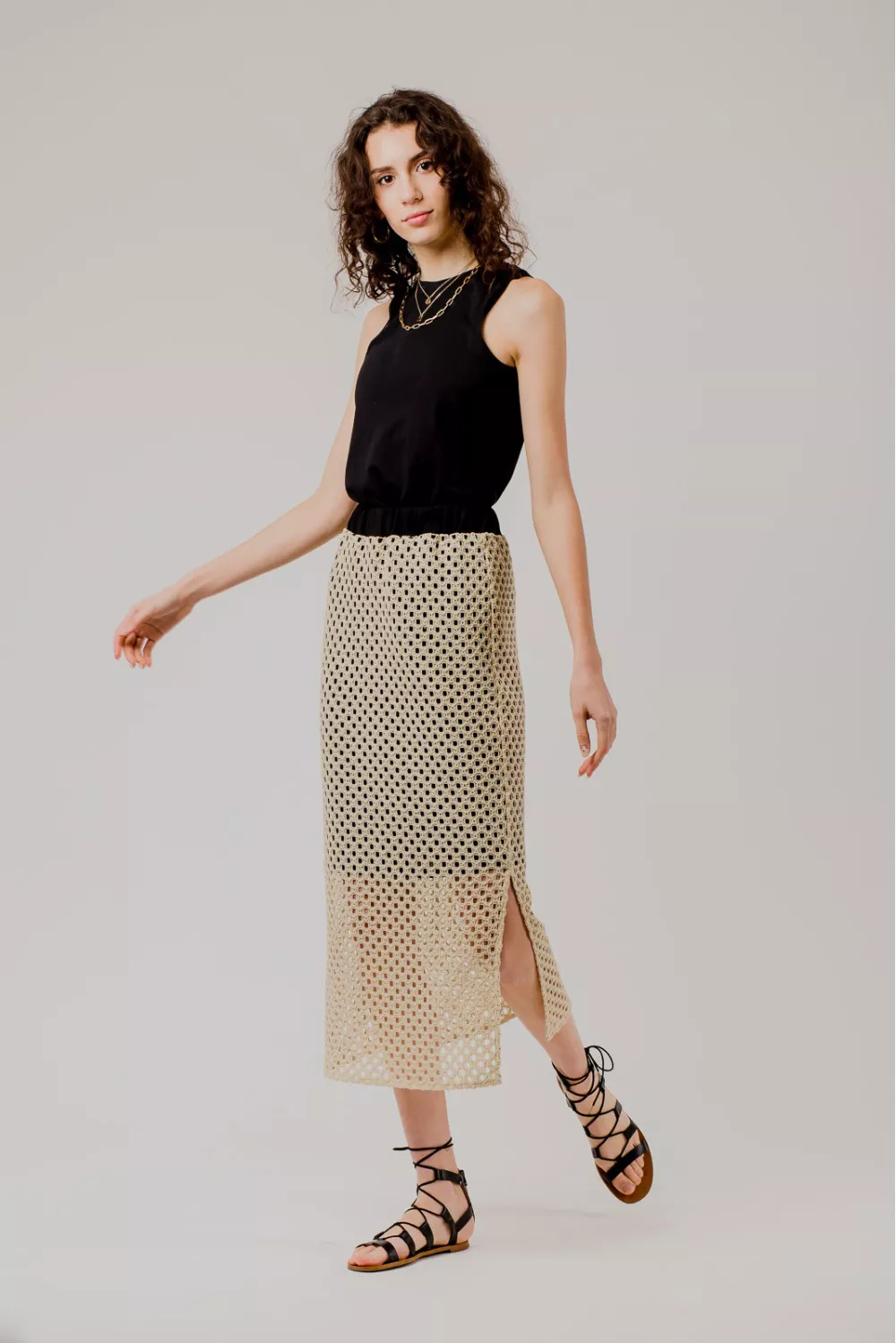 Бежевая юбка из кружева кроше Моава