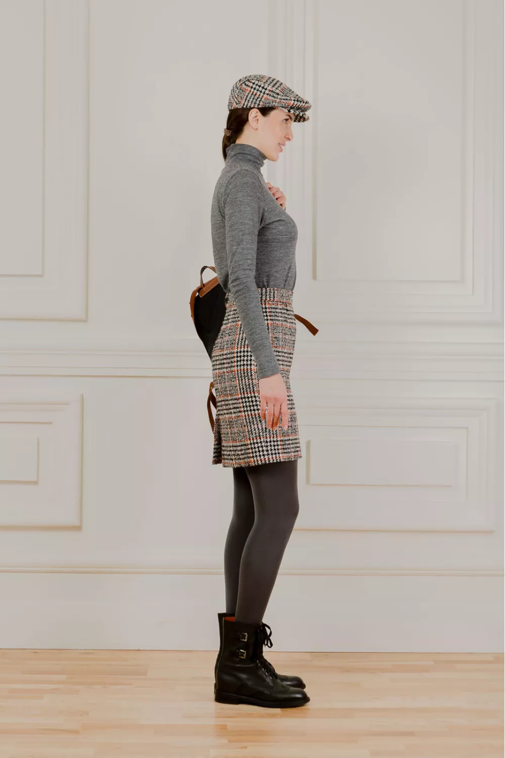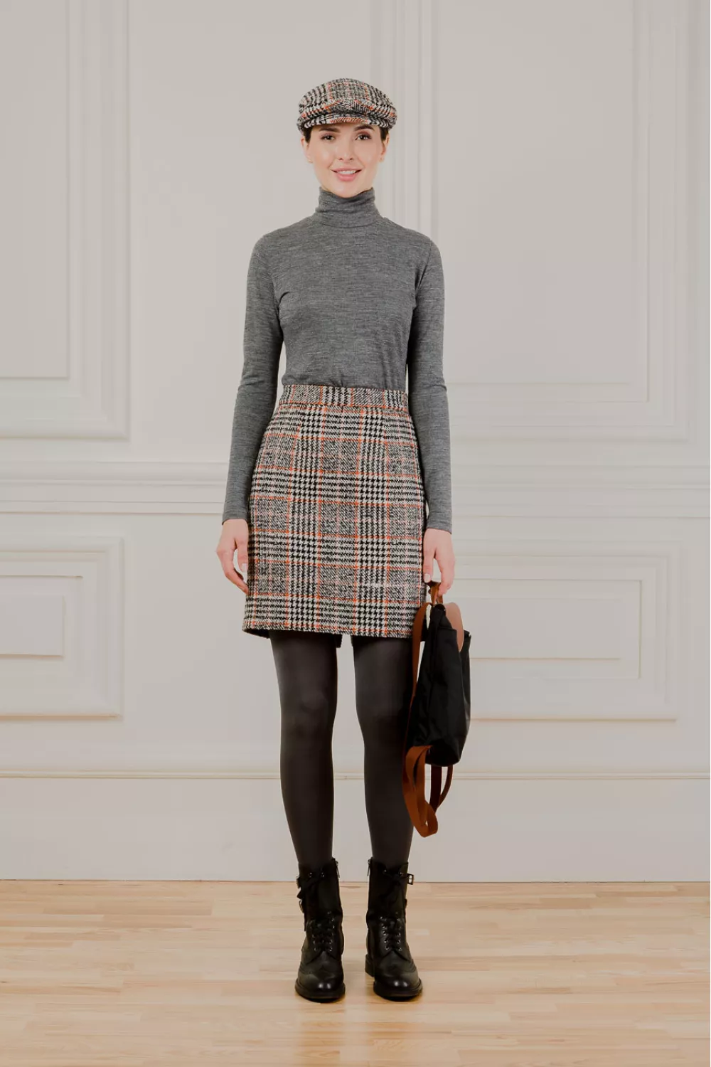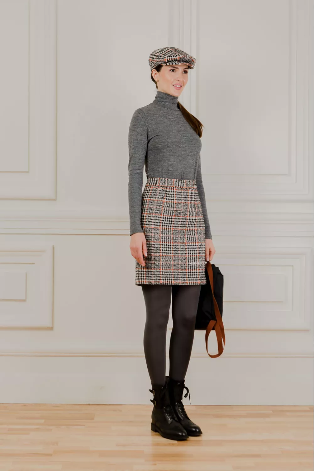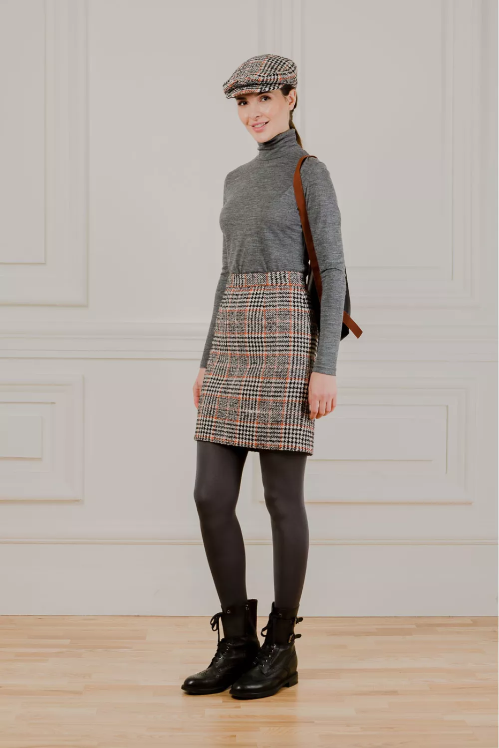 Юбка из шерсти выше колена в терракотовую клетку на молнии