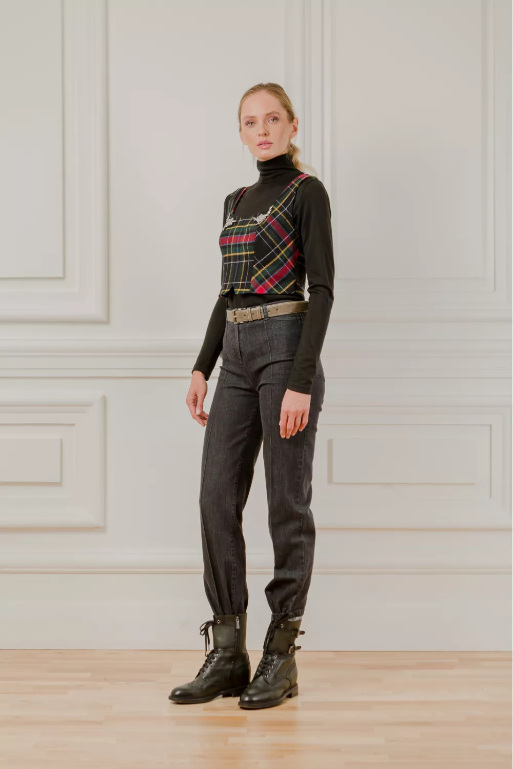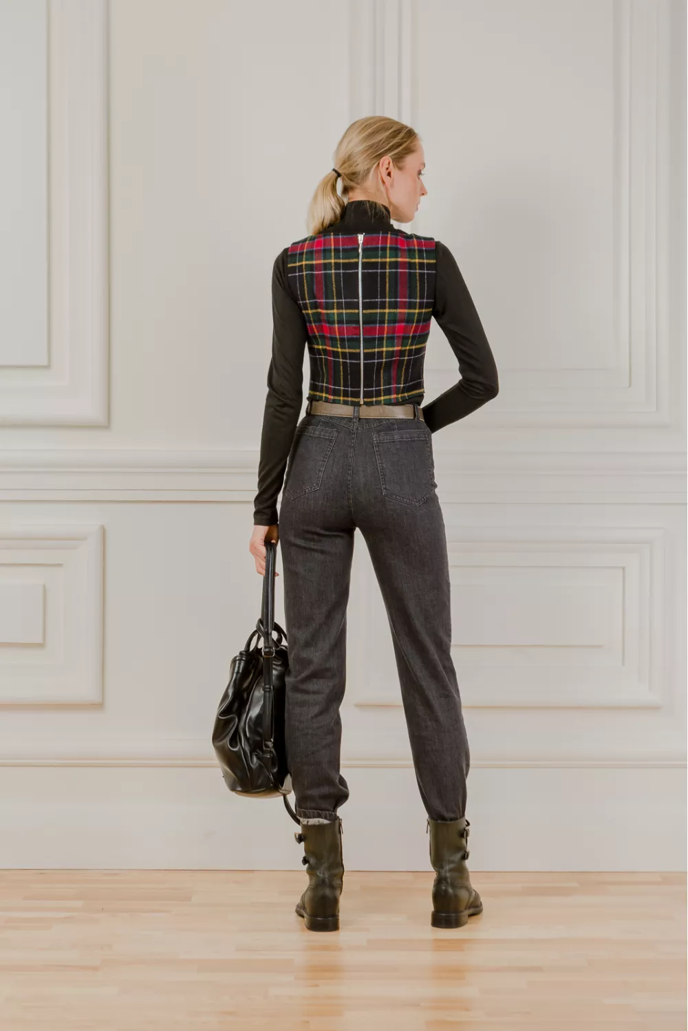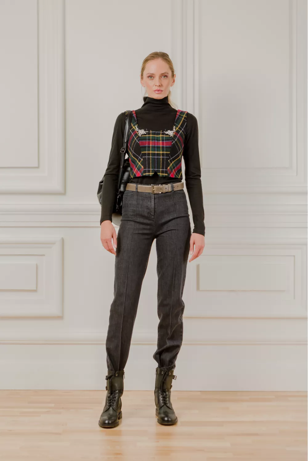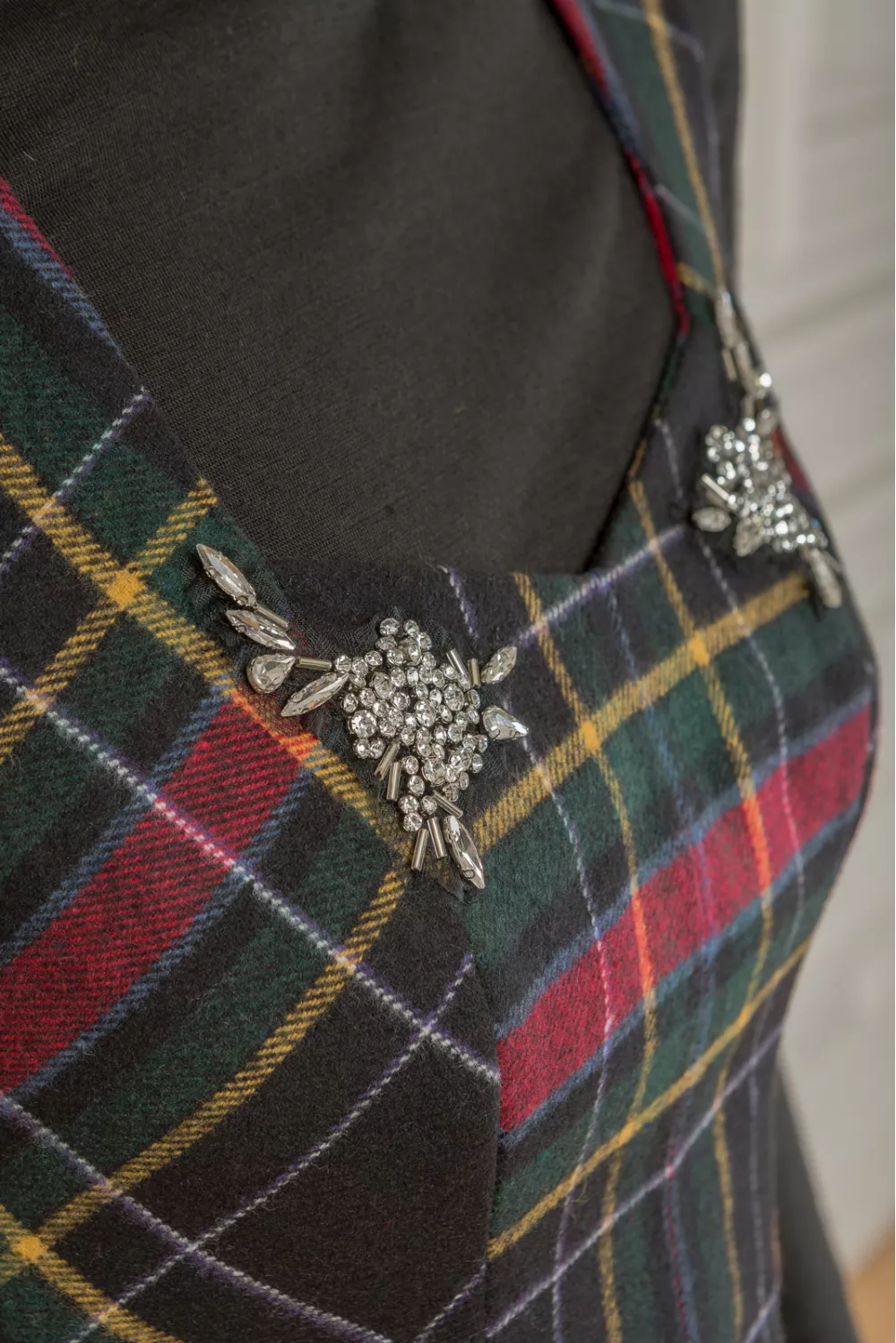 Украшенный камнями топ из шерсти на молнии. Яркая клетка с главным зеленым цветом станет отличным акцентом в образе