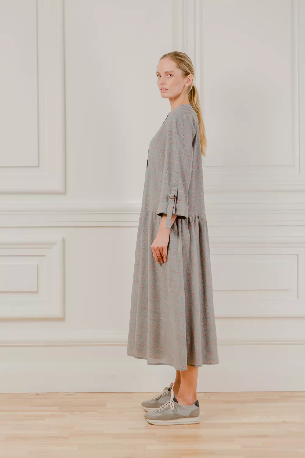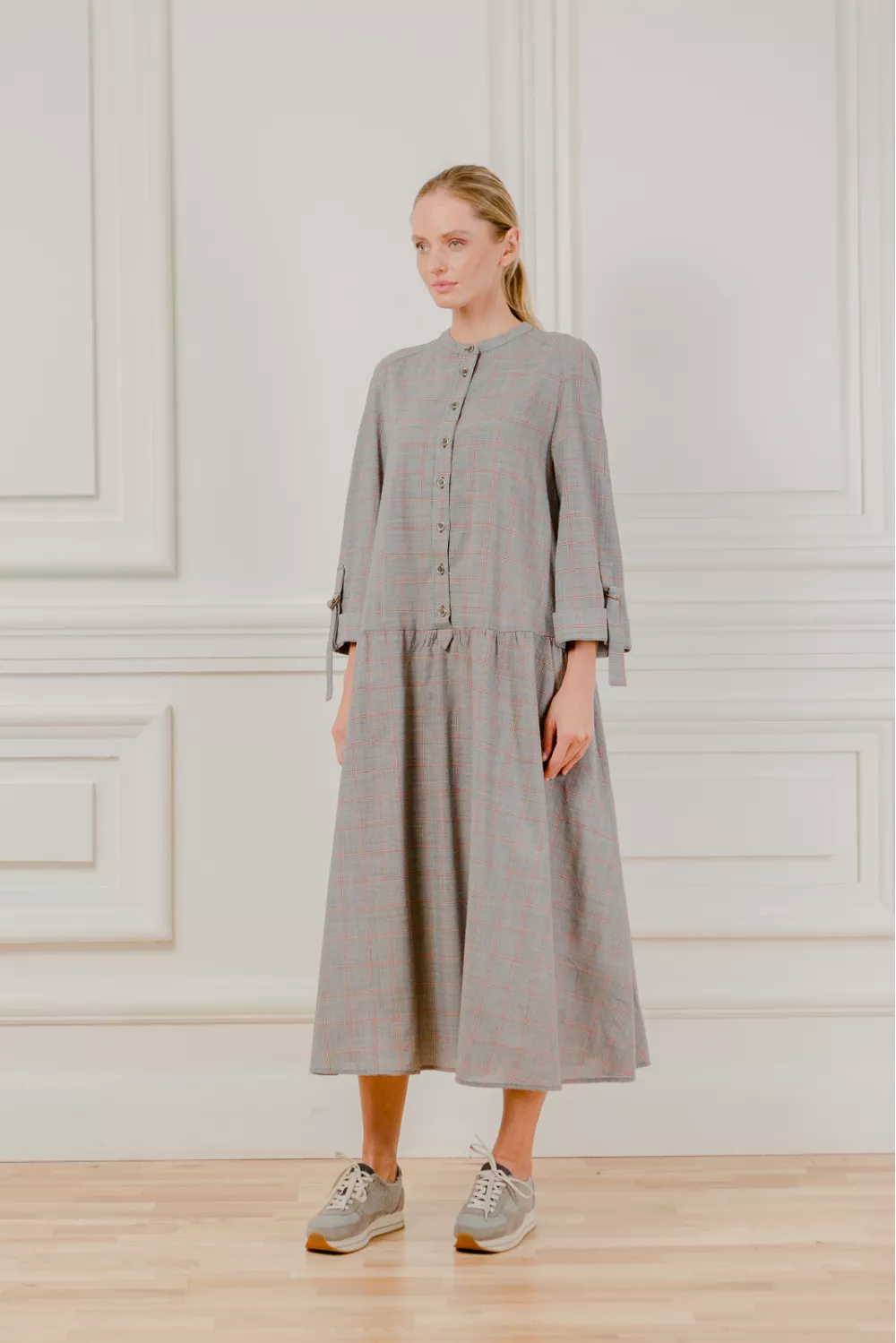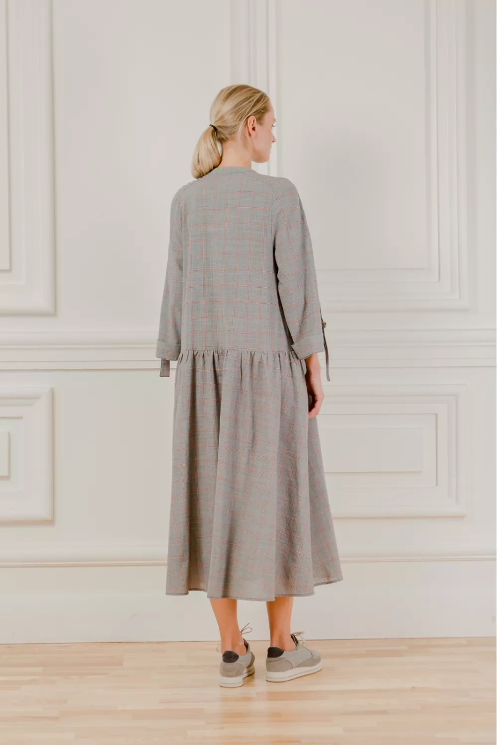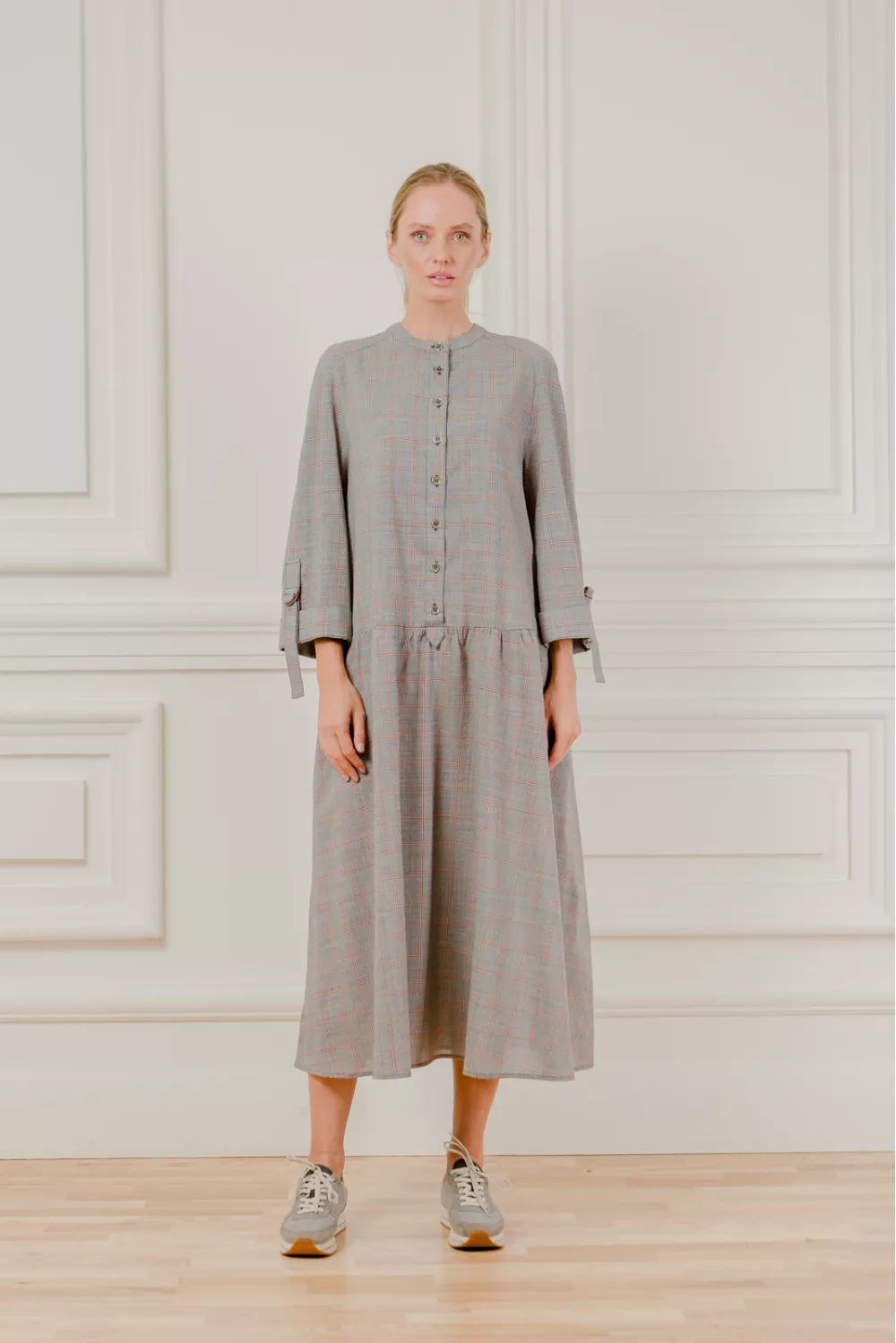 Натуральное шерстяное платье на пуговицах, можно регулировать рукав. А свободный крой позволяет чувствовать себя легко и непринужденно.