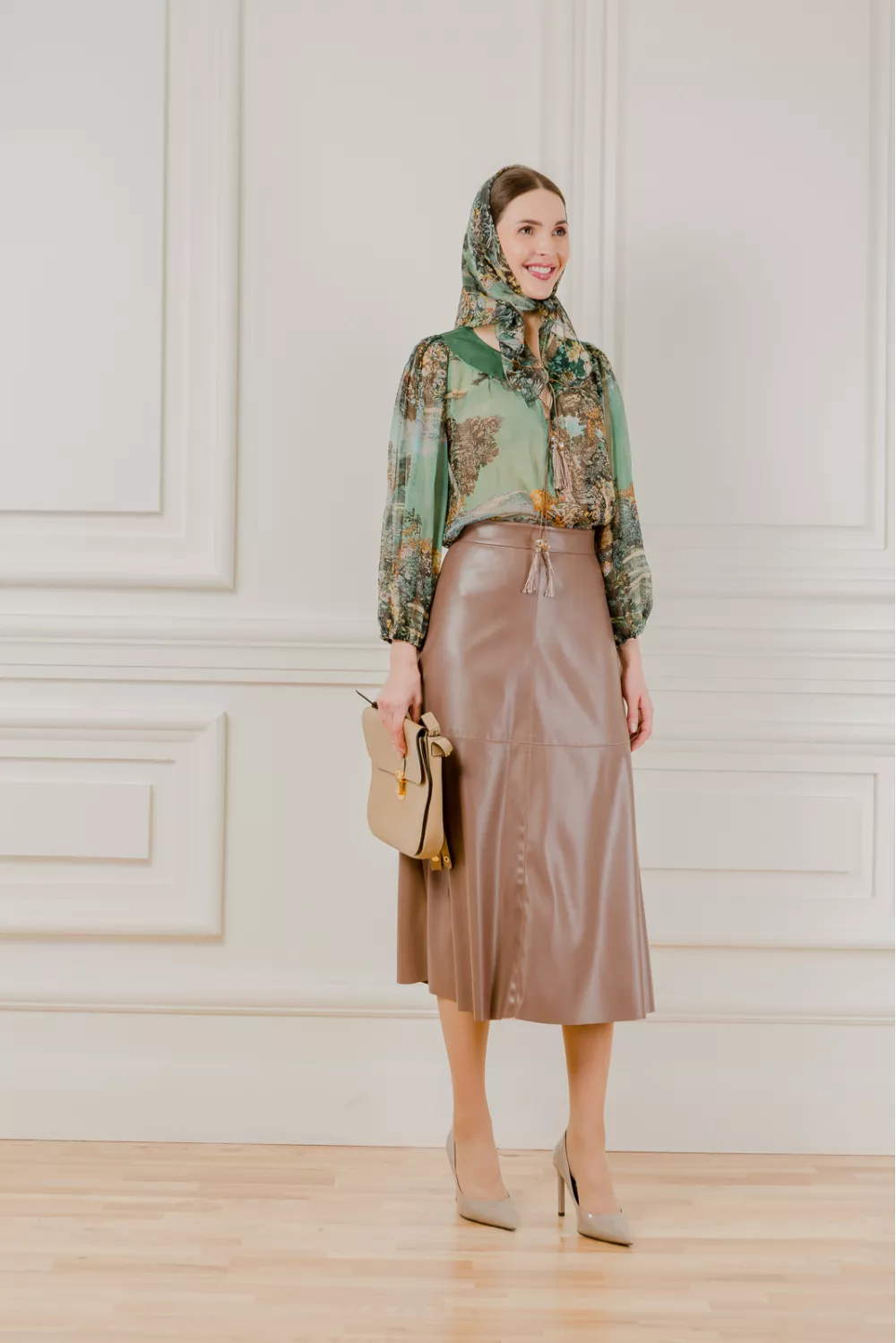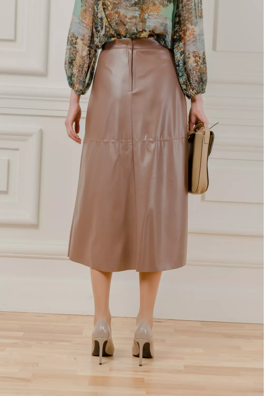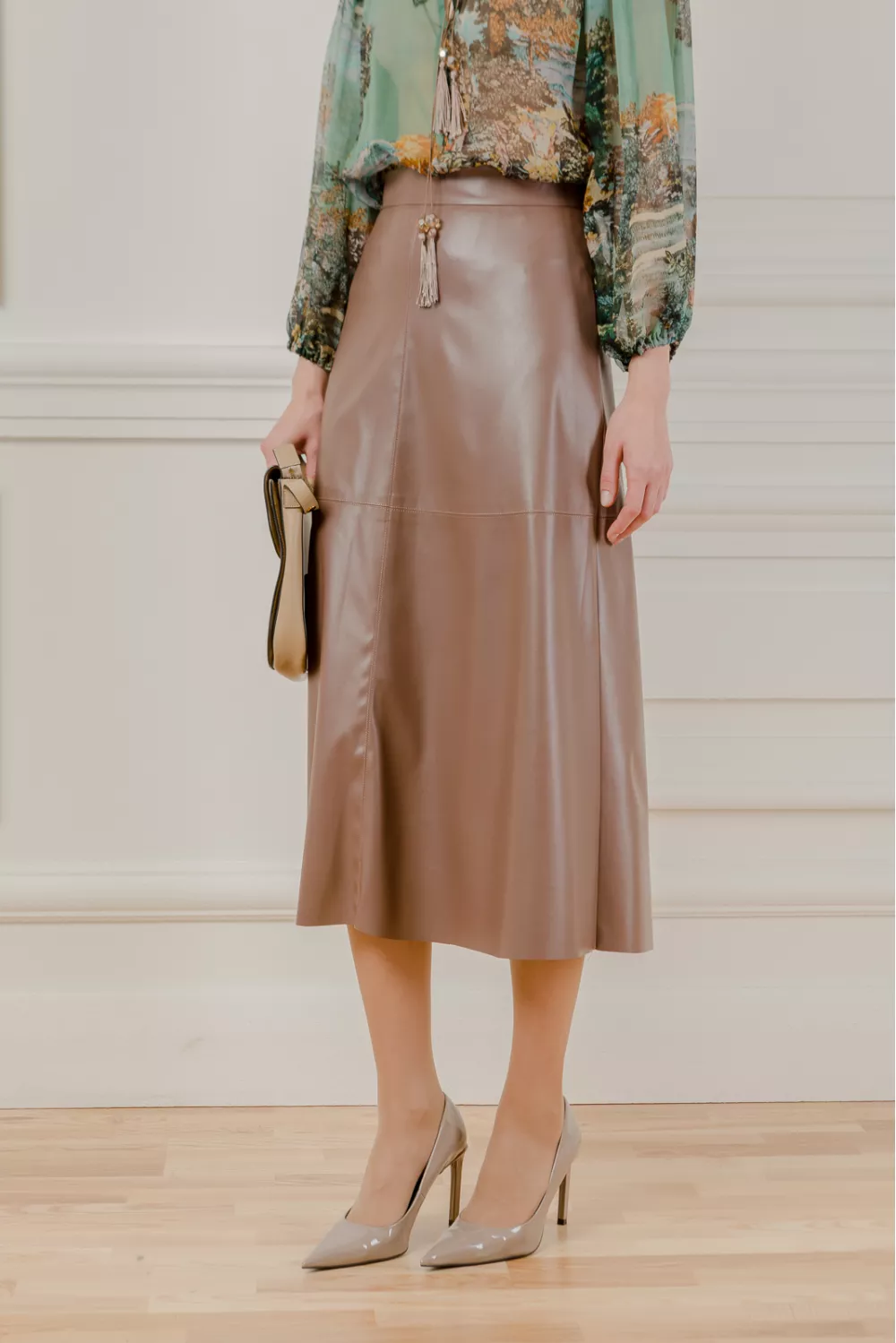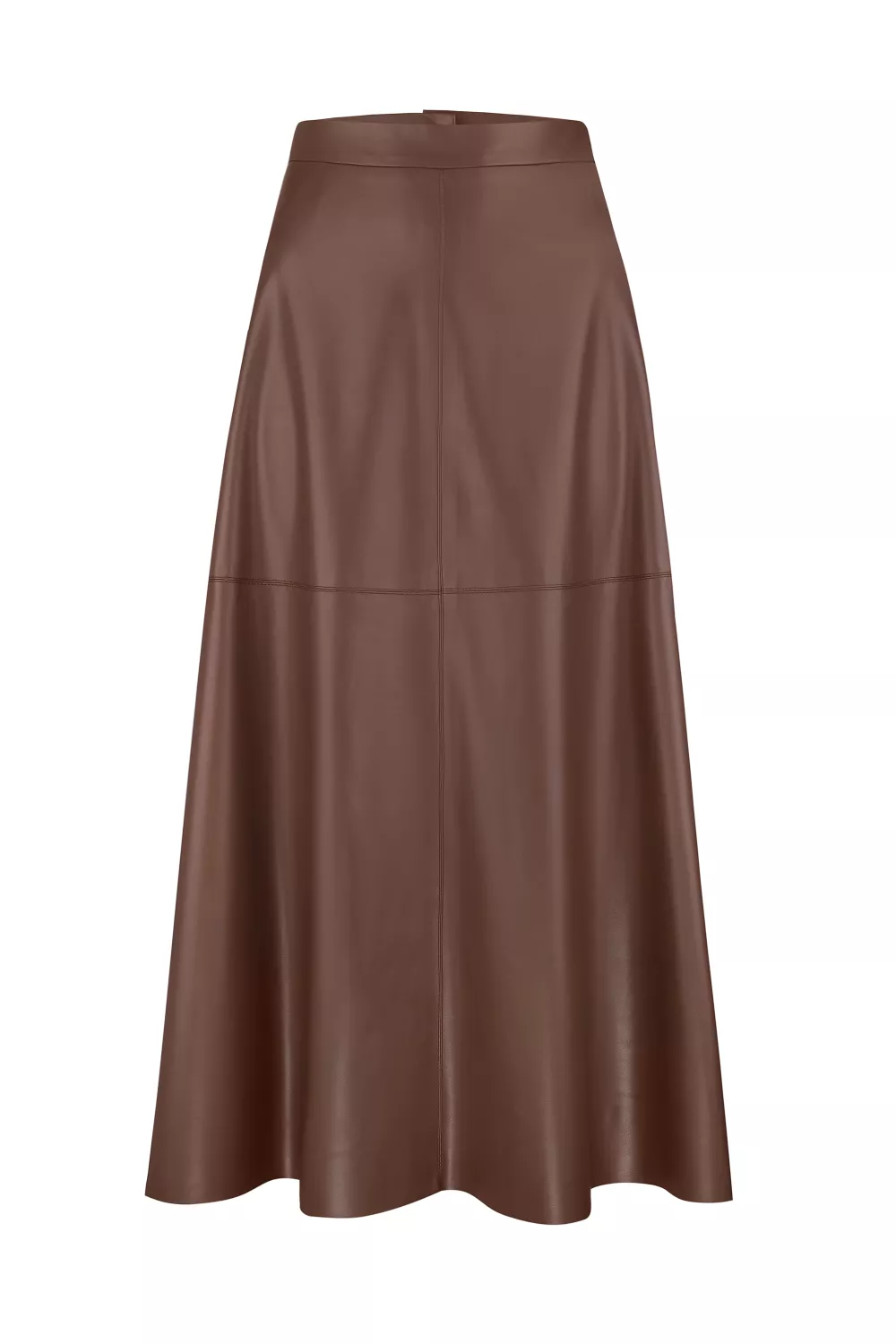 Юбка из эко-кожи трапеционной формы, что делает ее подходящей под большинство типов фигур наших прекрасных девушек. Кофейный цвет будет хорошо сочетаться как с теплыми, так и с холодными оттенками одежды. Юбка имеет подкладку