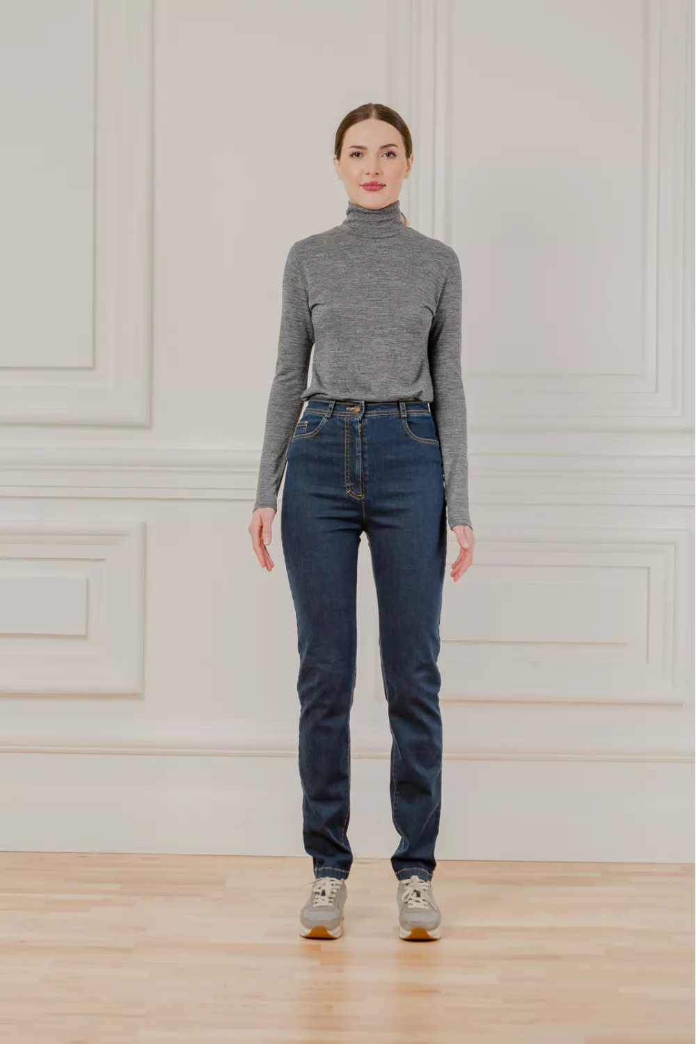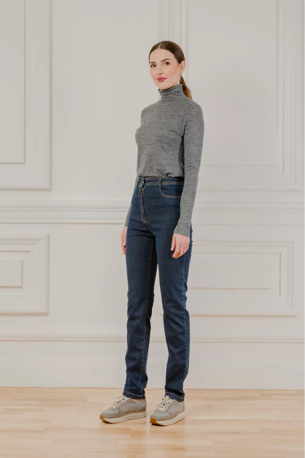 Зауженная модель джинс с высокой посадкой, которая подчеркнет ваши бедра и ноги. За счет эластана джинсы стрейчевые и хорошо тянутся