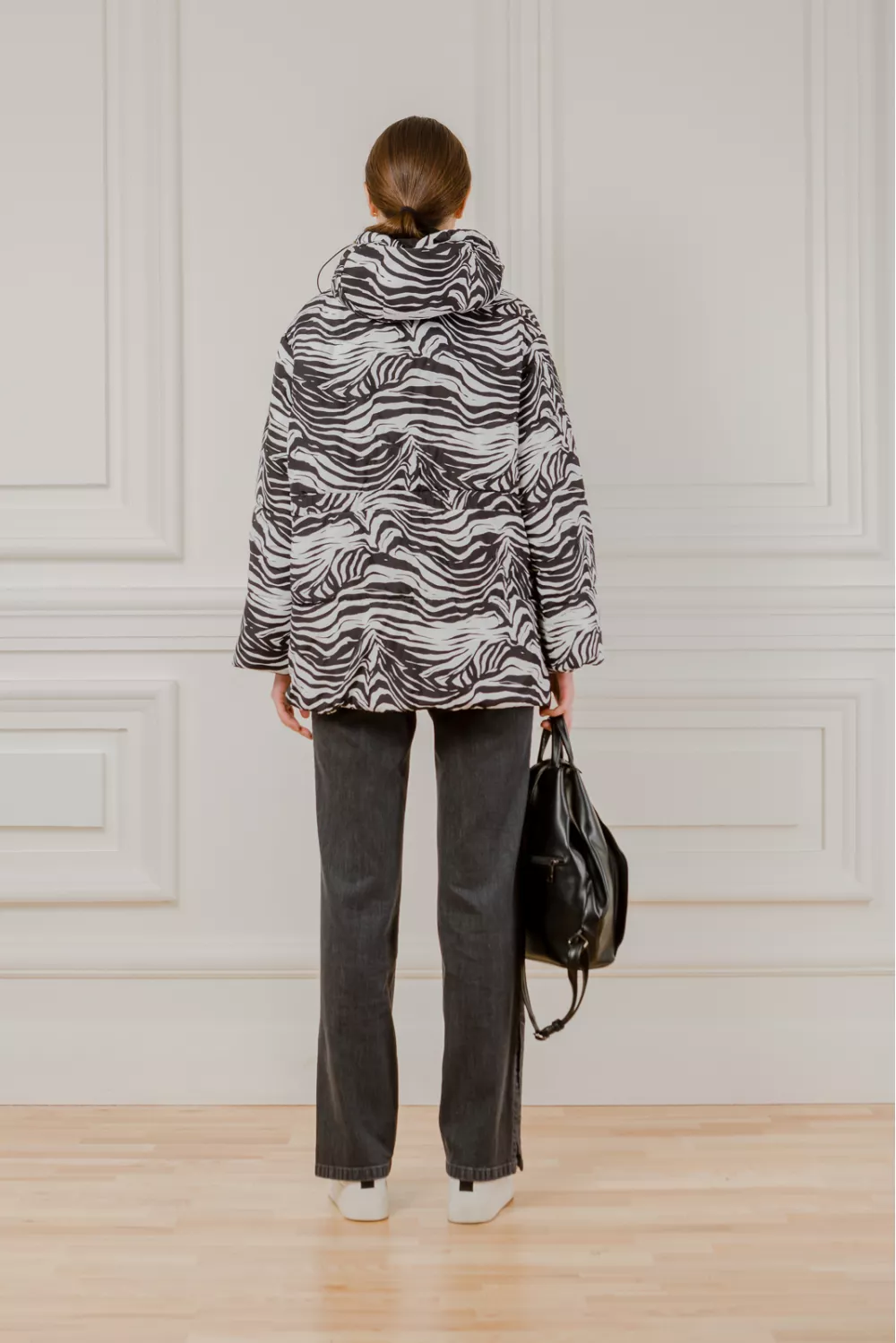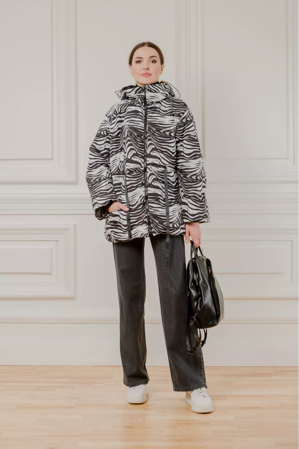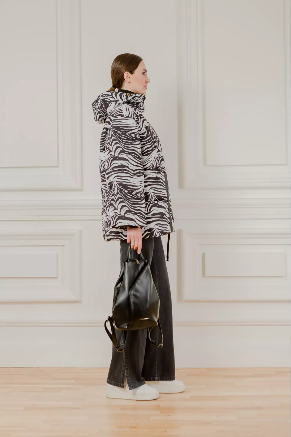 Короткая куртка с принтом зебры. Имеет дополнительные завязки на талии для тех девушек, которые не так сильно любят оверсайз