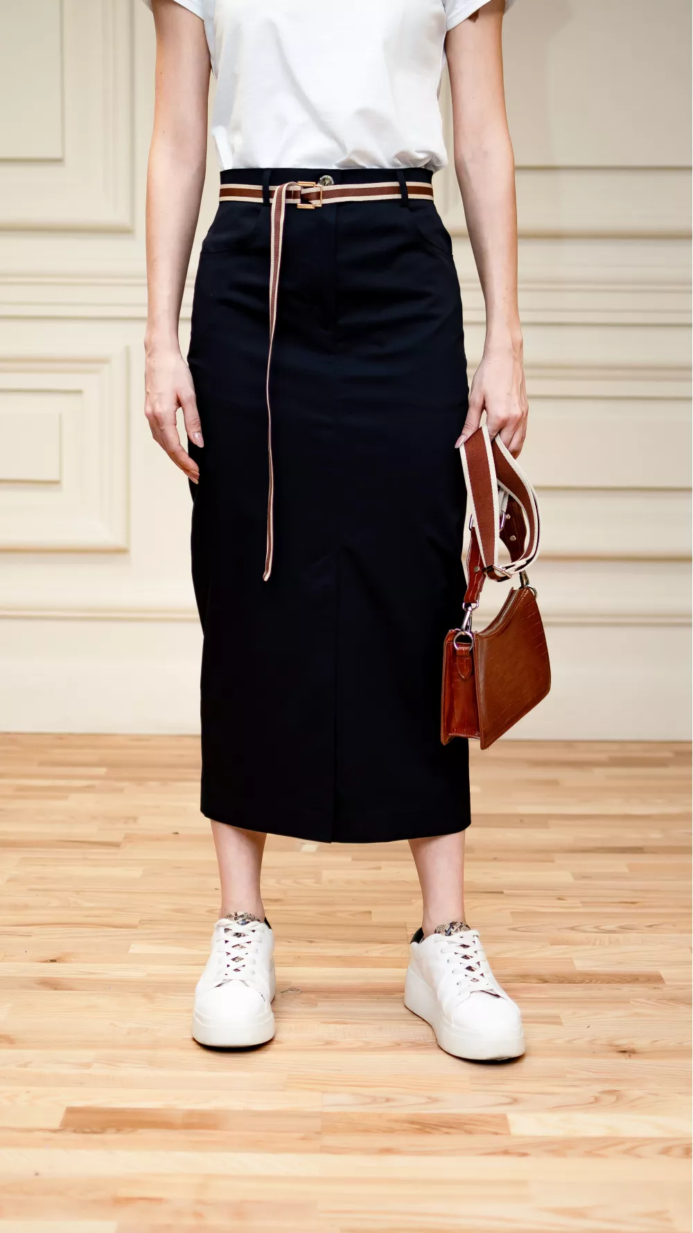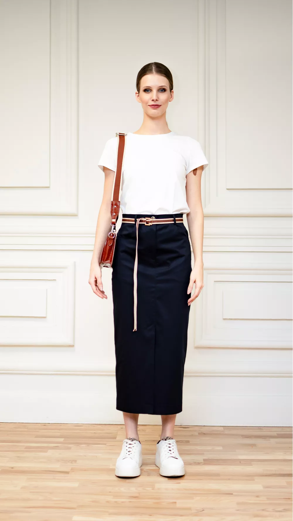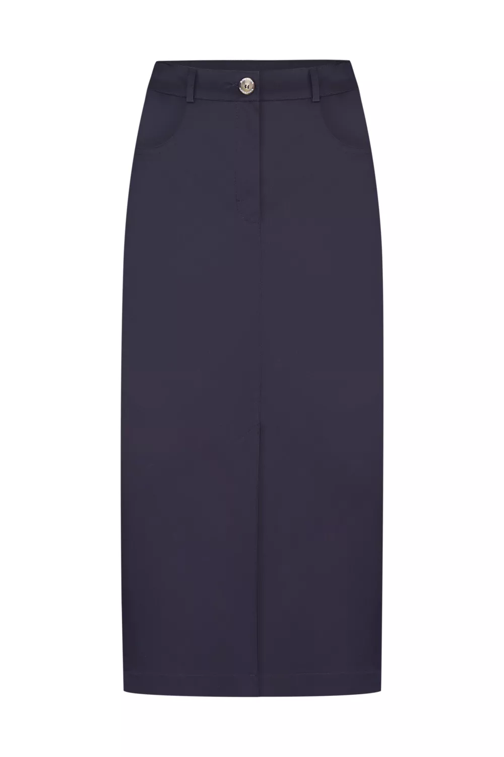 Прямая юбка-карандаш меди длины с разрезом до колен. Однотонный цвет и качественный плотный хлопок делают модель универсальной для повседневной носки