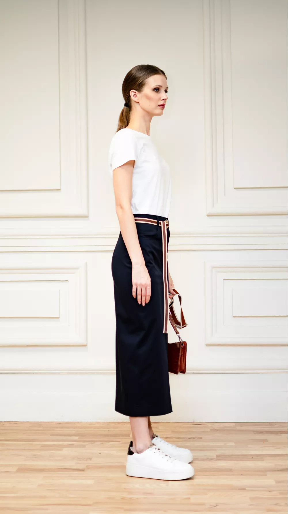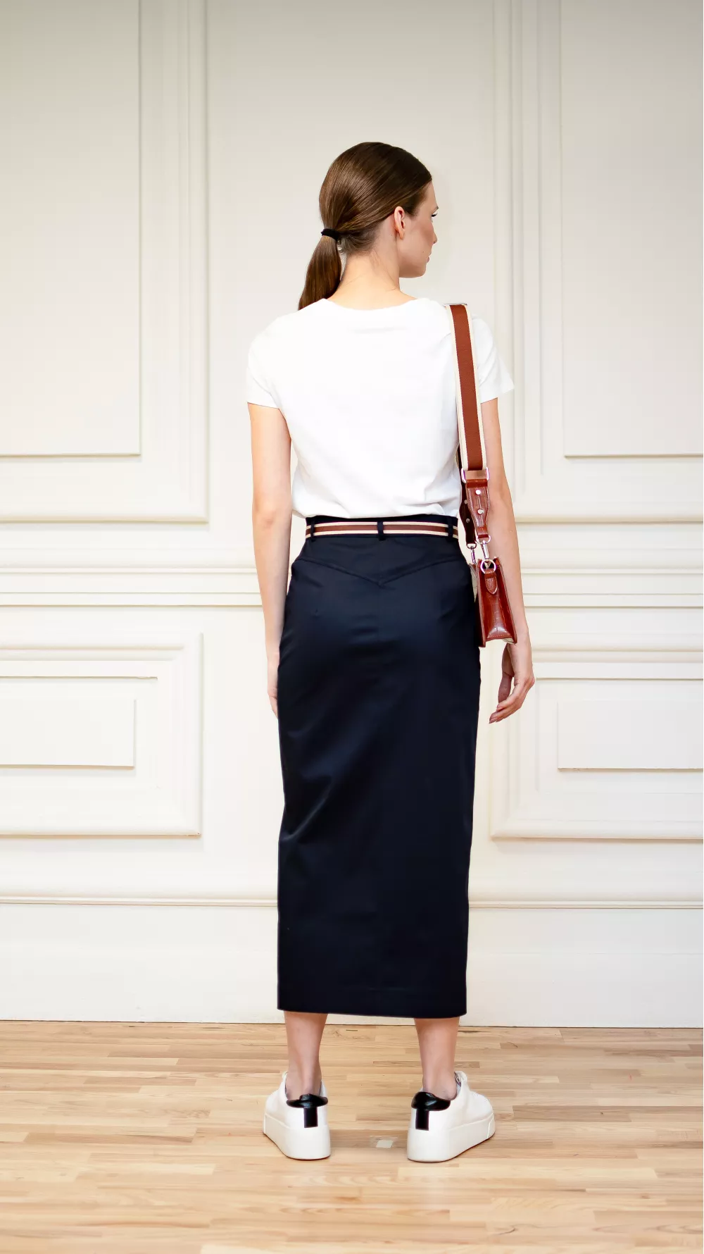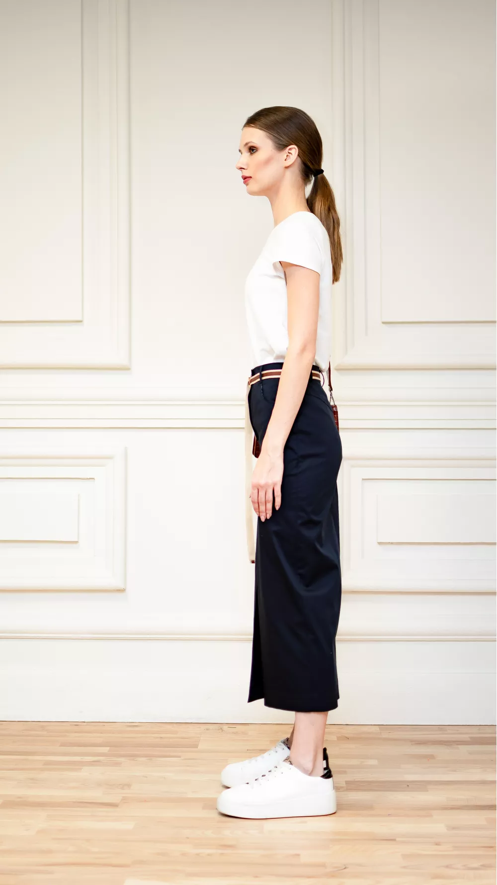 Прямая юбка-карандаш меди длины с разрезом до колен. Однотонный цвет и качественный плотный хлопок делают модель универсальной для повседневной носки
