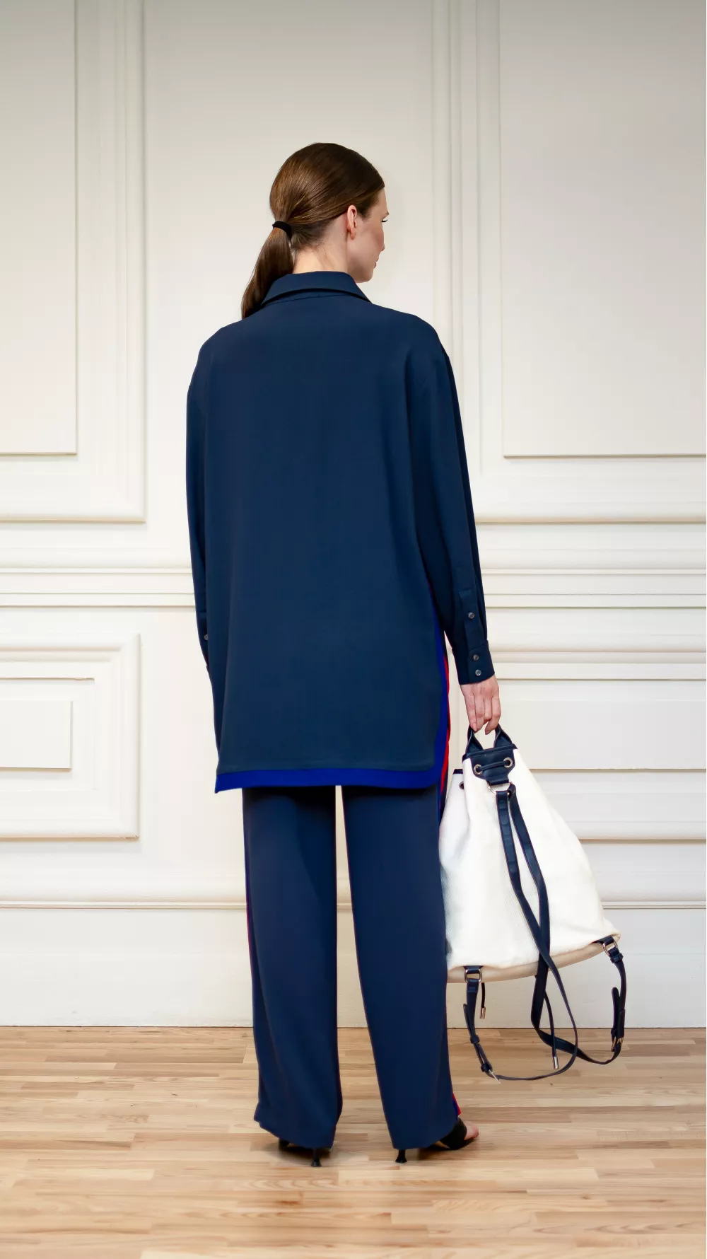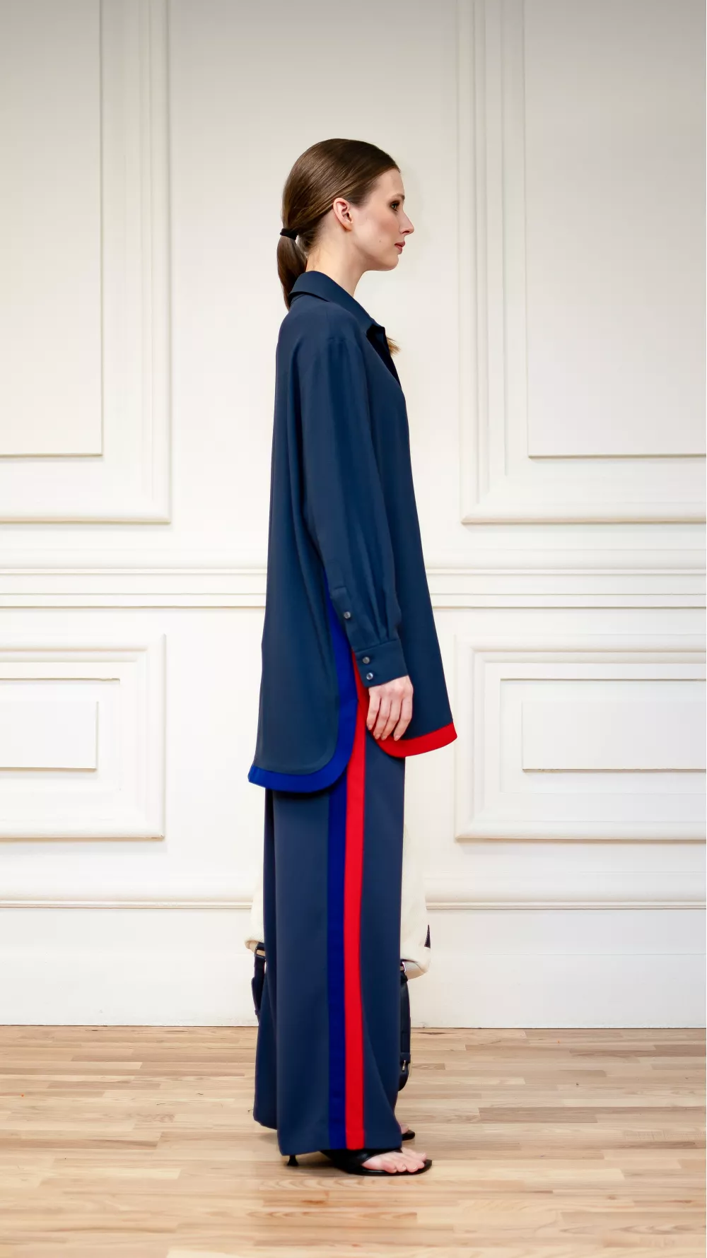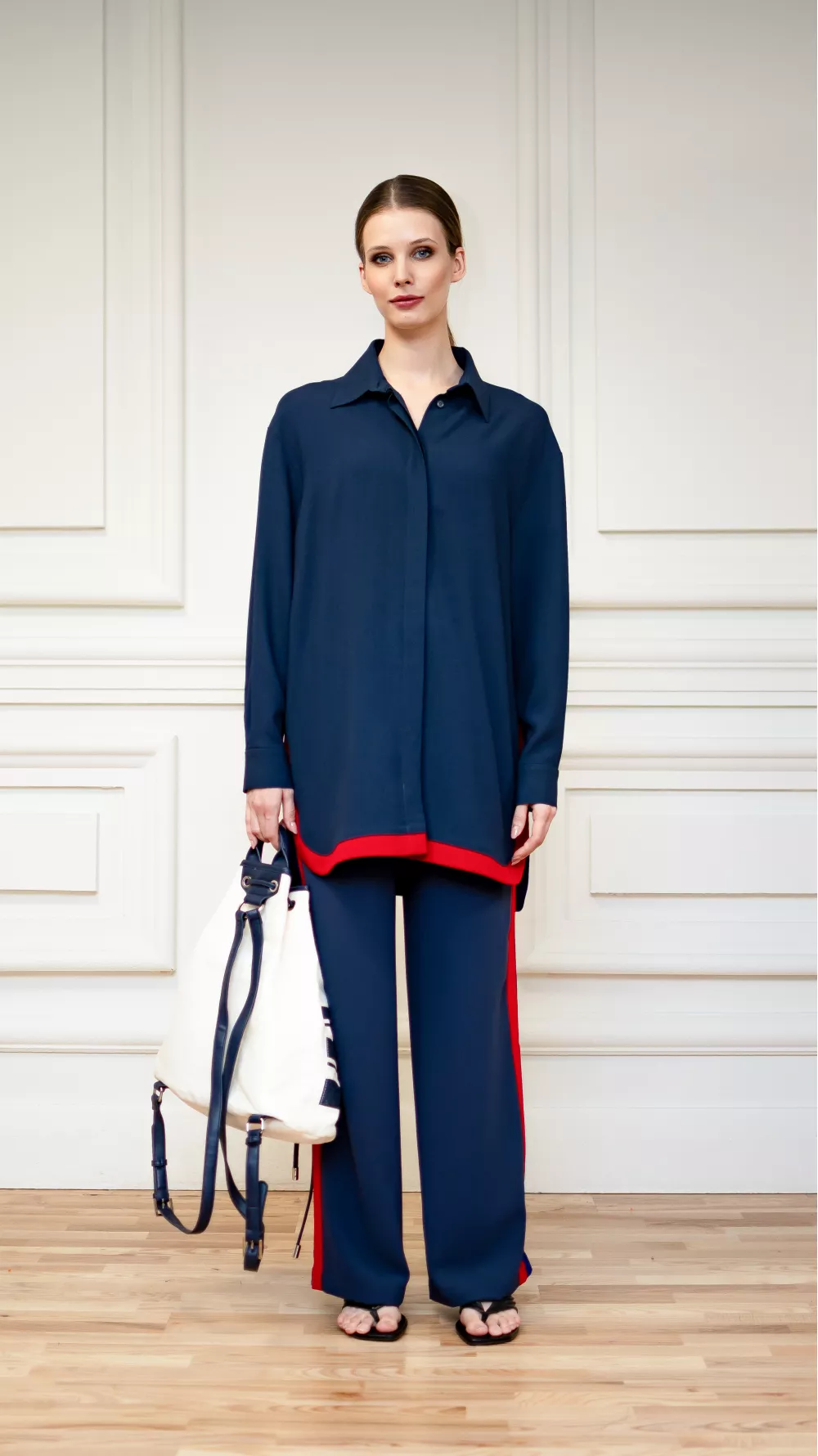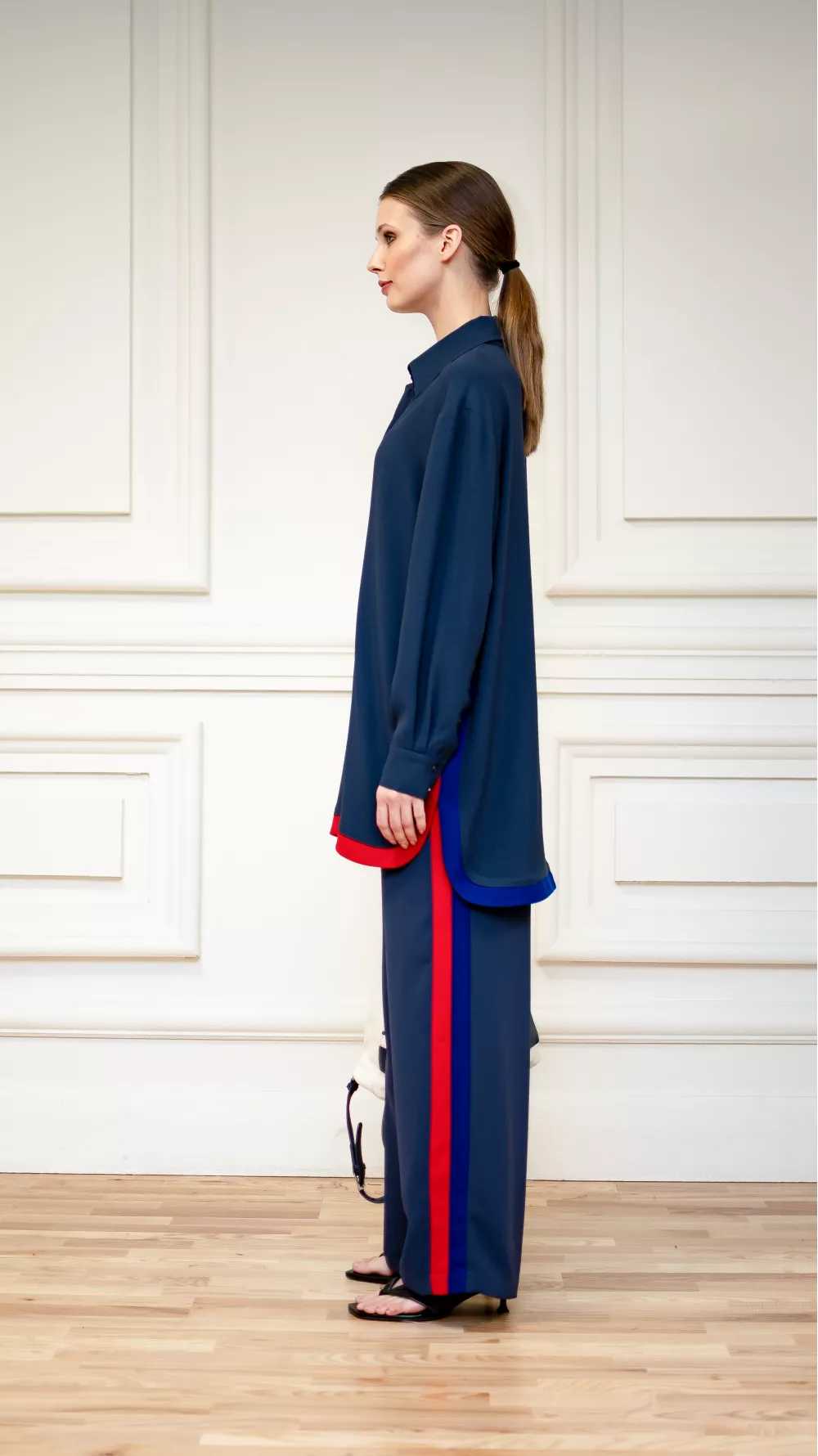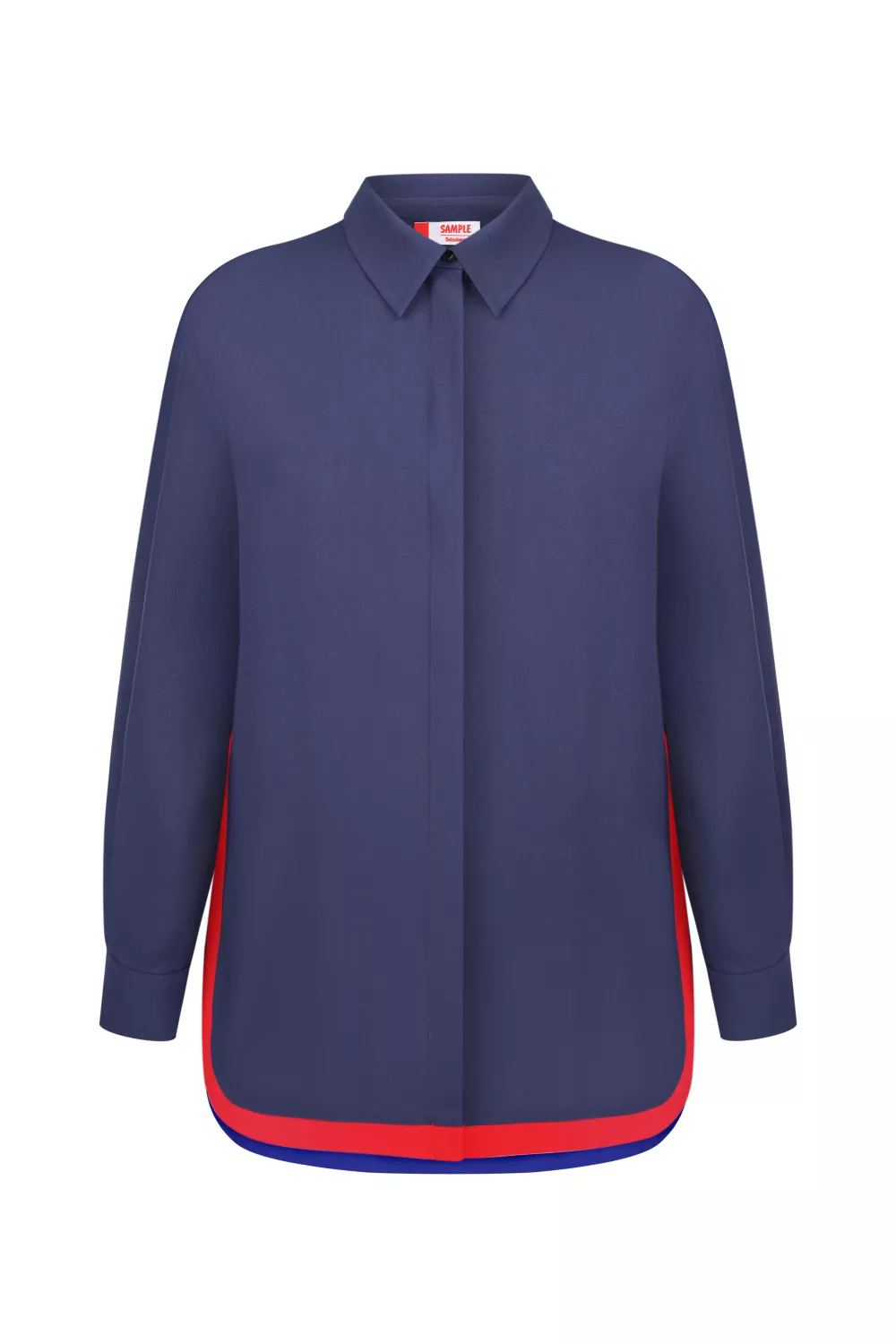 Универсальная удлиненная рубашка с контрастными лампасами сбоку. Дышащий полиэстер, потому что изготовлен из переработанной пластмассы