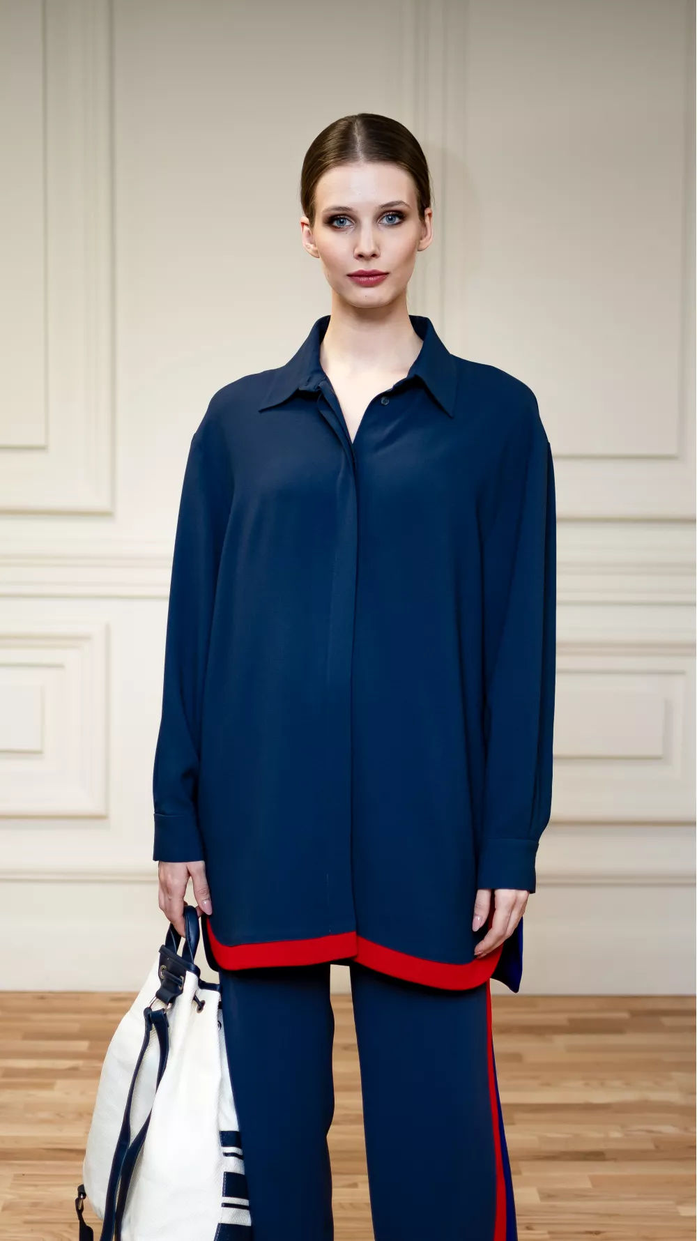 Длинная темно-синяя рубашка в стиле кэжуал Элейн